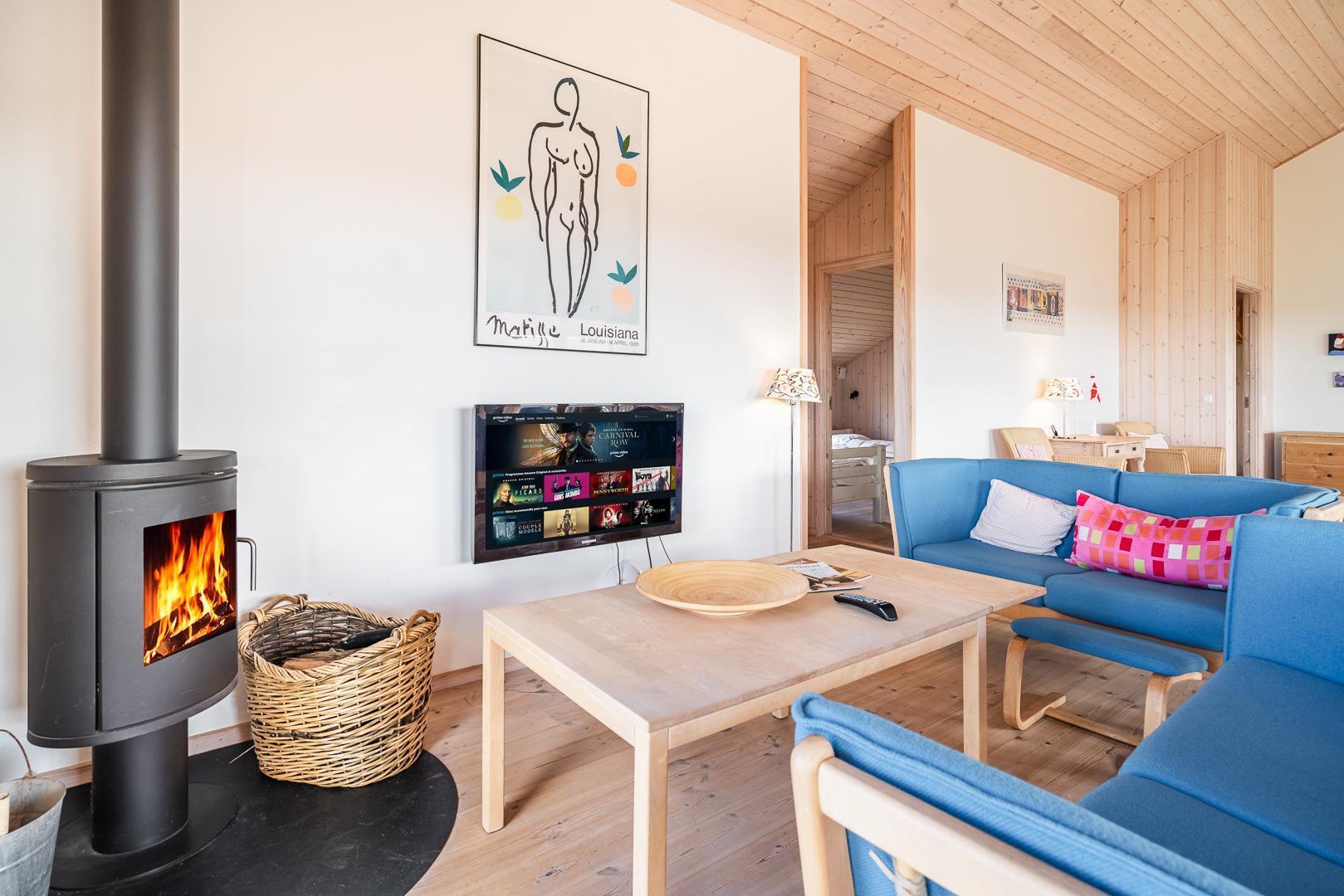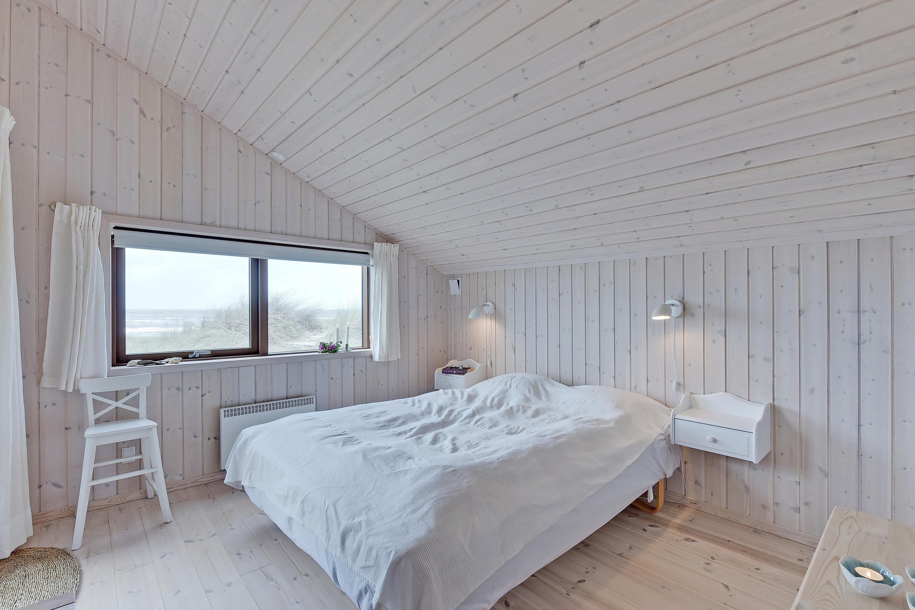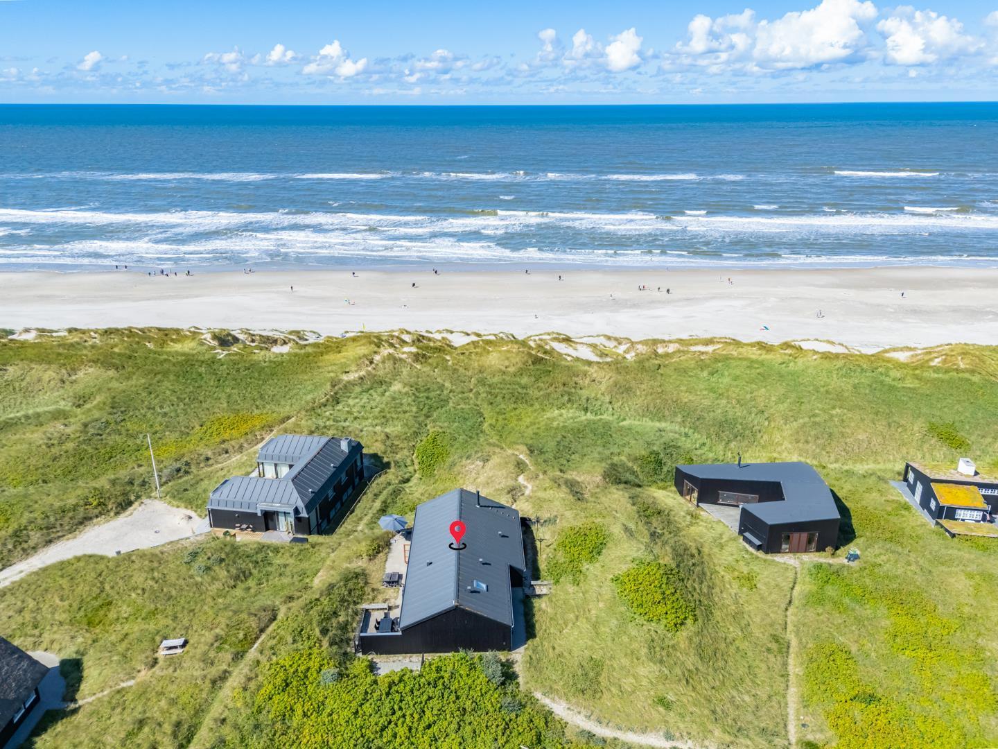 PANORAMUDSIGT. På en af Hennes bedst beliggende grunde, med direkte panorama udsigt over det storslåede Vesterhav og klitterne, tilbydes dette nyere træhus til udlejning. Huset ligger med kun 50 m til stranden, et stenkast fra vandet. Her er flere dejlige terrasser, hvoraf den ene er overdækket. Indendørs er der 4 soverum, hvorfra der fra 3 soverum er udgang. Pæn og hyggelig stue med stort vinduesparti med storslået udsigt over de marehalm beklædte klitter. Lyst køkken med opvaskemaskine og separat fryser på ca. 50 liter. Huset er inddelt i 2 afdelinger med 2 soverum og badeværelse i hver afdeling, det ene badeværelse har spa og sauna. Begge badeværelser er med gulvvarme. Der er TV såvel i stuen som i et soverum. Bryggers med adgang fra entreen med vaskemaskine og tørretumbler. Varmepumpe, som er miljøvenlig og strømbesparende, derudover hjælper brændeovn med at holde varmen på de kølige dage. Huset udlejes uden hund og rygning. Naturligvis er der gratis WIFI. Et pænt hus på en fantastisk, unik og enestående grund charmerende på alle årstider, hvad enten det er når Vesterhavet om sommeren viser sig fra sin pæneste side, eller det er om vinteren, hvor Vesterhavet viser tænder. Huset egner sig ikke for gangbesværede. Da huset ligger i klitterne, er der kun mulighed for parkering for 2 biler ved huset. Depotrum privat.