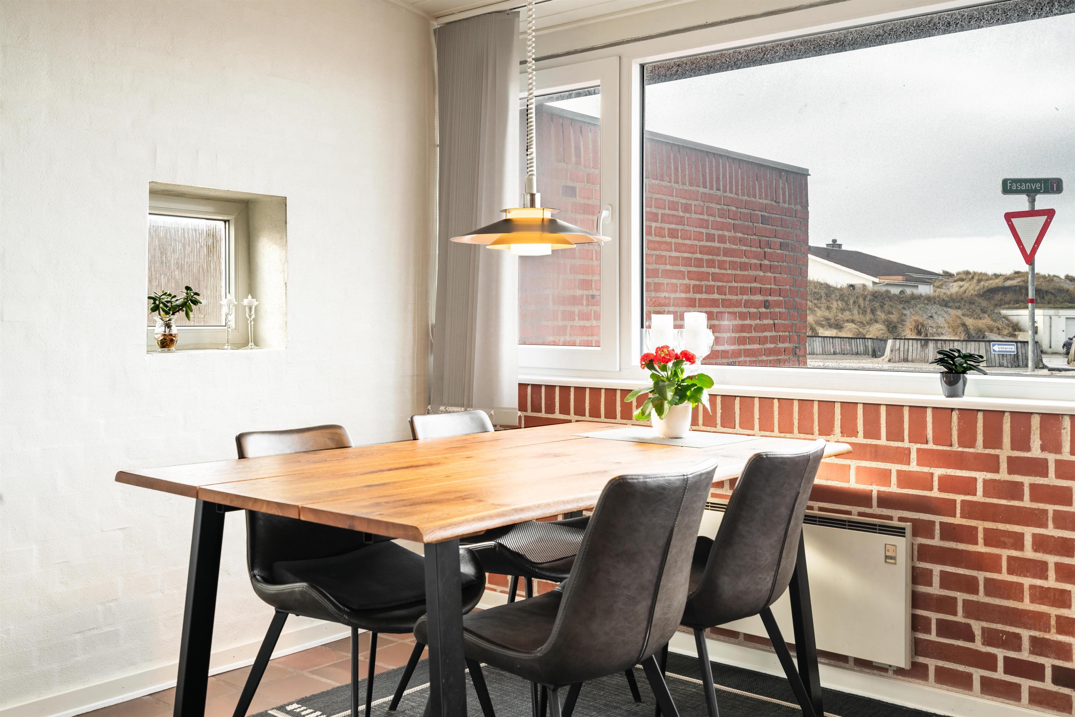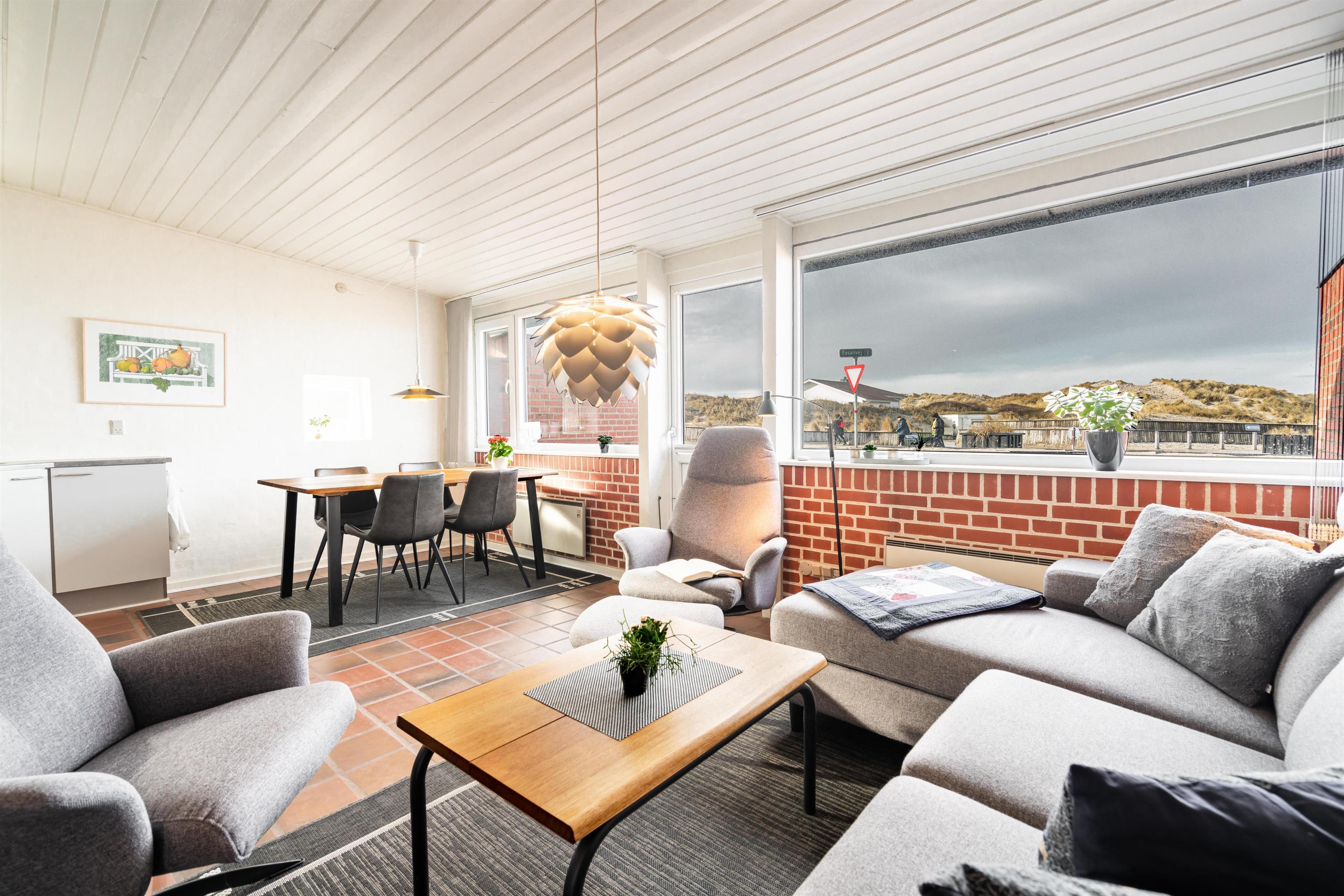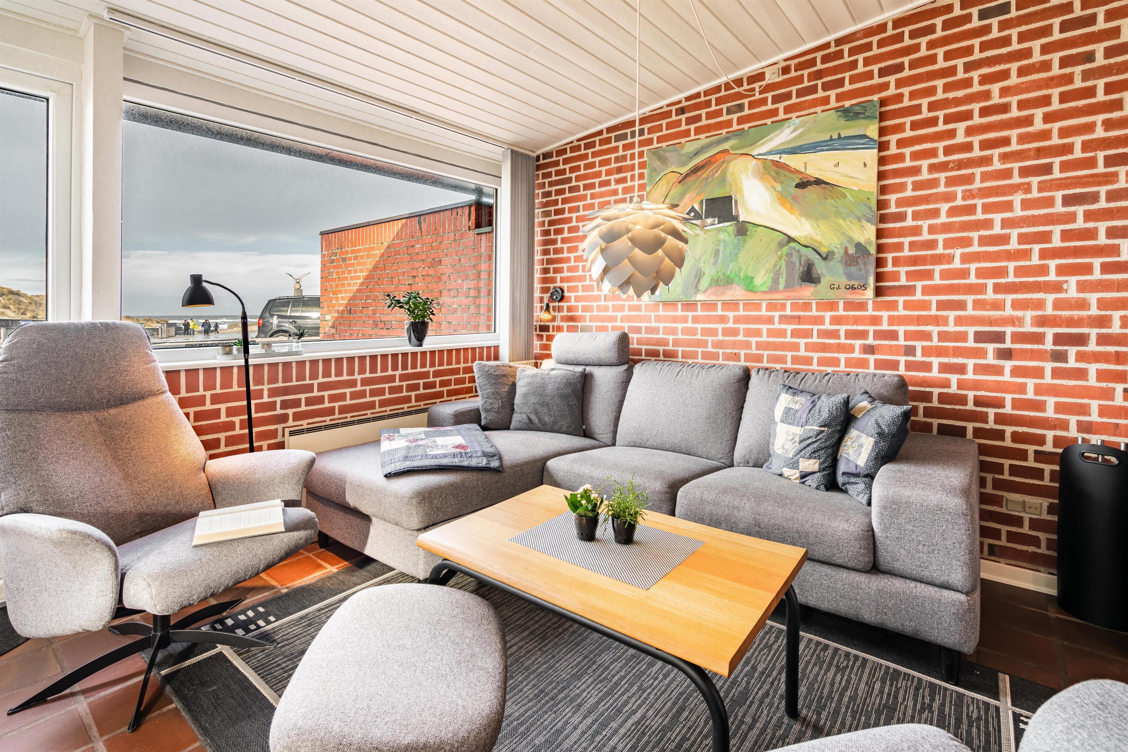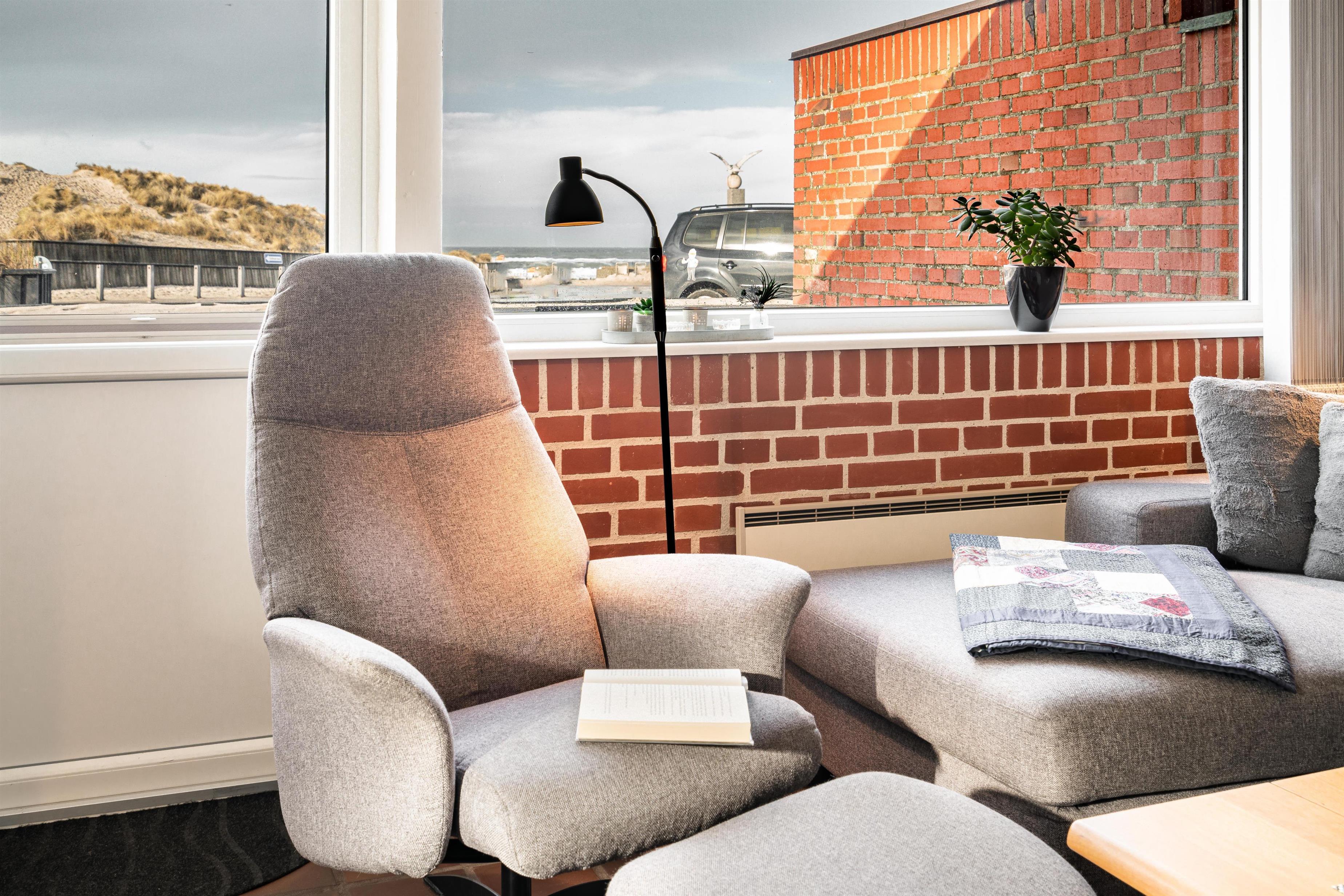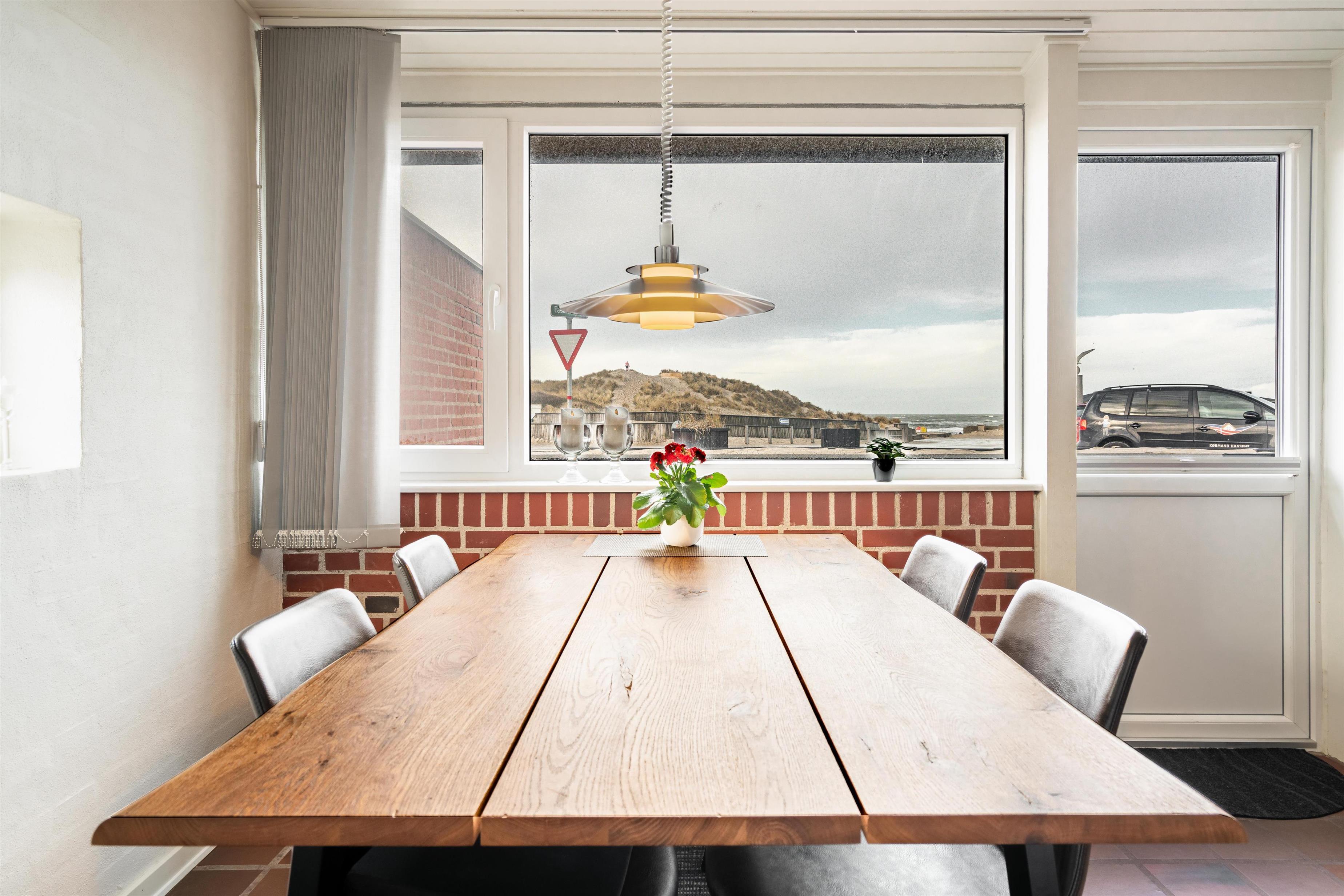 Denne skønne ferielejlighed i Henne Strand ligger kun 100 m fra Vesterhavet og den skønneste strand. Ferielejligheden har en dejlig panoramaudsigt/havudsigt og her er plads til 4 personer. Vil du se solnedgangen fra ferielejligheden og solens genskin i havet også kaldet for englebroen, fordi det kun er engle, som kan se den, så skal du leje denne ferielejlighed. Køkken og stue er smagfuldt indrettet, og i stuen er der desuden placeret en brændeovn som rigtig spreder hygge i rummet. Derudover kan du slappe af i lejlighedens sauna og nyde din ferie tæt på Vesterhavet. Ved indgangen er en skøn terrasse, hvor du sagtens kan finde læ og en plads i solen. Det skal også nævnes at denne hyggelige ferie lejlighed ved Henne Strand ligger i kort gåafstand til byen med mange cafe- og shoppingmuligheder. Max 2 små hunde