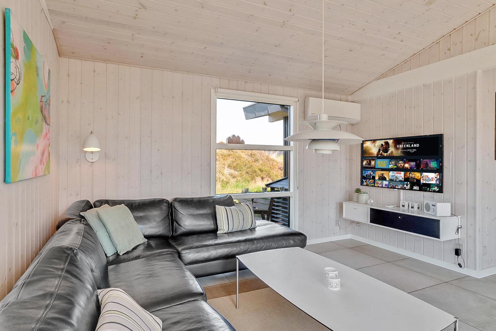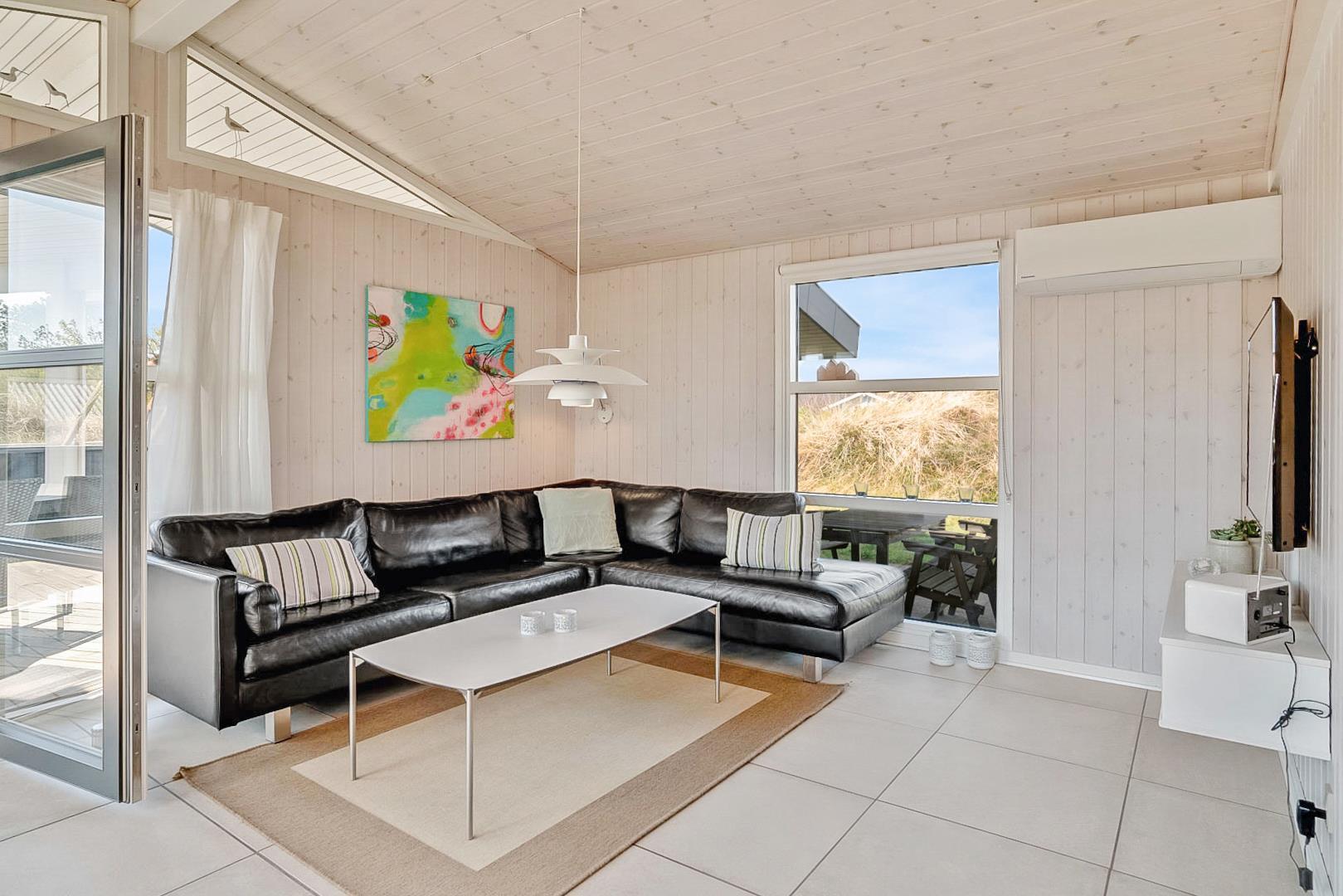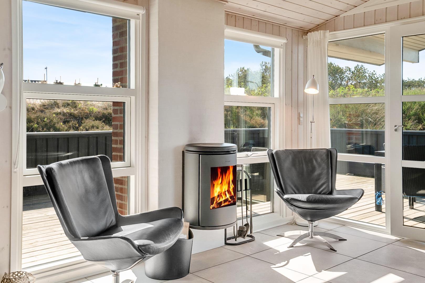 På den store lukkede træterrasse kan solen og den friske luft nydes i fulde drag. I dette skønne feriehus er rammerne skabt for en god ferie i Henne Strand.