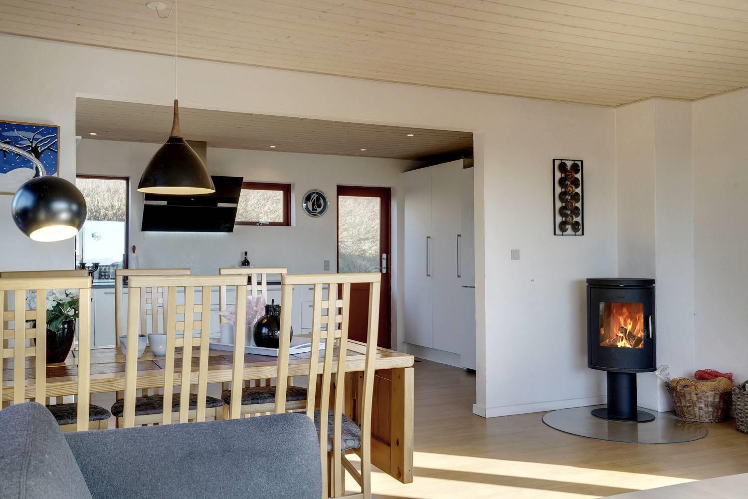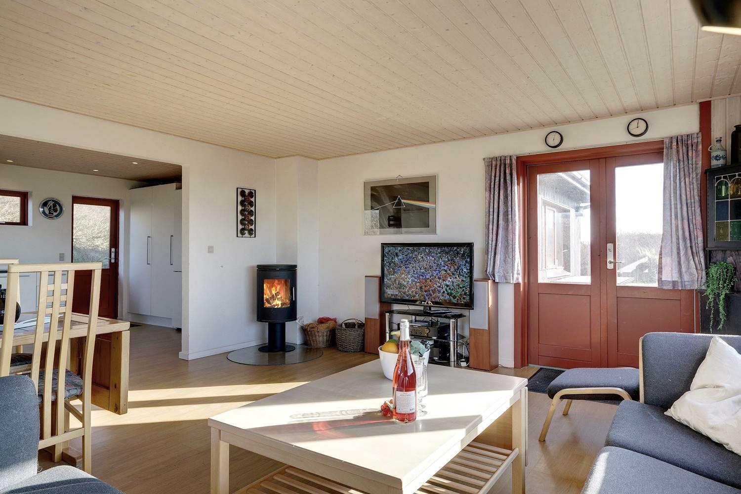 På en kuperet og højtliggende naturgrund kun 2 minutters gang fra vandet ligger dette rigtigt hyggelige feriehus. Der er flot køkken og badeværelse. Nyd den flotte udsigt fra stuen eller den dejlige terrasse. Et dejligt feriehus med meget kort gåafstand til både strand og by.