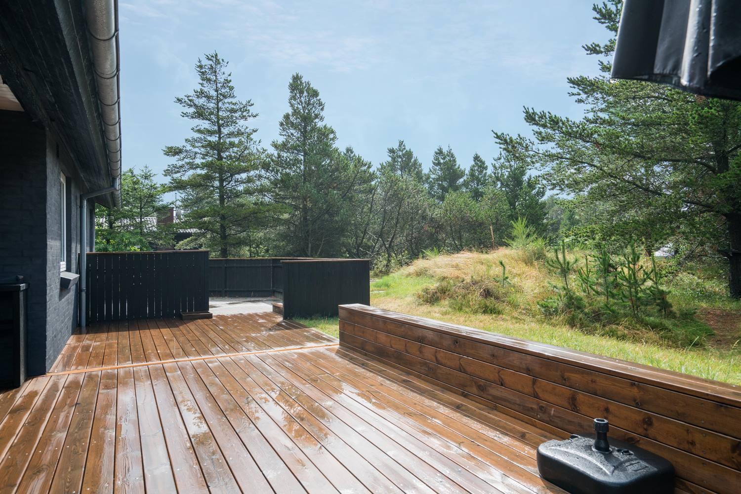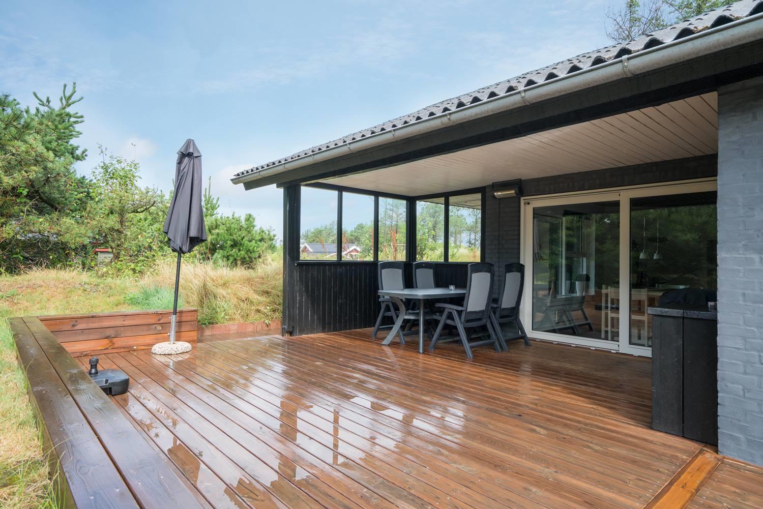 Huset ligger tilbagetrukket på grunden og med en næsten lukket terrasse er det ideel at tage hunden med.