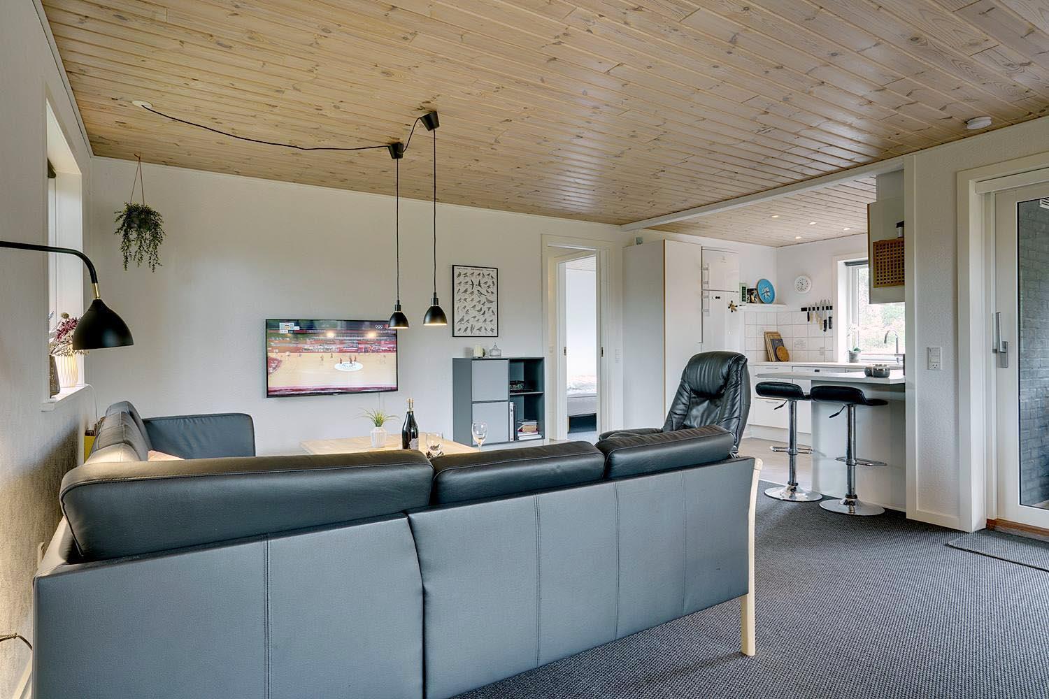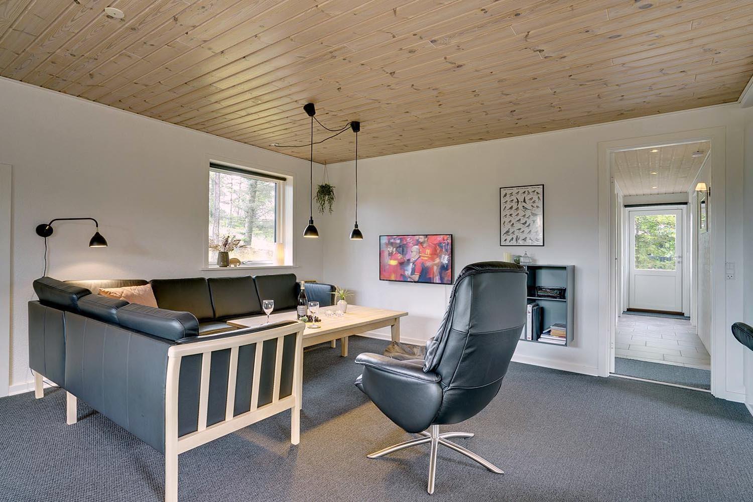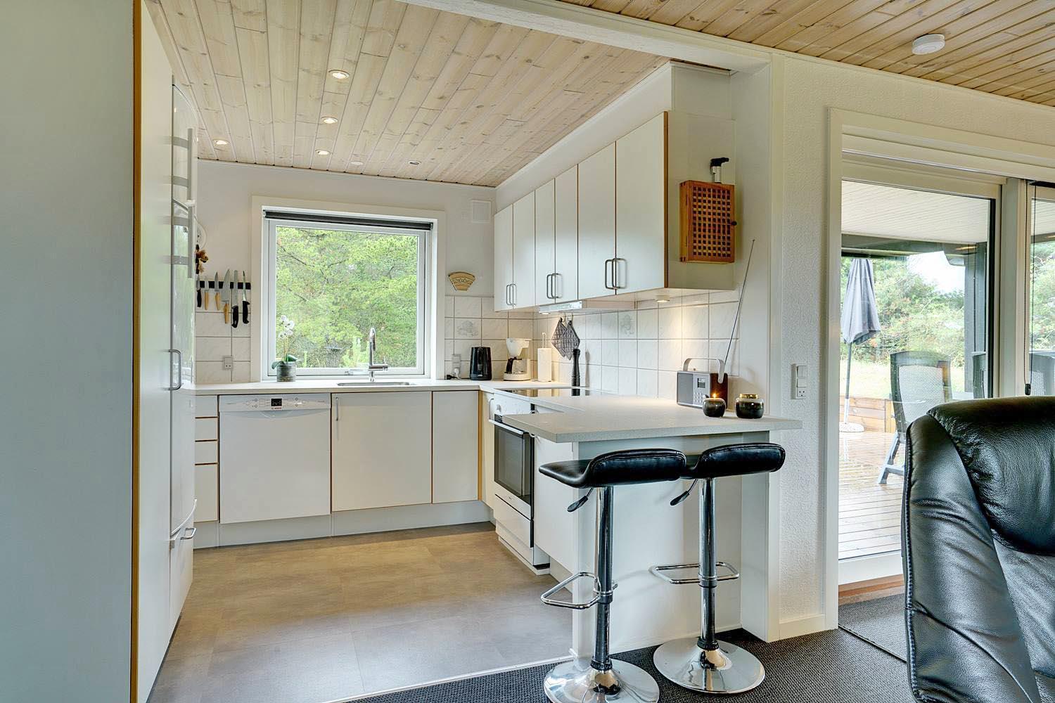 Dette dejlige murede feriehus ligger tilbagetrukket fra vejen og er meget velholdt. Der er 3 gode soverum med mørklægningsgardiner. Nyt flot badeværelse. Renoveret køkken med stort vindue som er i åben forbindelse med den dejlige stue. I stuen er der lille hyggelig alkove med lille TV og lille vindue som vender ud mod træerne på grunden. Omkring huset er der flere læ fulde hjørner, hvor man ugeneret kan opholde sig. Godt skur til opbevaring af cykler eller lign.