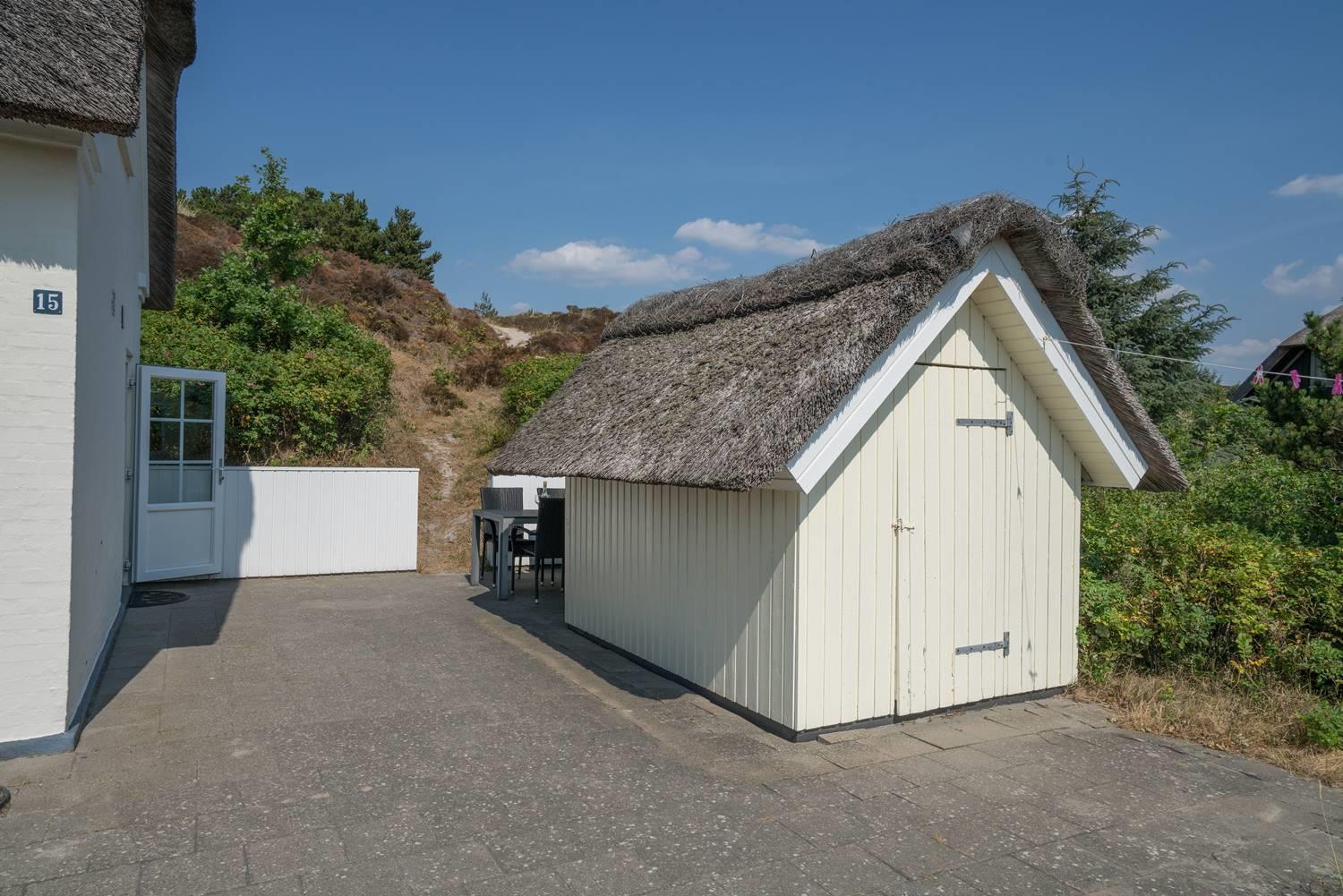 Huset er omkranset af en stor, solrig og helt lukket terrasse, hvor man altid kan finde læ og nyde udelivet i fred og ro. Her er plads til både afslapning, grillhygge og leg for de mindste.