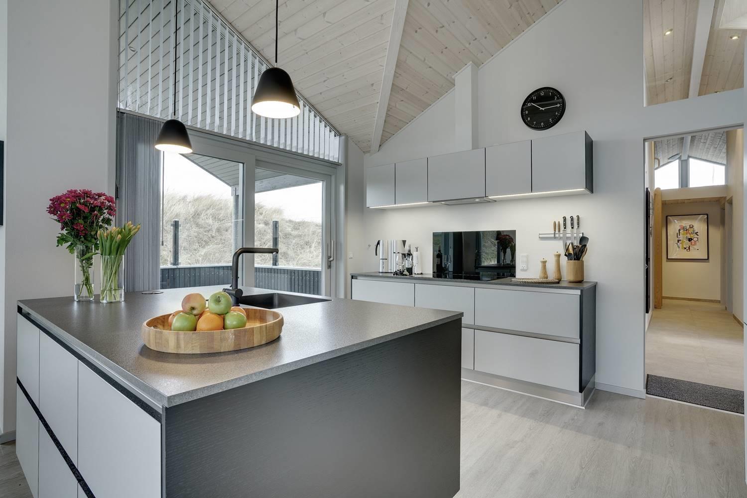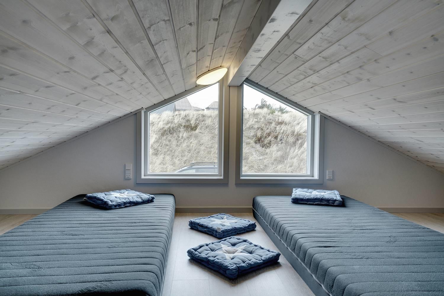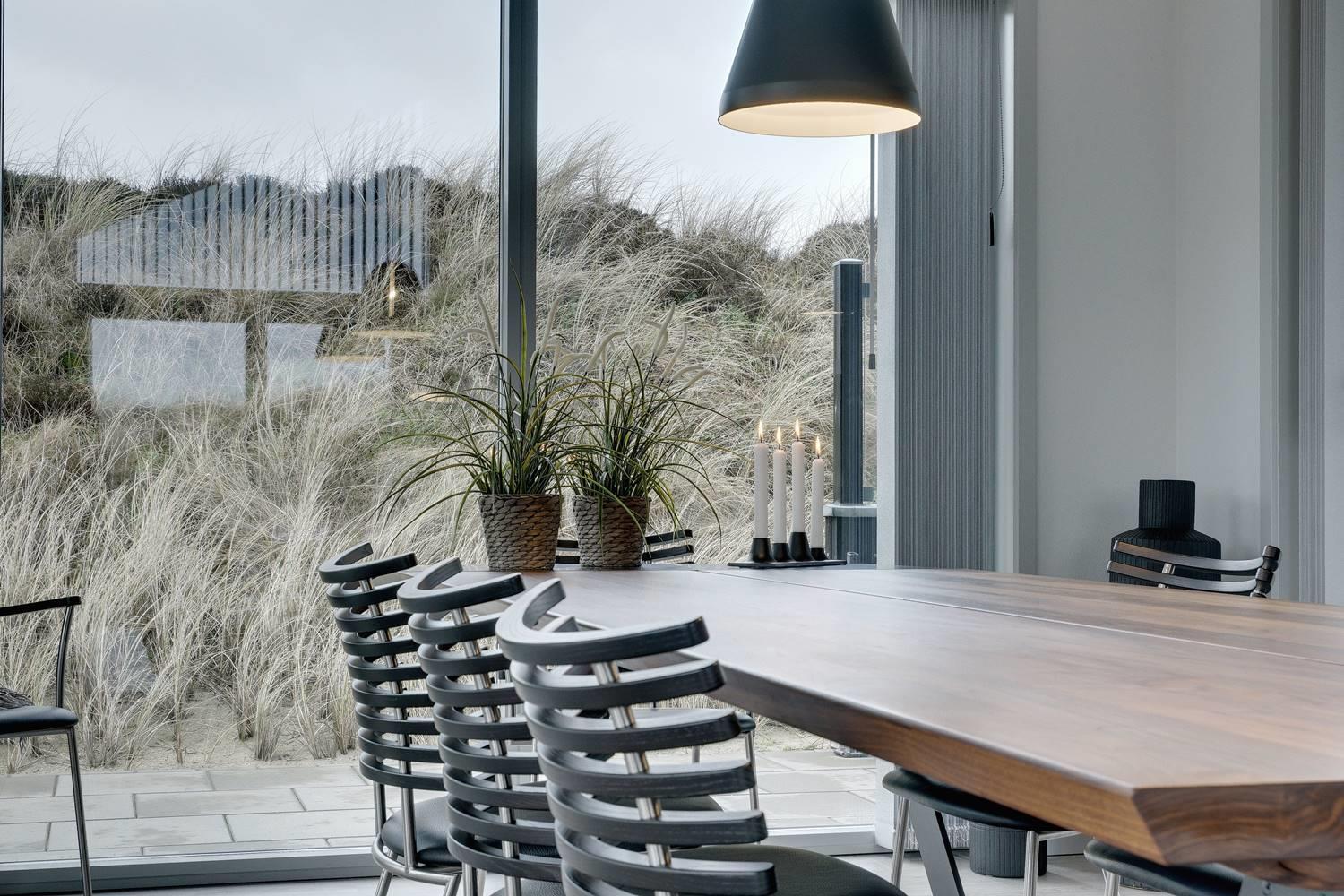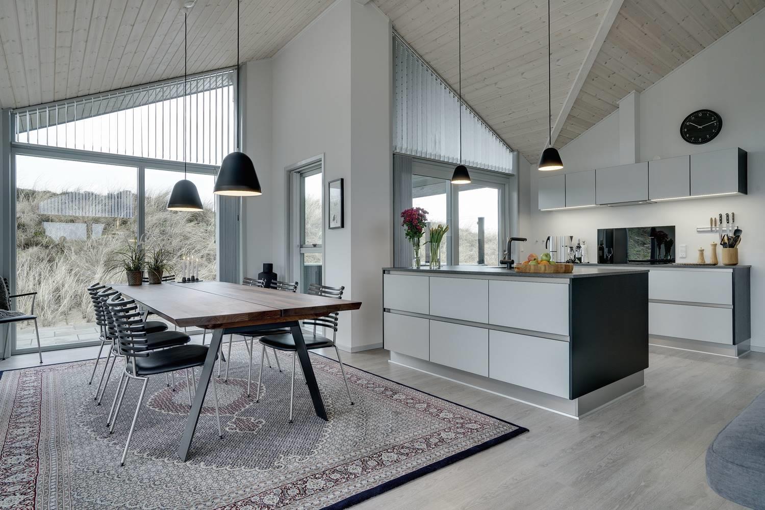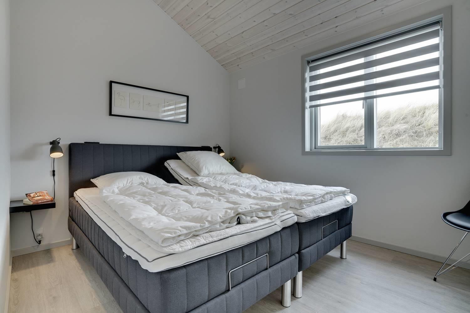 Kun få hundrede meter fra stranden ligger dette stilfulde luksushus. Huset er højt beliggende og ugeneret på en let kuperet klitgrund med skøn udsigt over området. Huset er rummeligt med store rum, højt til loftet og masser af lys fra store vinduer. I forbindelse med køkken/alrummet er der dejlig stue, som er indrettet med kvalitetsmøbler og med udsigt over området. Der er 2 flotte badeværelser med bruser i det ene ligeledes spa og sauna. 3 gode soverum alle med dobbeltsenge og god skabsplads, i det ene er der elevationsseng. Kontor med sovesofa. Hems på 18 m2. Stor flisebelagt og delvis overdækket terrasse omkring huset, hvor der altid er muligt at finde en lækrog. Huset er ekstra isoleret og med energibesparende gulvvarme fra luft til vand varmepumpe. Et helt fantastisk luksus feriehus i absolut bedste kvalitet, hvor alt i huset fremstår som nyt og indbydende.