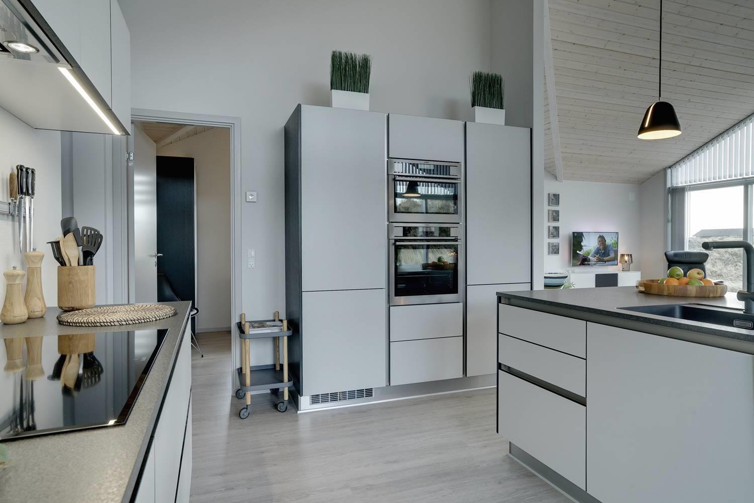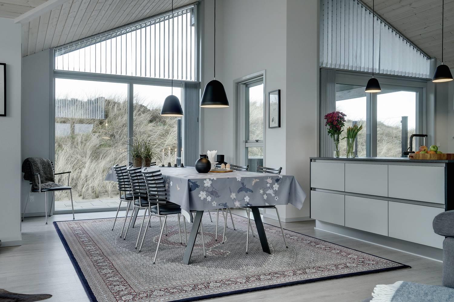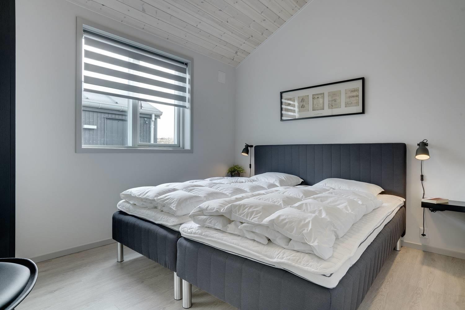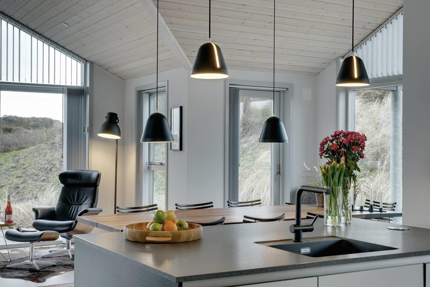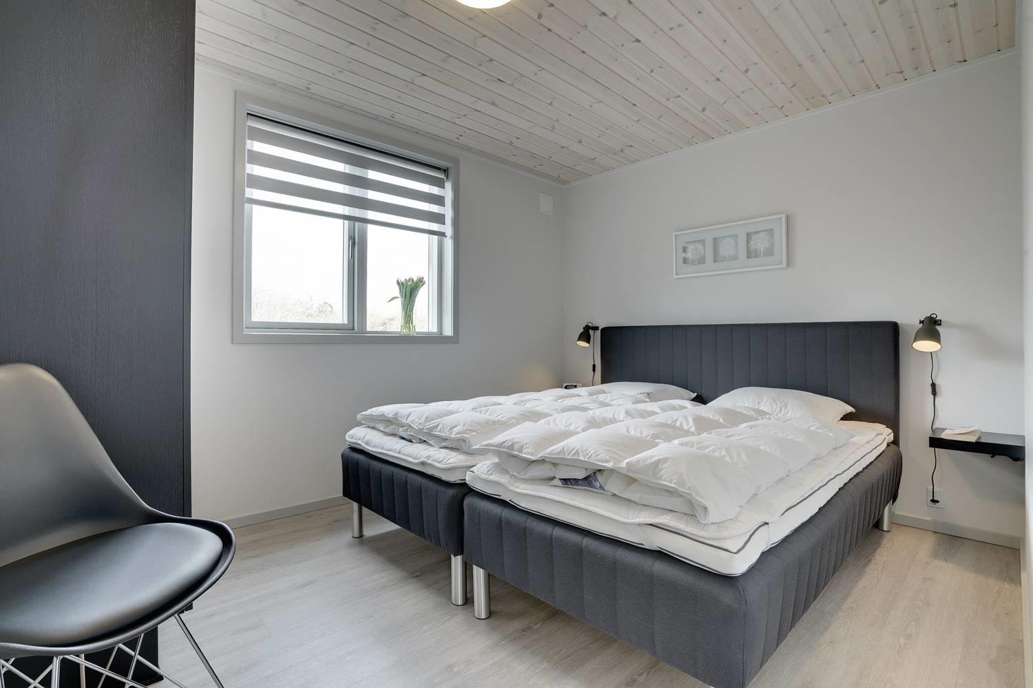 Kun få hundrede meter fra stranden ligger dette stilfulde luksushus. Huset er højt beliggende og ugeneret på en let kuperet klitgrund med skøn udsigt over området. Huset er rummeligt med store rum, højt til loftet og masser af lys fra store vinduer. I forbindelse med køkken/alrummet er der dejlig stue, som er indrettet med kvalitetsmøbler og med udsigt over området. Der er 2 flotte badeværelser med bruser i det ene ligeledes spa og sauna. 3 gode soverum alle med dobbeltsenge og god skabsplads, i det ene er der elevationsseng. Kontor med sovesofa. Hems på 18 m2. Stor flisebelagt og delvis overdækket terrasse omkring huset, hvor der altid er muligt at finde en lækrog. Huset er ekstra isoleret og med energibesparende gulvvarme fra luft til vand varmepumpe. Et helt fantastisk luksus feriehus i absolut bedste kvalitet, hvor alt i huset fremstår som nyt og indbydende.