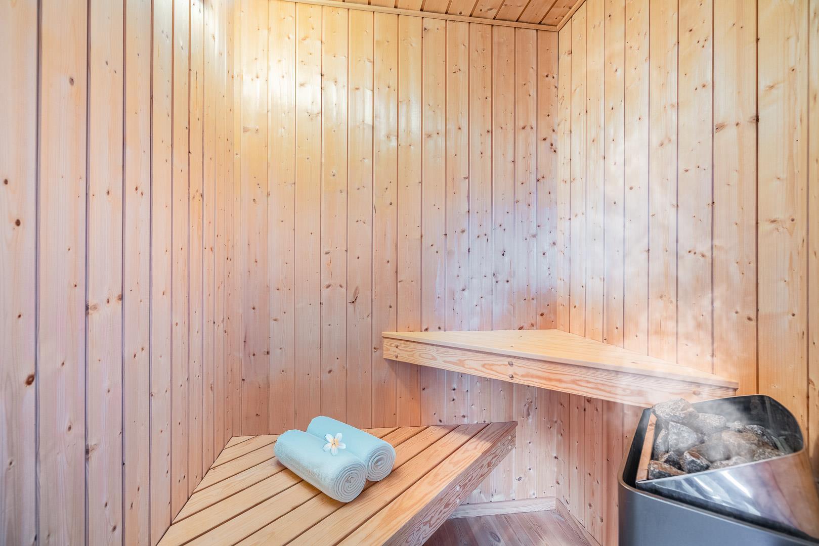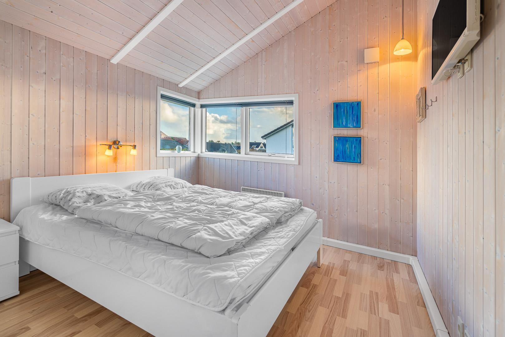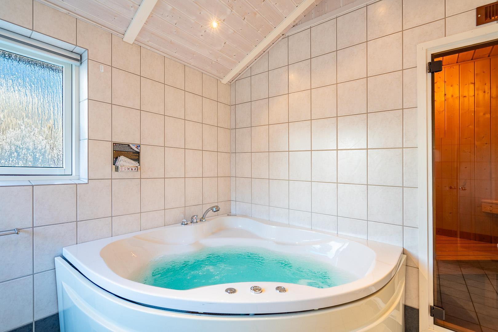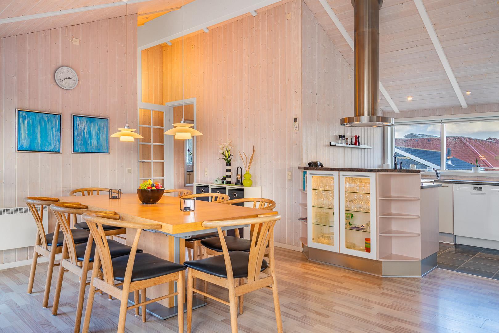 Kvalitetsferiehus med spa og sauna nær Henne Strands centrum og strand, med flere ugenerede terrasser og godt lysindfald.
