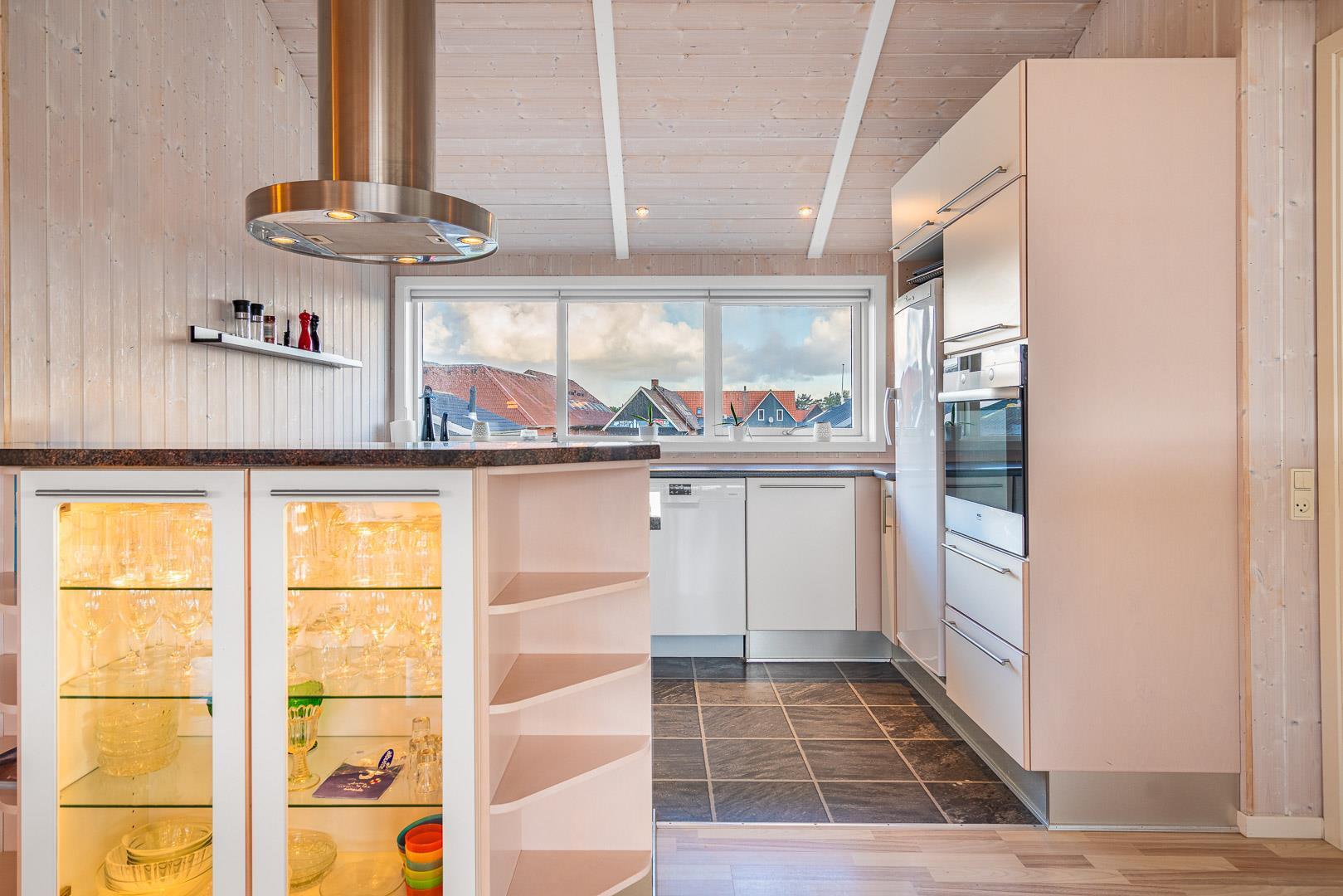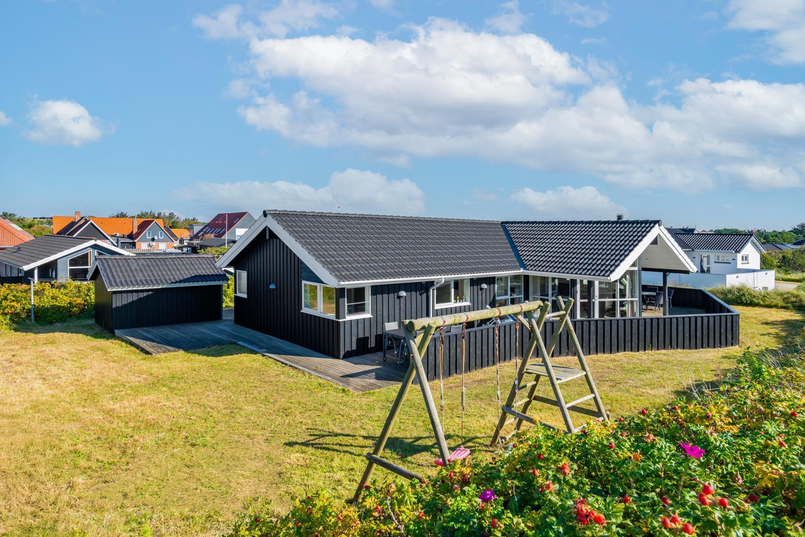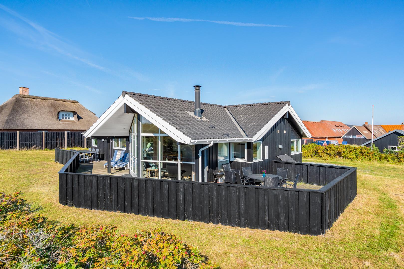 På en skøn klitgrund kun 2 minutters gang fra Henne Strands centrum og stranden, ligger dette kvalitetsferiehus med spa og sauna, godt tilbagetrukket i forhold til vejen, Det store vinduesparti giver et godt lysindfald ind i stuen. Huset råder over flere dejlige ugenerede terrasser, hvor der altid er mulighed for at finde en læ krog.