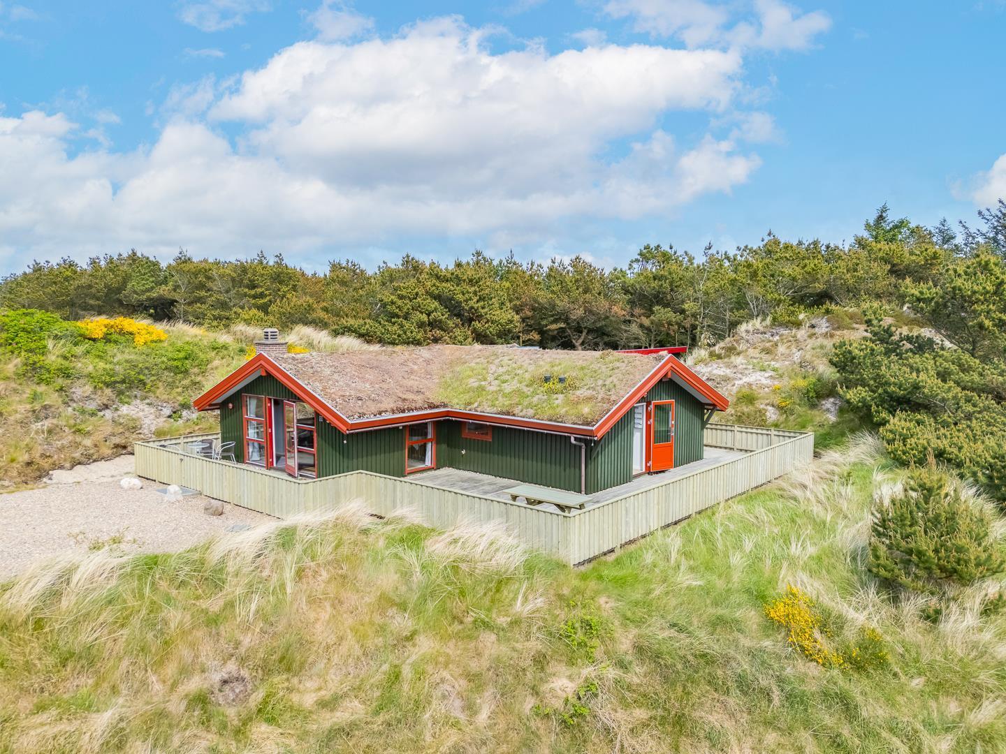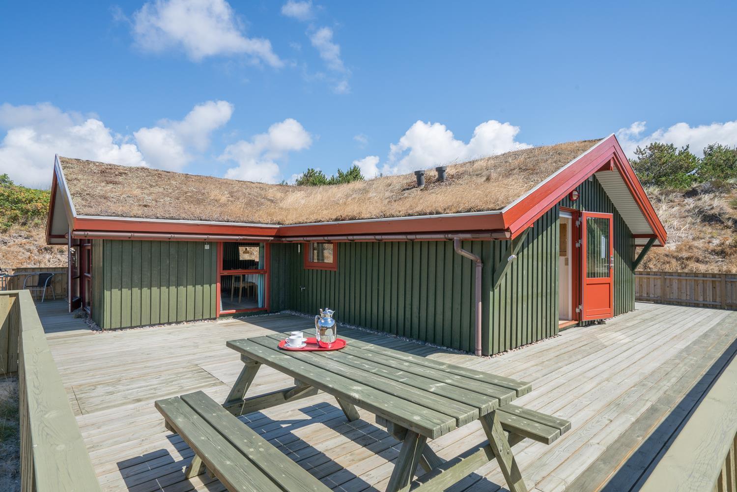 Sommerhuset ligger i et fredeligt sommerhusområde omgivet af smukke klitter. Der er gode parkeringsmuligheder tæt ved huset.