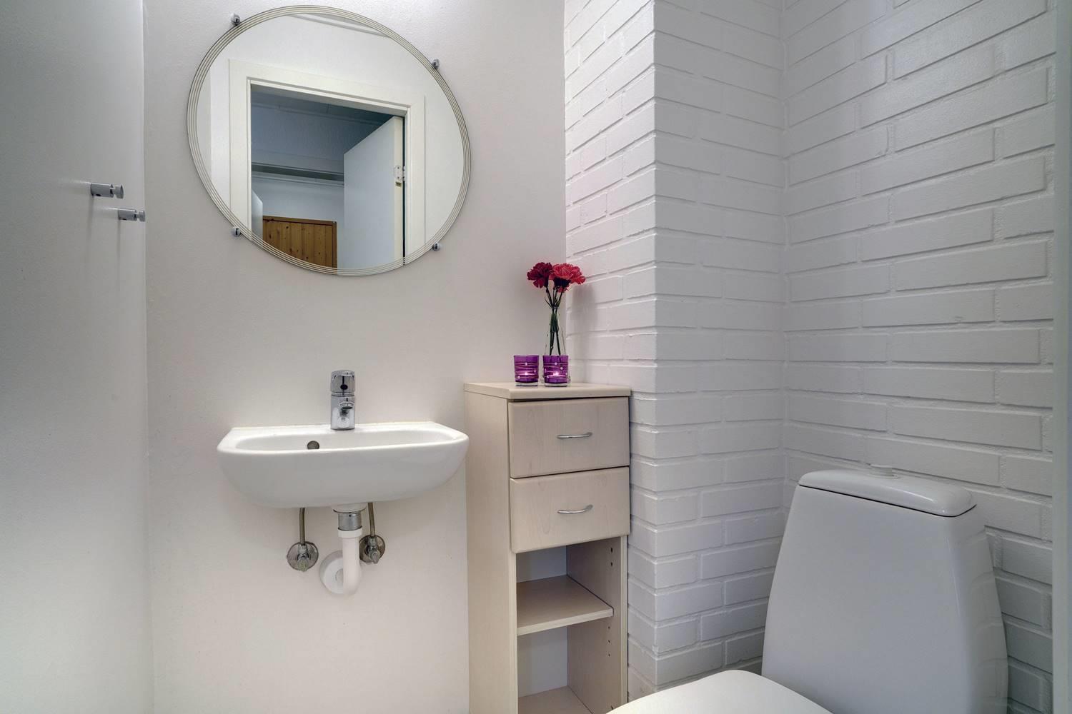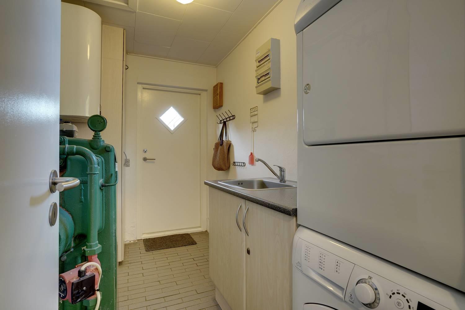 Husets hyggelige stue er smagfuldt indrettet og leder ud til en overdækket terrasse, hvor du kan nyde morgenkaffen uanset vejret. Terrassen strækker sig videre ud til en charmerende træterrasse med hegn, der både skaber læ og en hyggelig krog med sofa og liggestole. Her kan du koble af i hængekøjen eller lade tankerne vandre til lyden af fuglefløjt, mens du slapper af med en god bog.