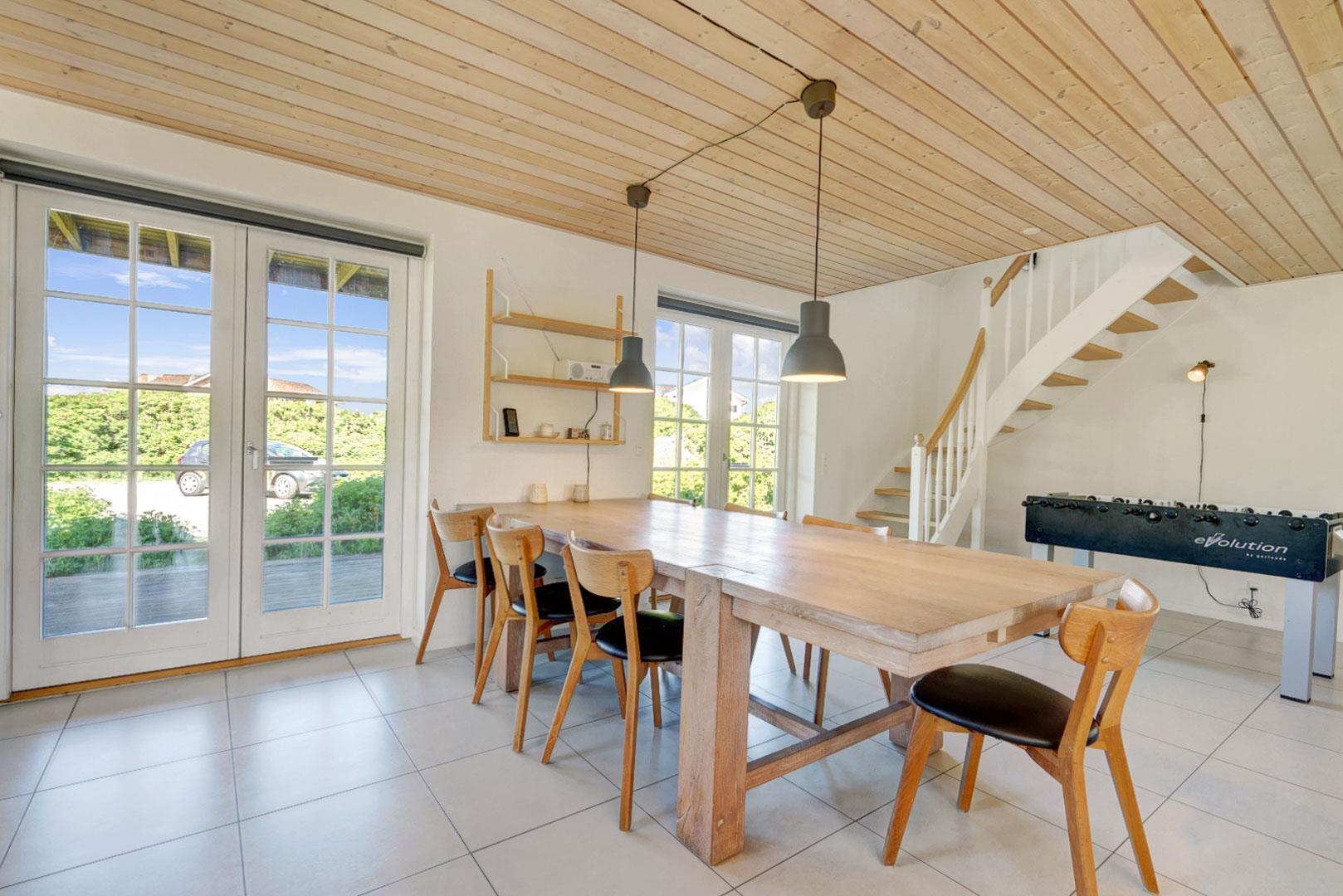 Oplev et helt unikt sommerhus i Henne Strand, hvor havudsigten kan nydes fra både første sal og den imponerende 12 kvm store altan. Beliggende på en enestående grund i første klitrække og kun 200 meter fra Vesterhavet, byder dette hus på den ultimative kystoplevelse. Med et imponerende terrasseanlæg på 60 kvm, udstyret med liggestole, parasol og komfortable havemøbler, er der rig mulighed for at nyde det udendørs liv i fulde drag.