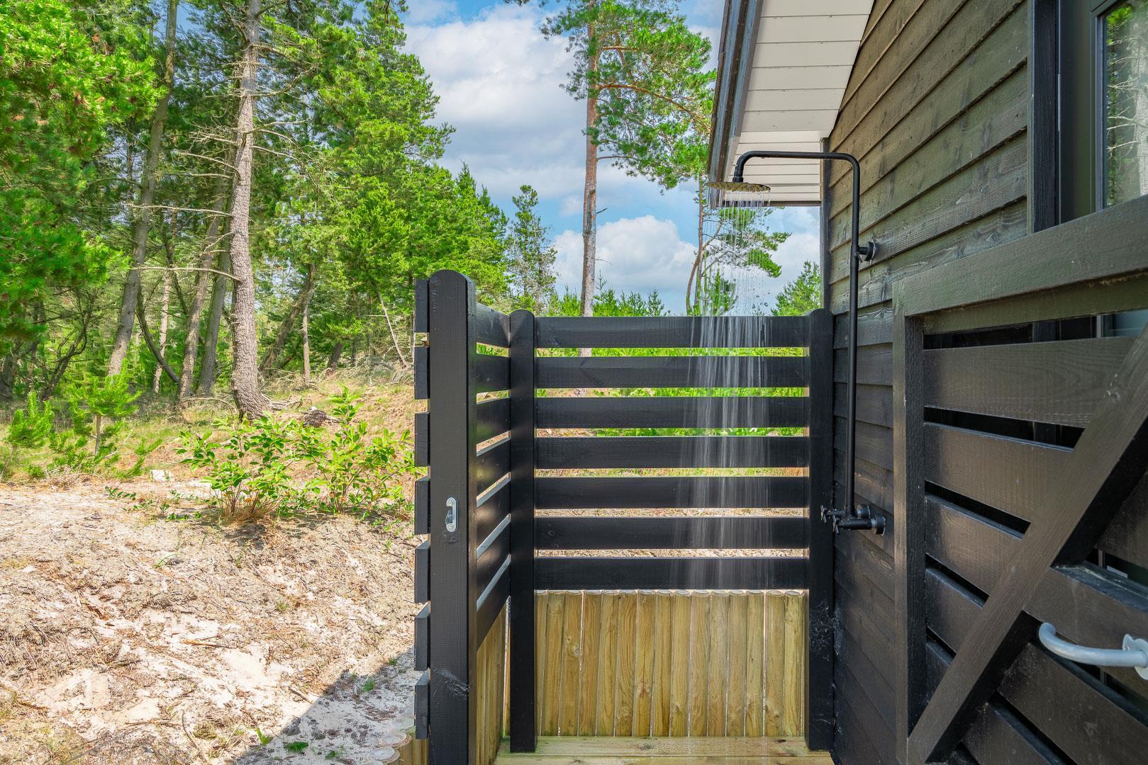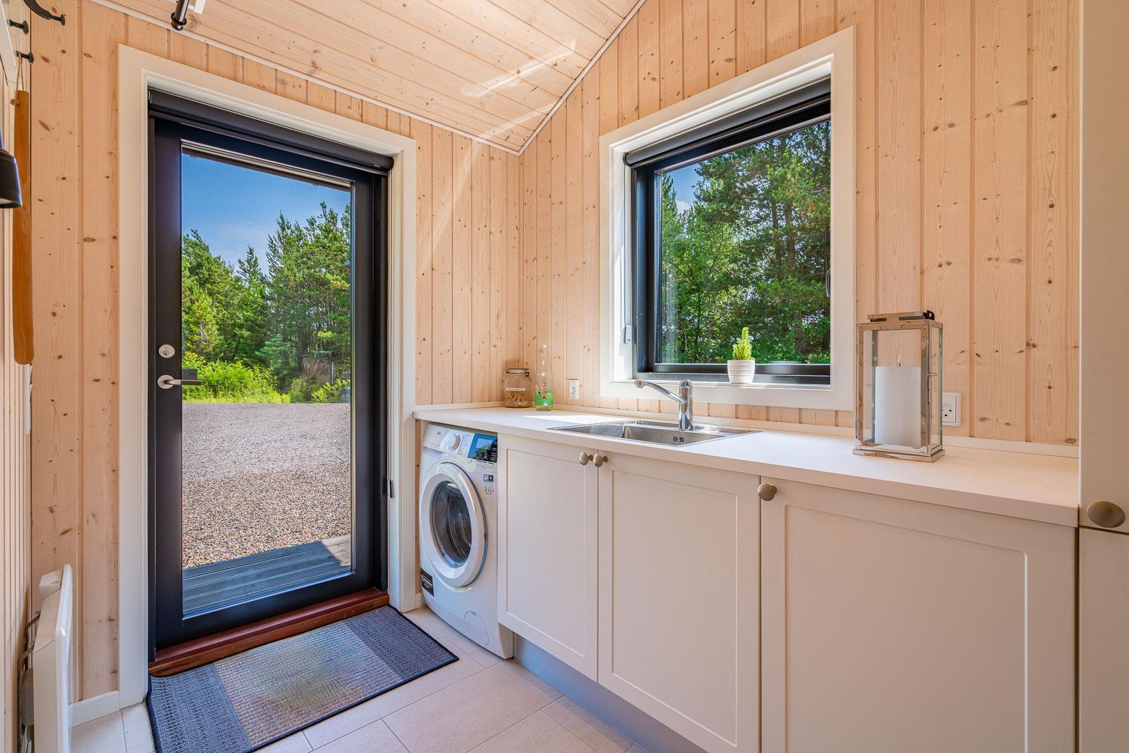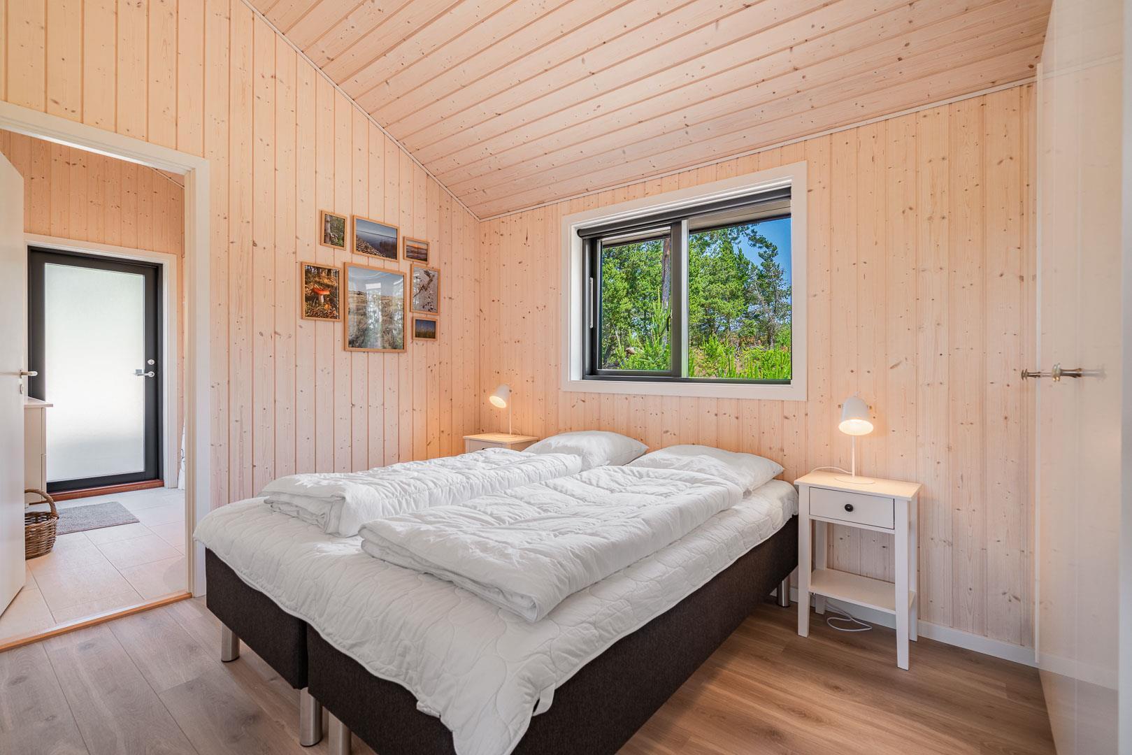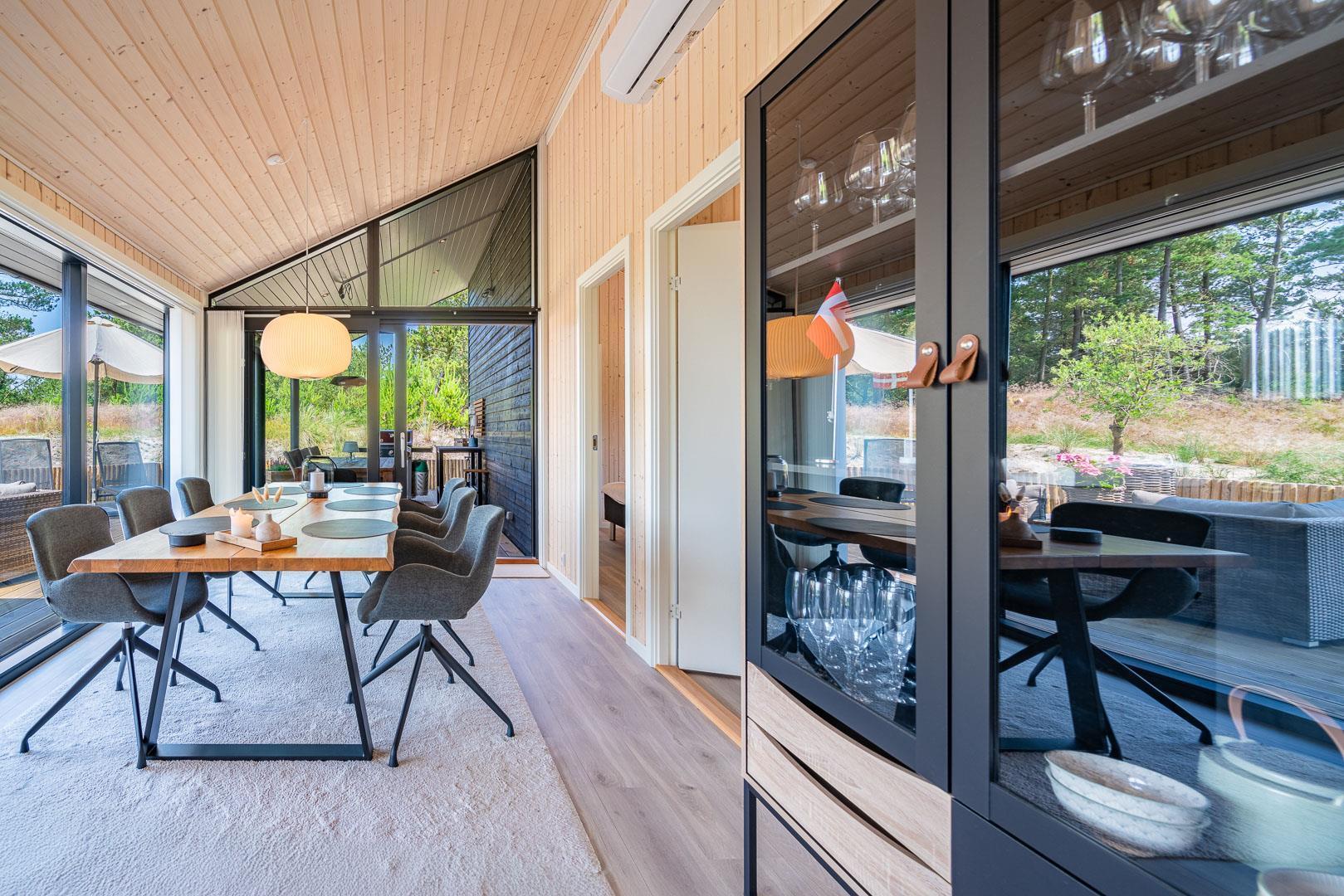Sommerhuset er opført i 2022 og har en komfortabel og praktisk planløsning med større køkken/alrum med store panoramavinduer med udsigt over naturgrunden. Herfra er der direkte udgang til delvis overdækket sydvendt træbelagt terrasse.