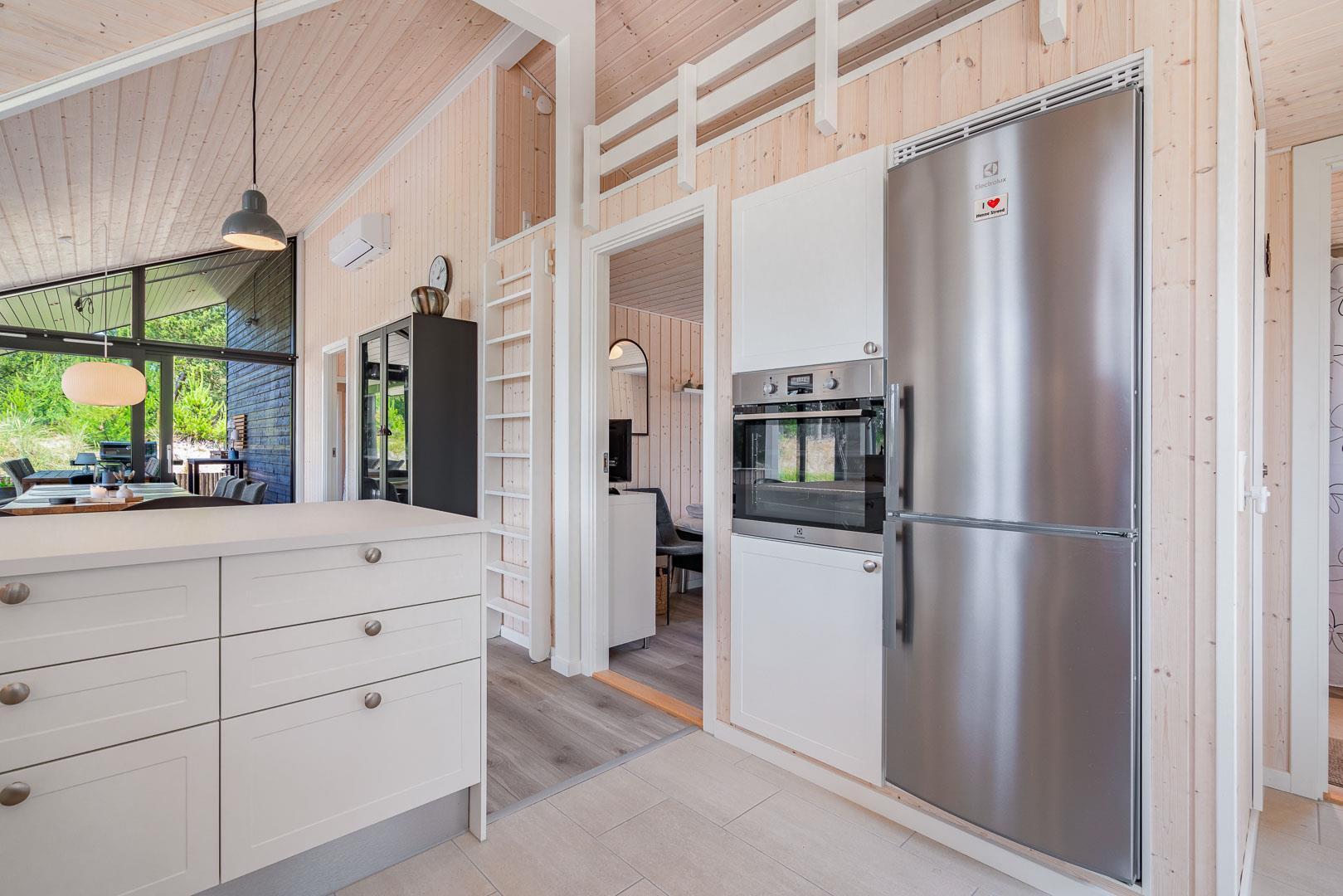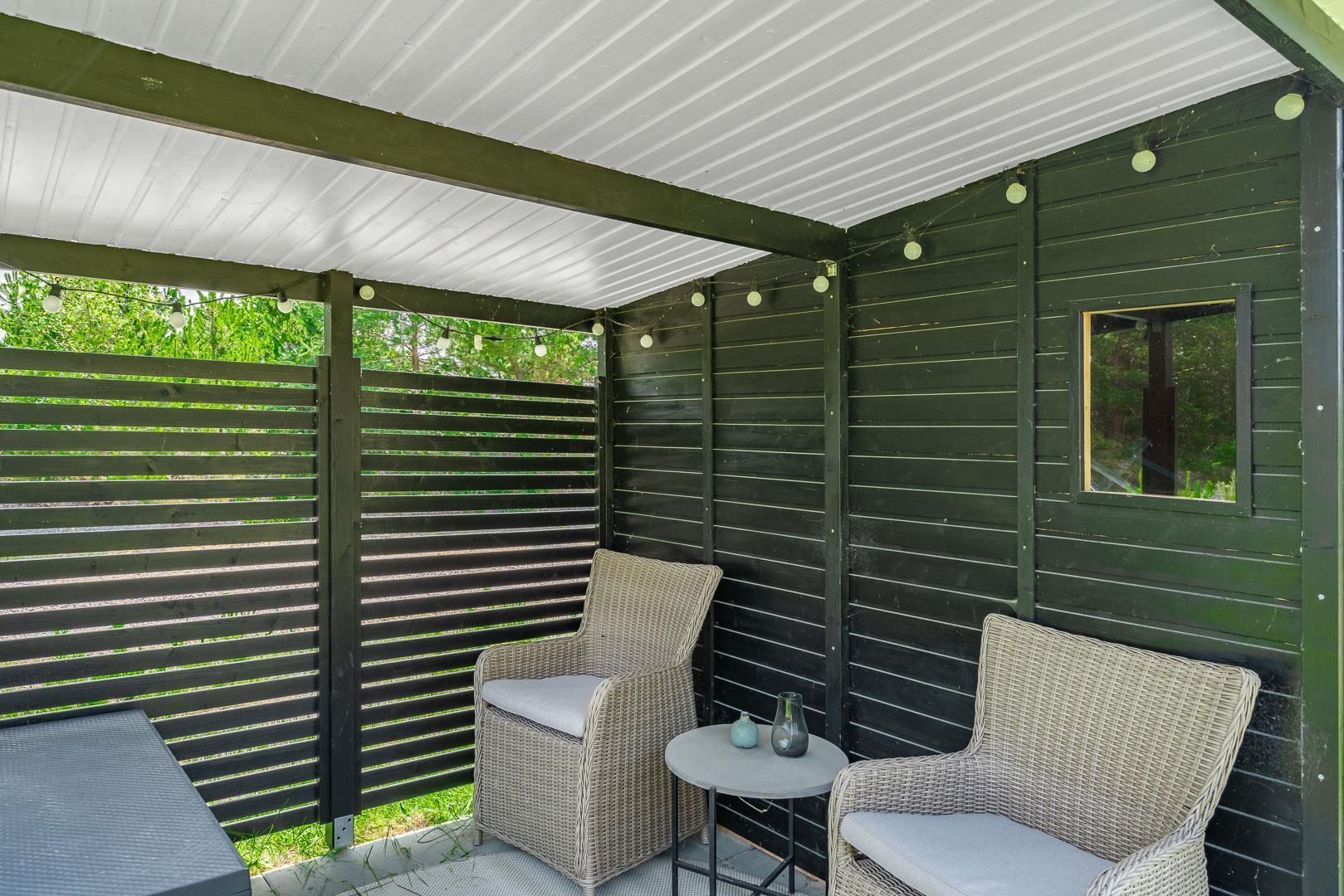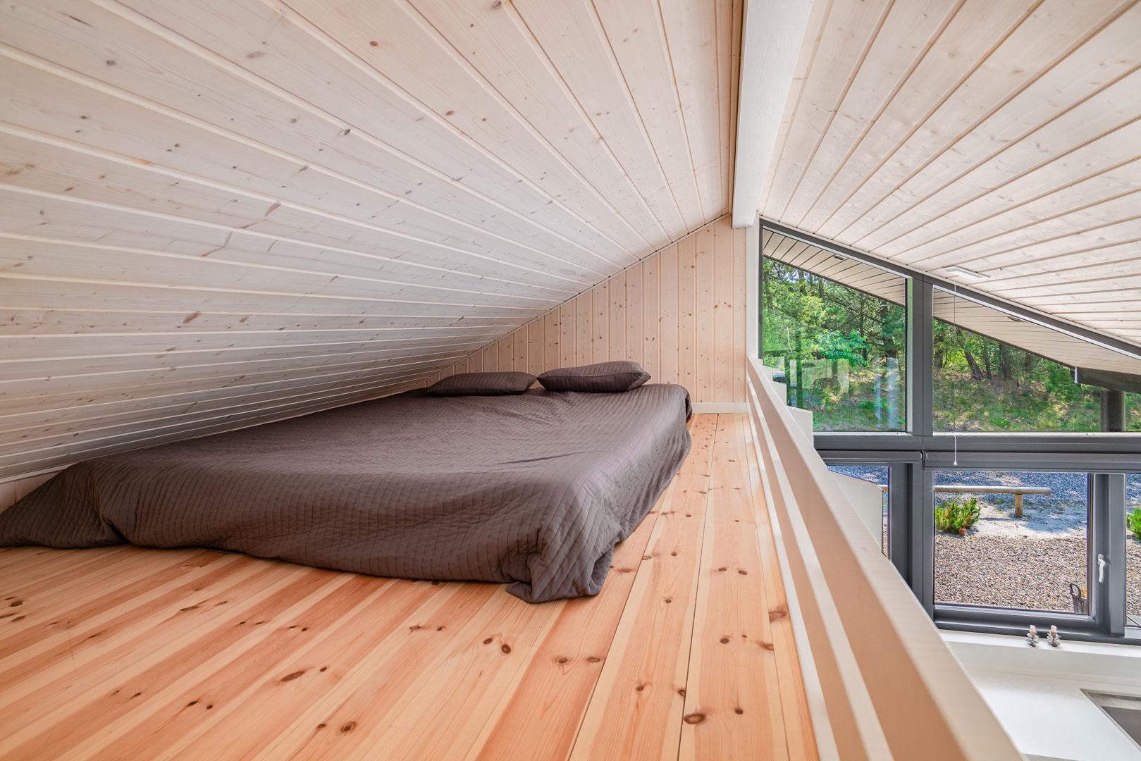 Sommerhuset er opført i 2022 og har en komfortabel og praktisk planløsning med større køkken/alrum med store panoramavinduer med udsigt over naturgrunden. Herfra er der direkte udgang til delvis overdækket sydvendt træbelagt terrasse.