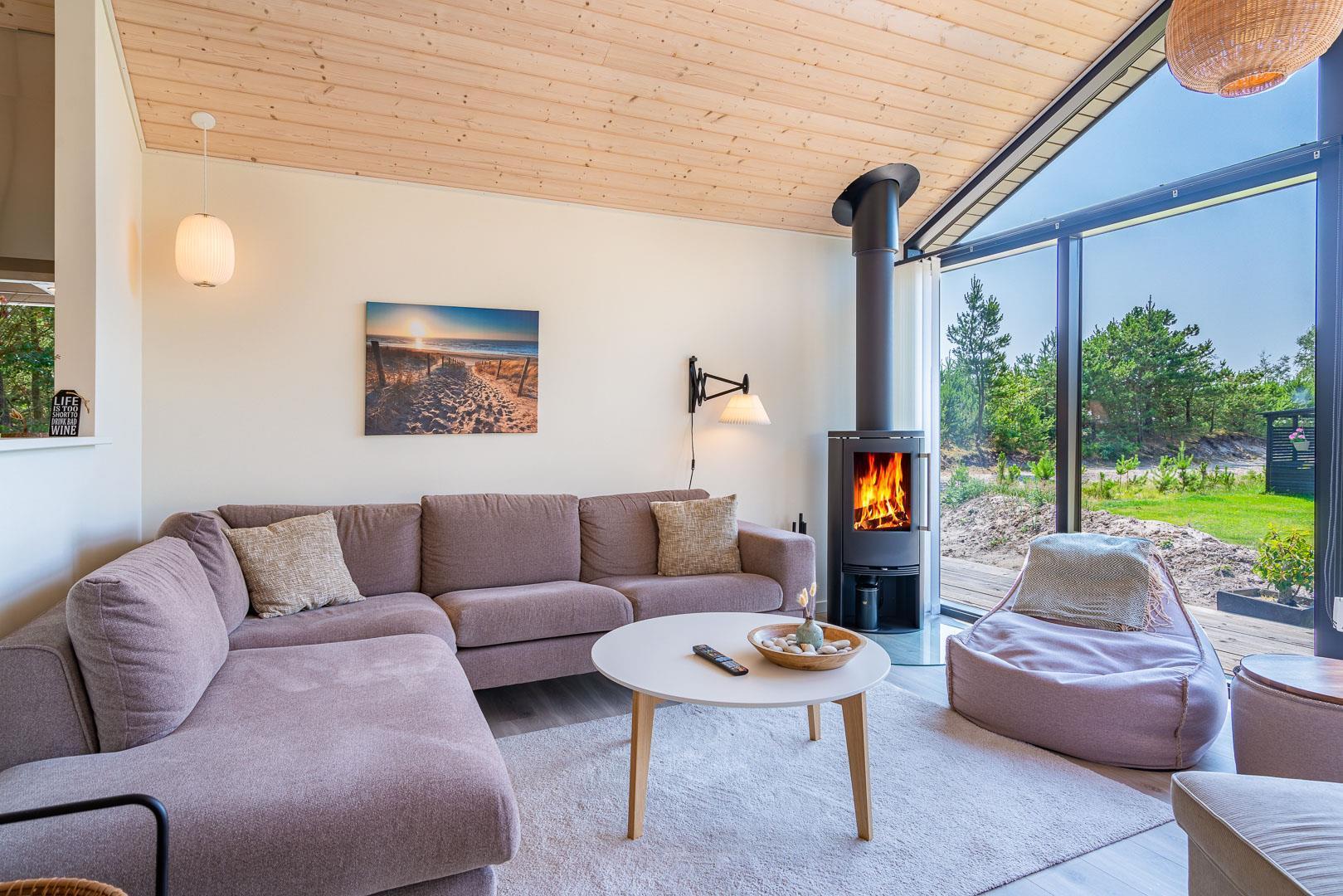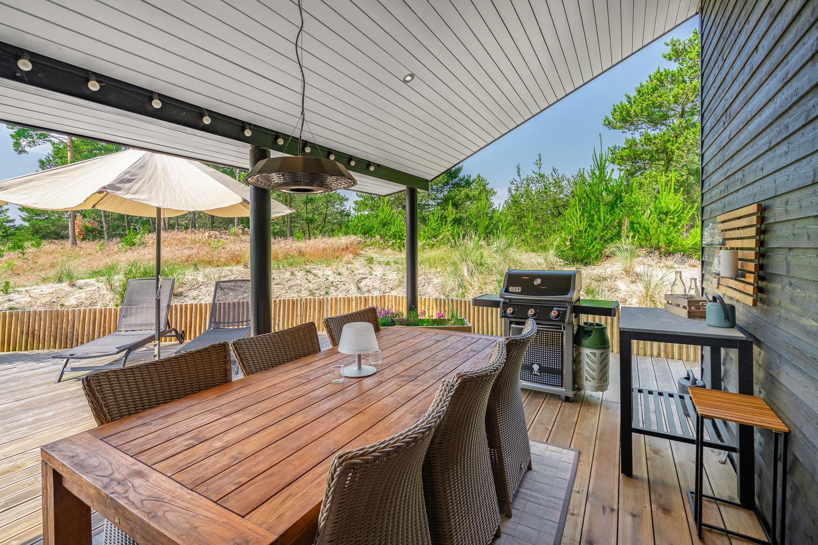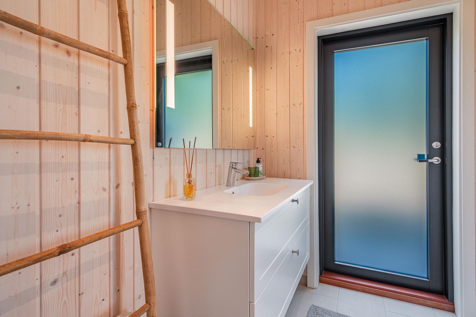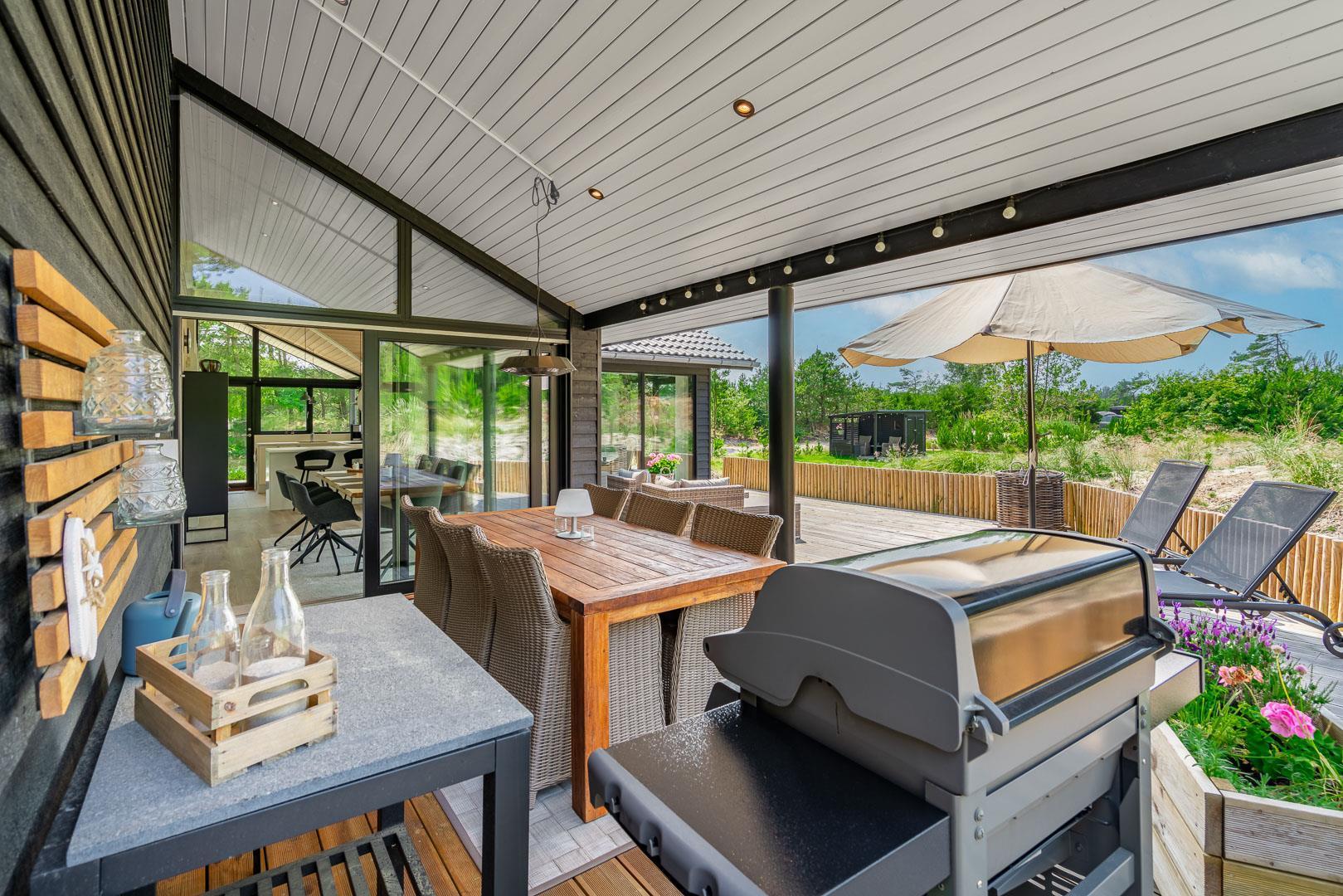Sommerhuset er opført i 2022 og har en komfortabel og praktisk planløsning med større køkken/alrum med store panoramavinduer med udsigt over naturgrunden. Herfra er der direkte udgang til delvis overdækket sydvendt træbelagt terrasse.