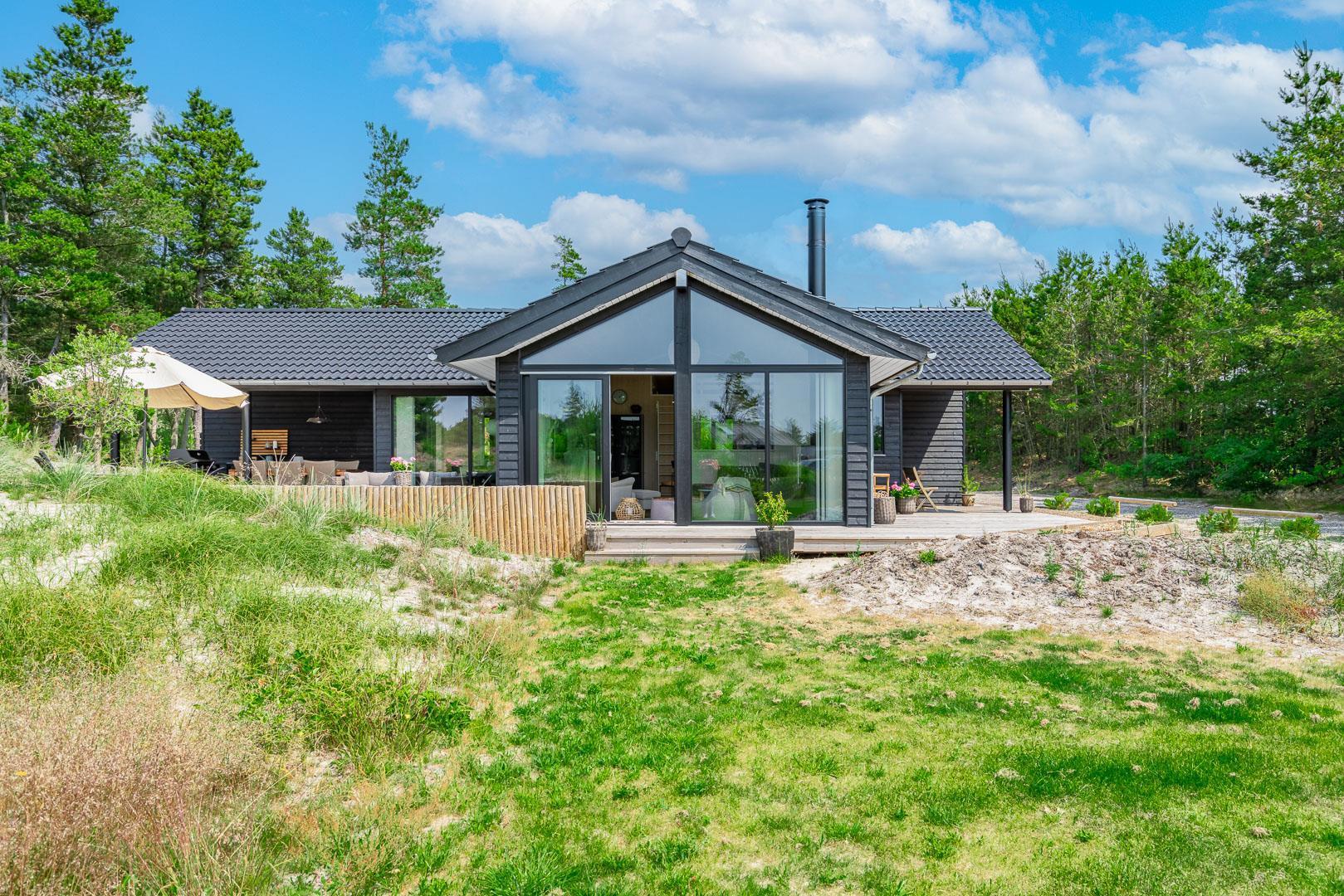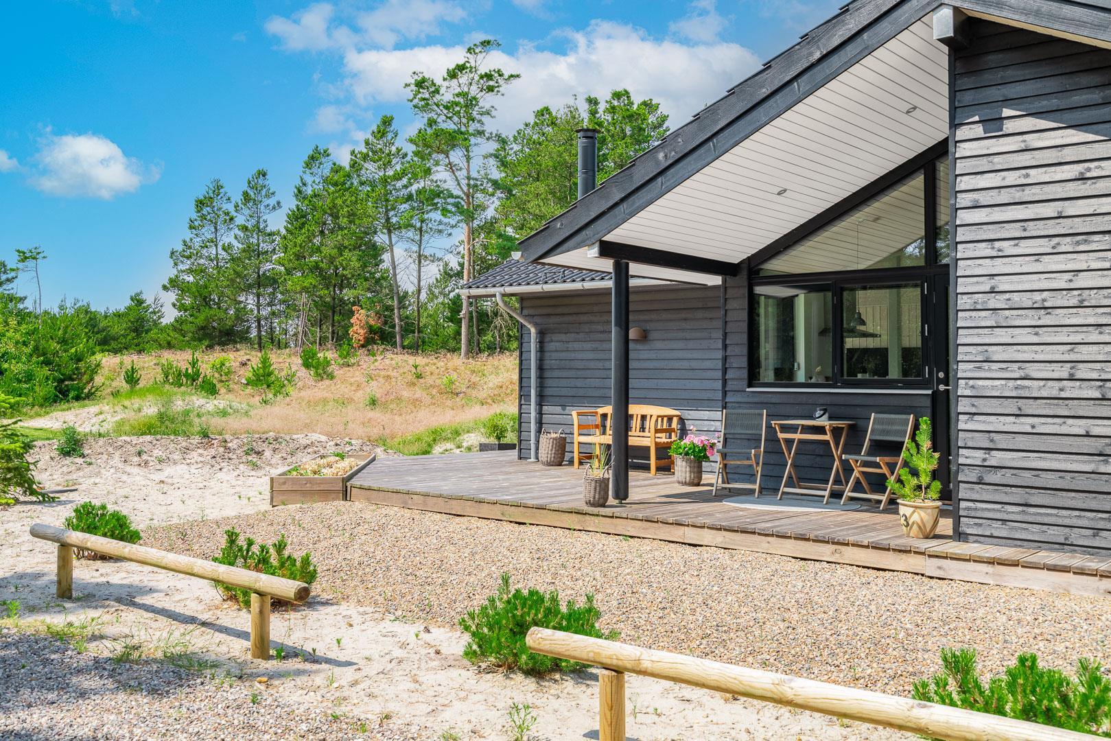 Nyere sommerhus med en unik planløsning, beliggende for enden af grusbelagt vej, med Lyngbos Hede som nærmeste nabo.