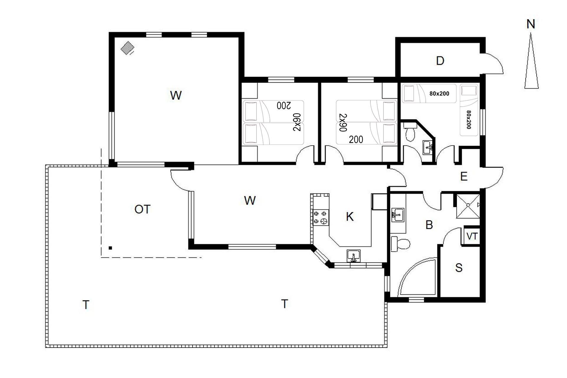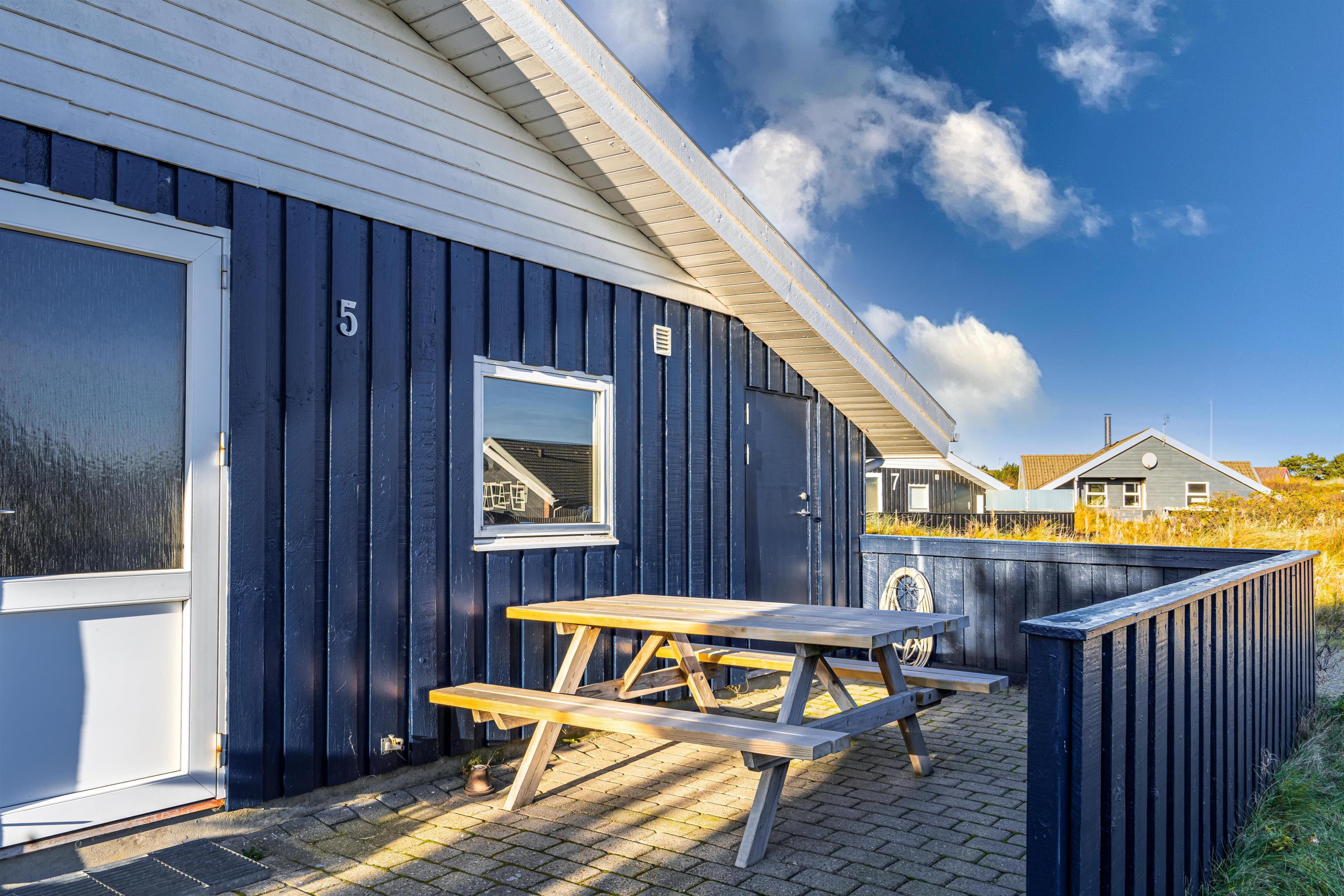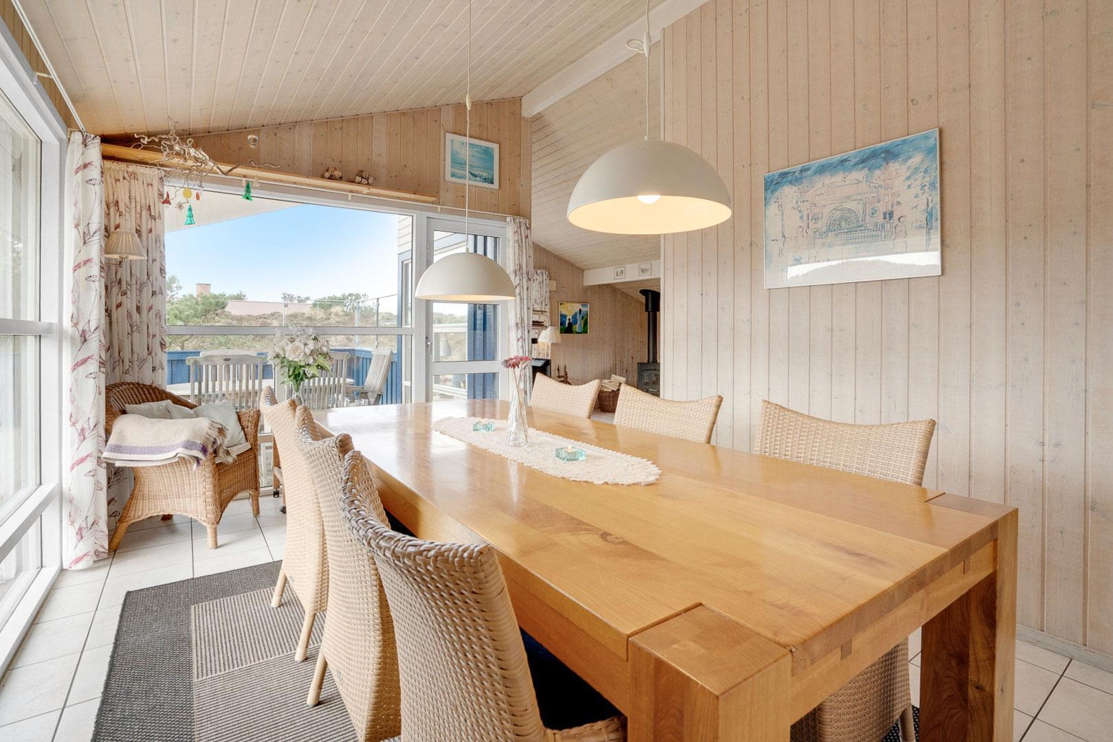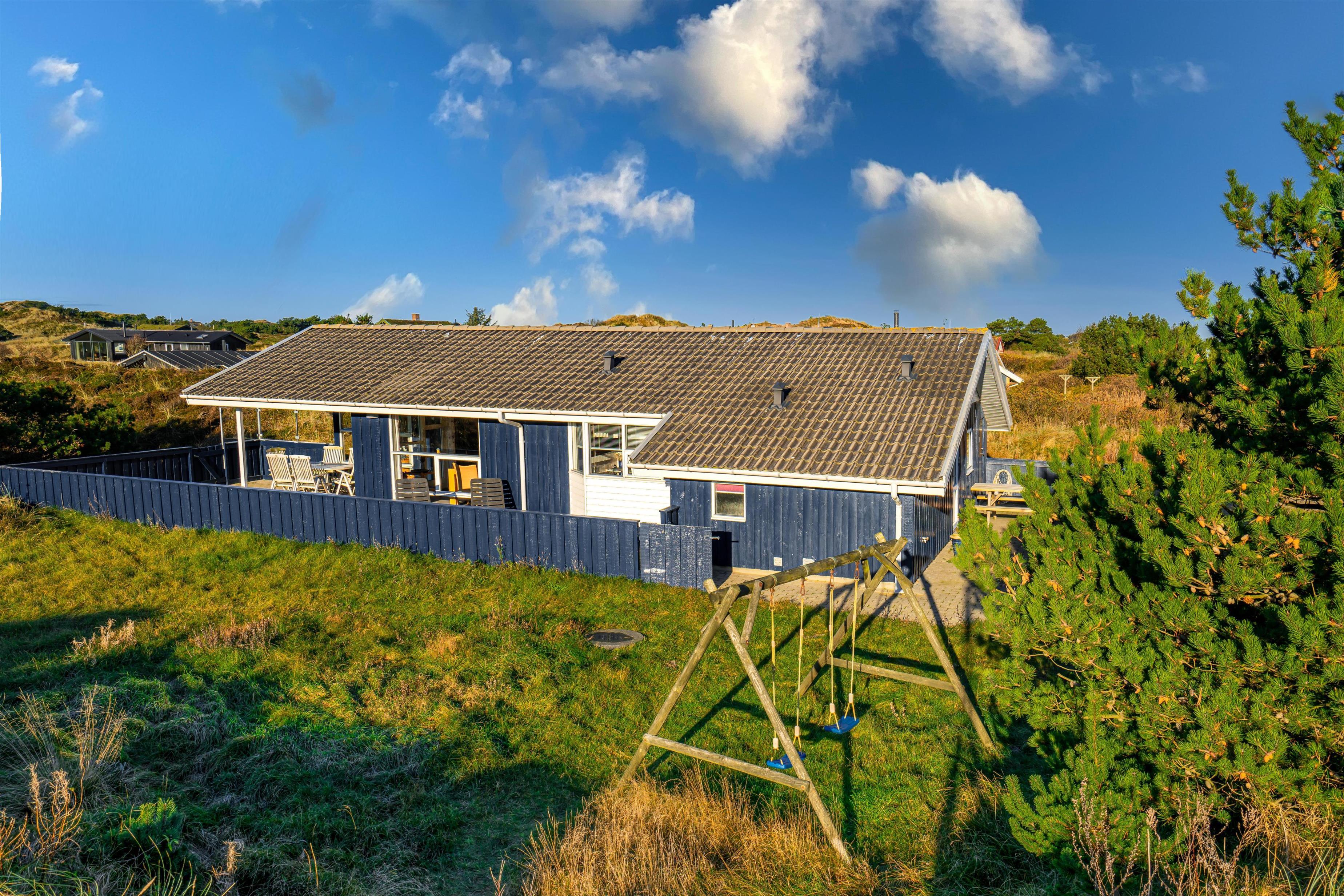 Dejligt, velholdt feriehus beliggende på en ugeneret beplantet klitgrund. Til huset hører der såvel åbent og delvis overdækket terrasse.