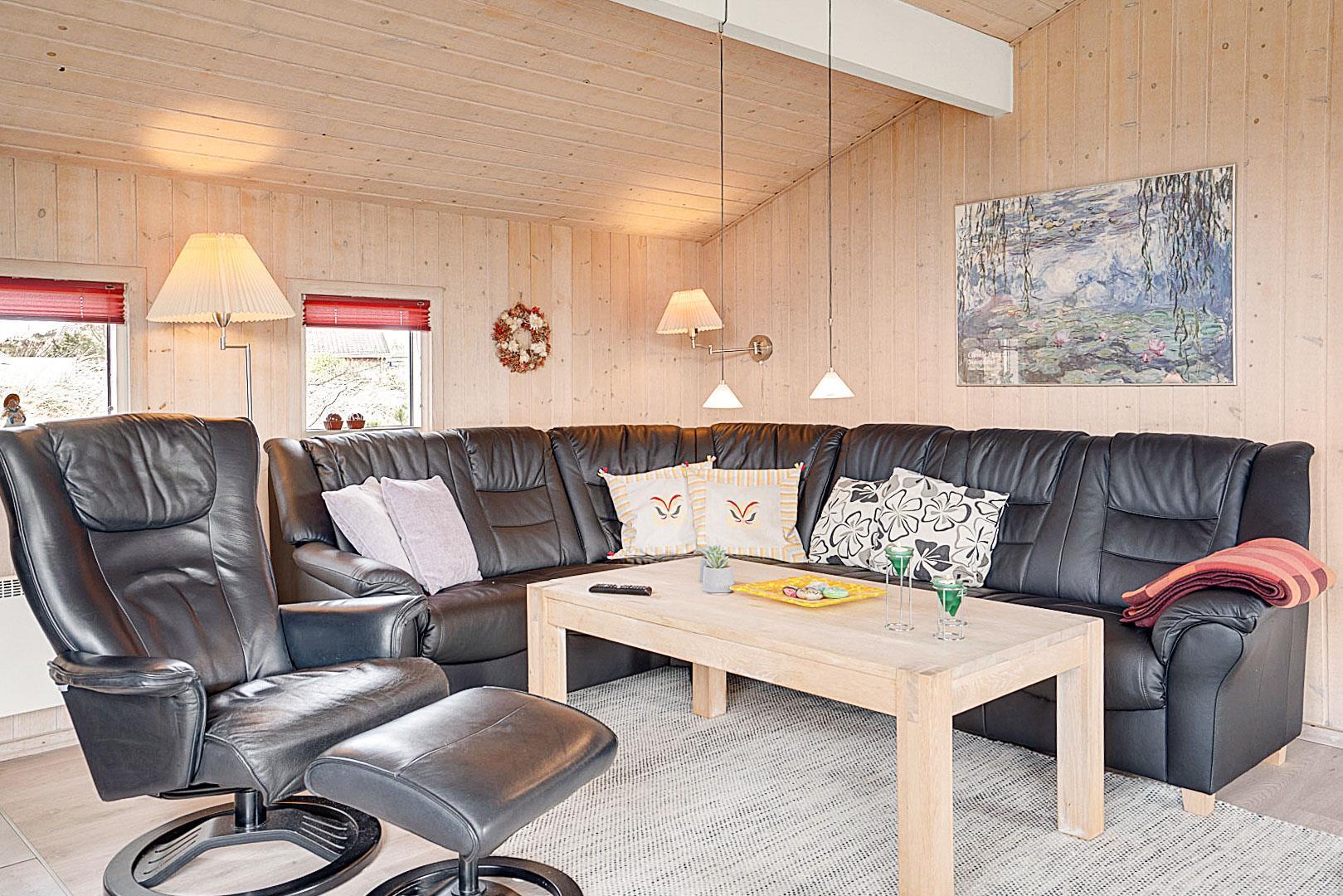Hyggelig opholdsstue indrettet med gode, komfortable møbler. Der internet i huset, så tag bare computeren med. Der er energibesparende varmepumpe/aircondition i huset. Et virkeligt dejligt feriehus, hvor rammerne er skabt til en god ferie. Oplade-mulighed til El-bil (CEE).