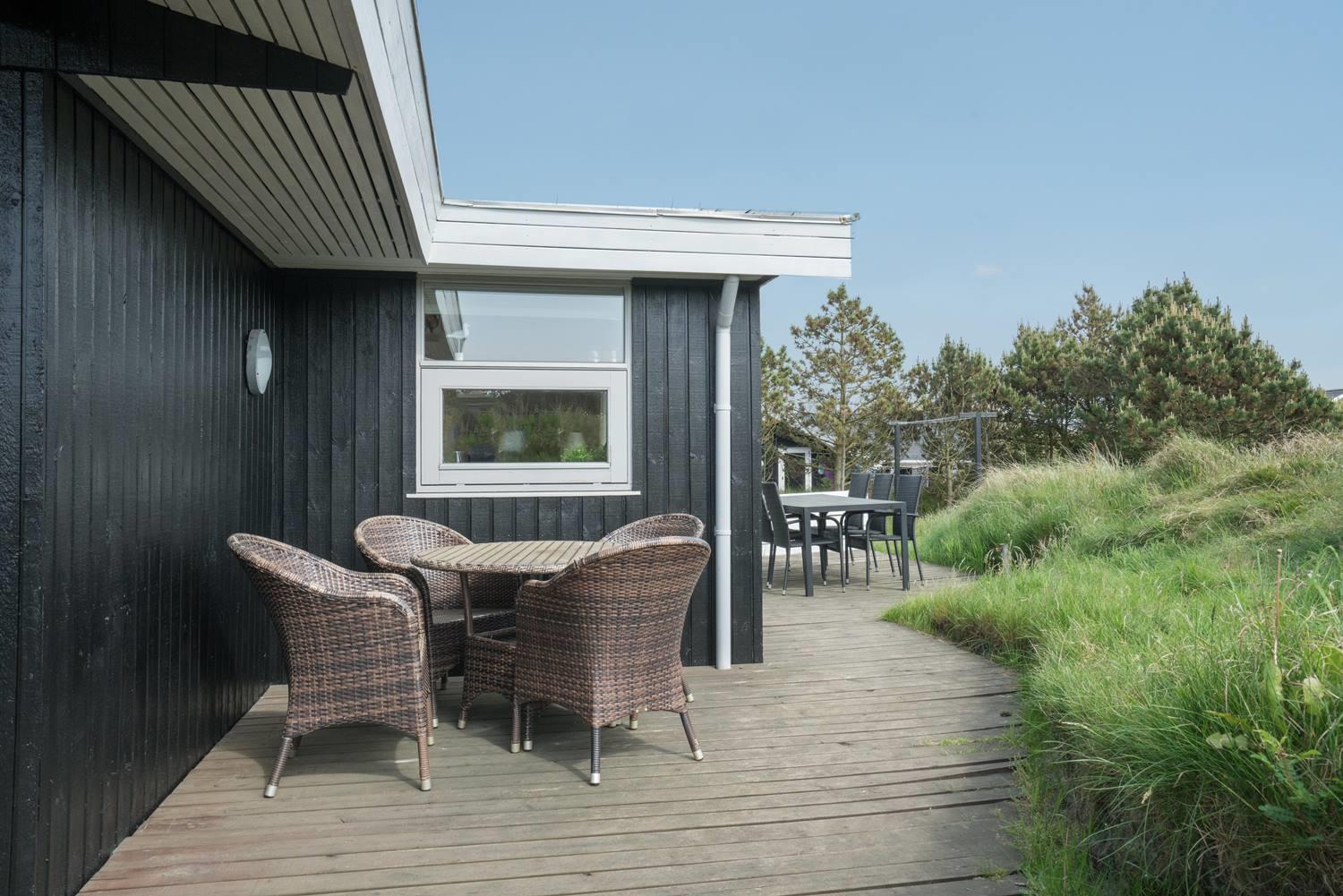 Husets træterrasser indbyder til solbadning eller man kan nyde aftensmaden på den overdækkede terrasse. 3 gode soveværelser med 6 sovepladser.