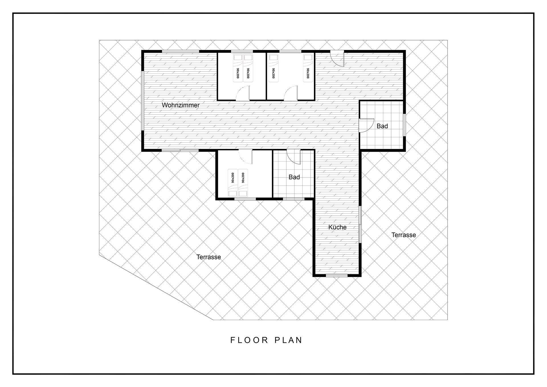 Sengestørrelse: 2 dobbeltsenge med 2 madrasser 90 x 200 cm + 2 enkeltsenge 90 x 200 cm.