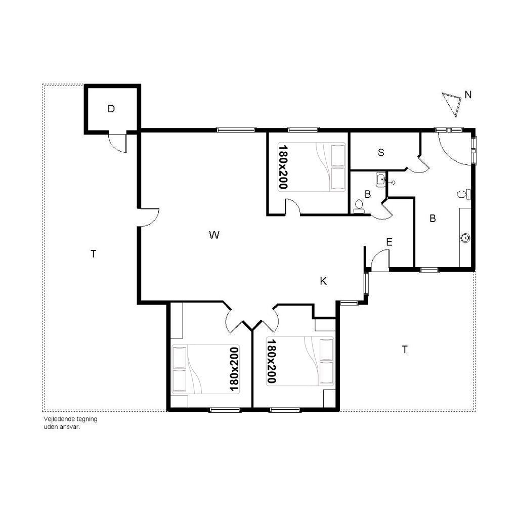 Sengestørrelser: 3 dobbeltsenge 180 x 200 cm.