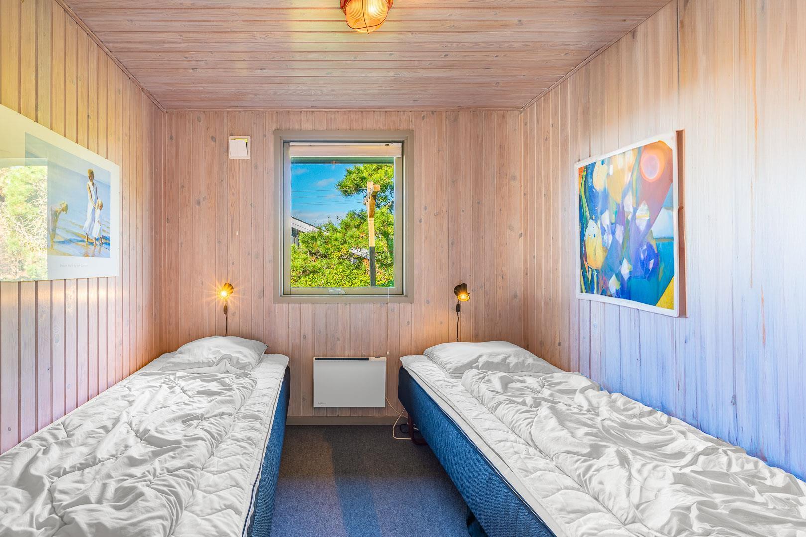 I rolige omgivelser på en flot og kuperet naturgrund ligger dette meget velholdte og løbende renoverede feriehus. Til huset hører stor, lukket samt en mindre overdækket terrasse. Flot nyere badeværelse. Det nye køkken (2025) er kombineret med stuen. Den hyggelige opholdsstue er indrettet med gode møbler. 3 værelser 2 med dobbeltseng og 1 med 2 enkeltsenge. Til børnene findes der barneseng og høj barnestol samt gynge på grunden. Skur til bl.a. cykler.