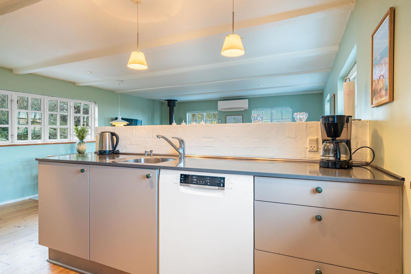 De resterende værelser ligger på 1. salen – Et værelse med dobbeltseng og et med to enkeltsenge. På 1. salen er der tænkt på børnefamilierne – her vil du opleve en lille legende oase med TV-stue, et legekøkken og et lille dukkehus. Perfekt sted til en masse leg i børnehøjde.