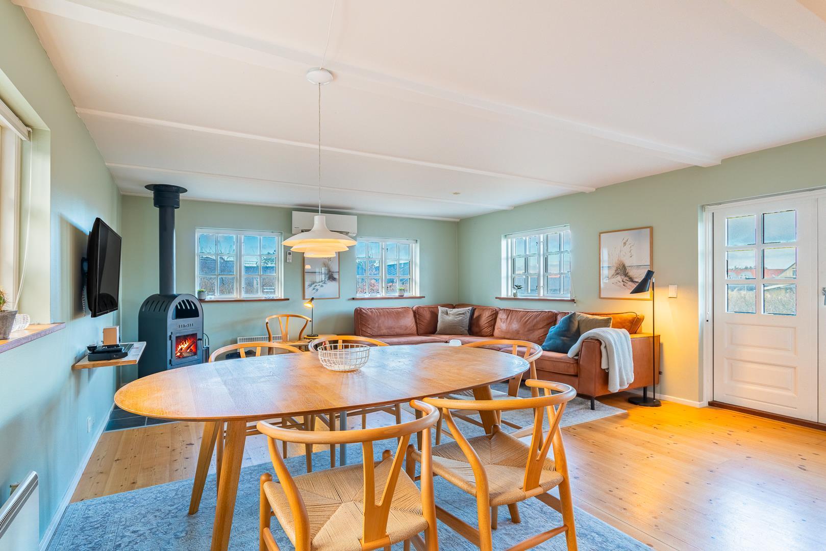 Oplev dette super hyggelige sommerhus i Henne Strand – her kan du ikke undgå at komme i feriestemning. Dette hyggelige feriehus har plads til 6 personer, og byder bl.a. på en dejlig stor stue med spisebord til 6 personer i åben forbindelse med køkkenet. Det betyder, at du kan du være en del af hyggen selvom du står for madlavningen.