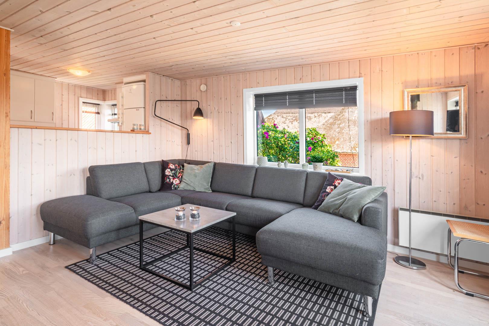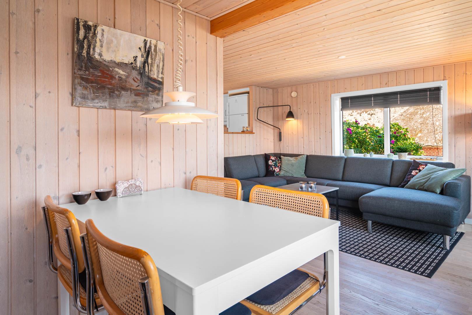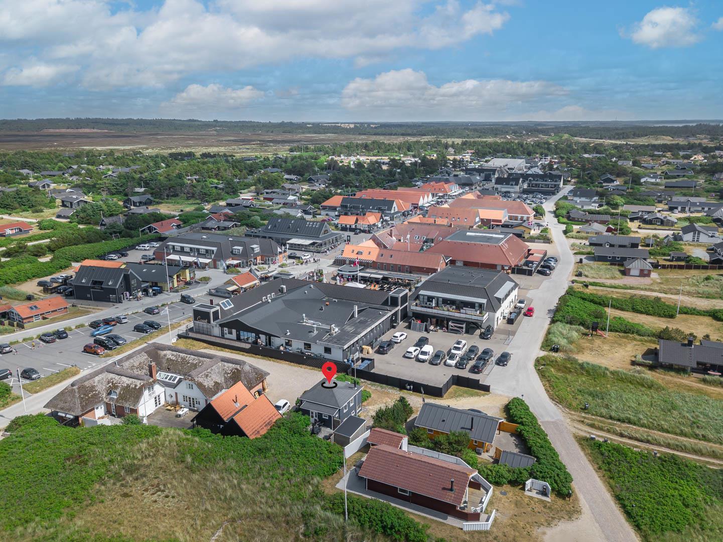 Huset ligger ugenert men alligevel tæt på Strandgårdens torv, restauranter og indkøb. Kun 200 meter til en af Danmarks dejligste badestrande.