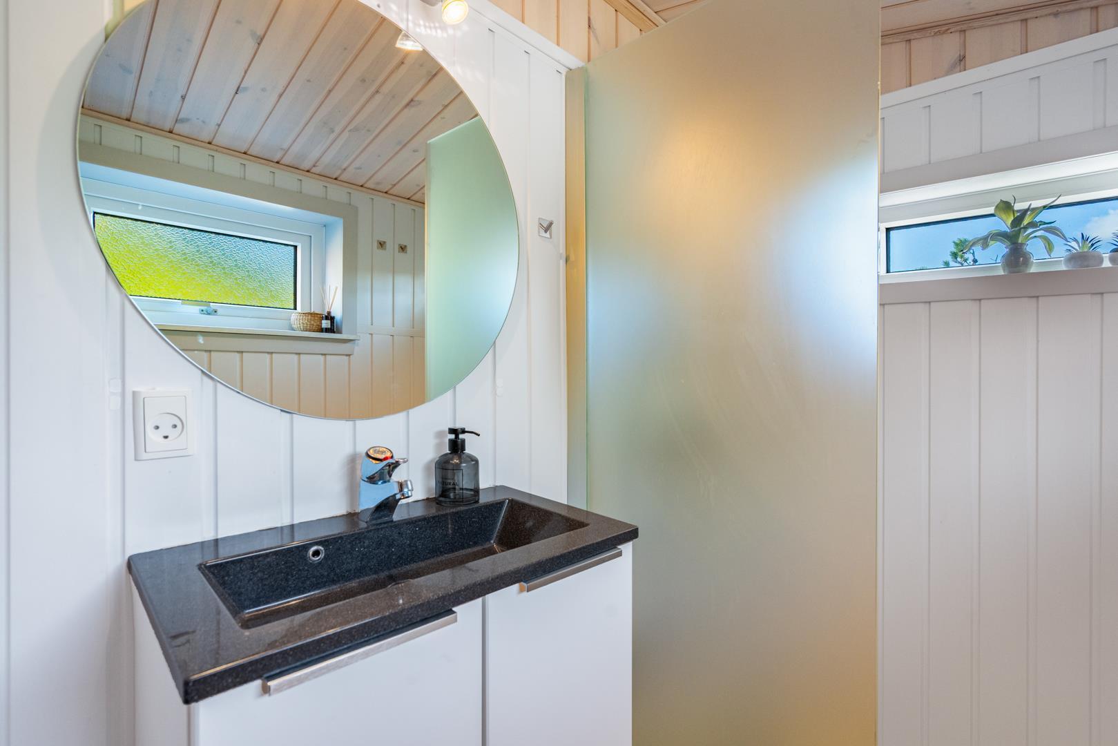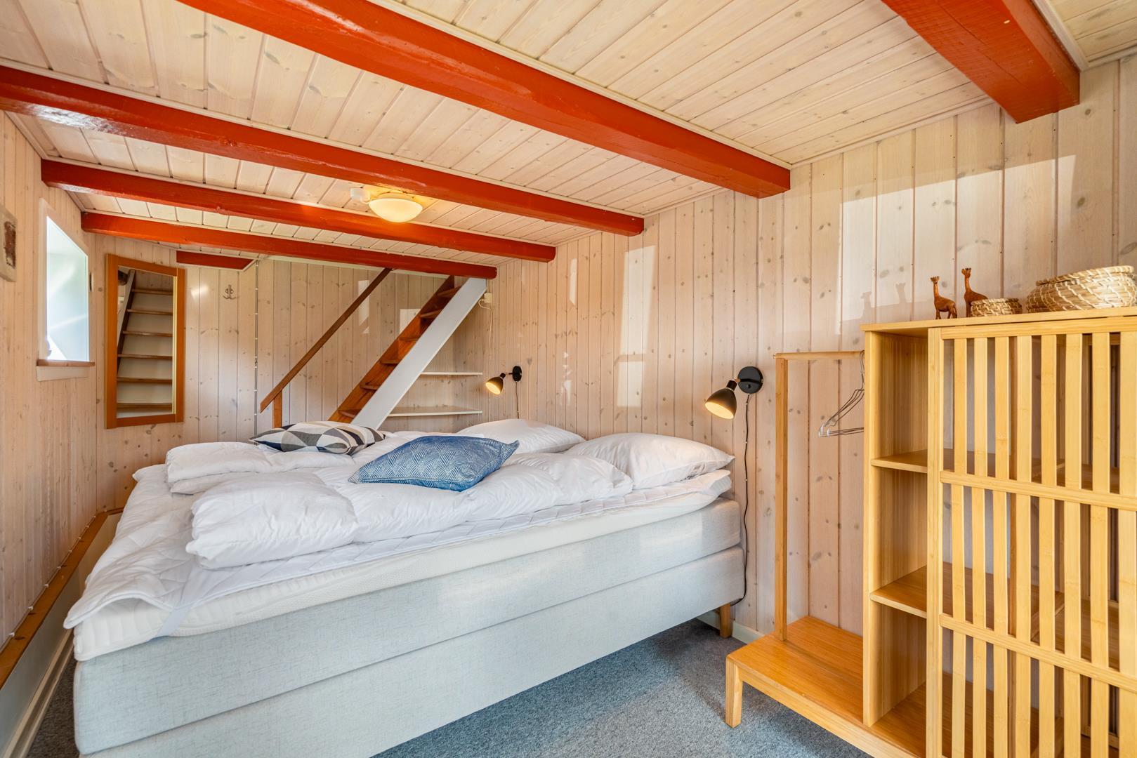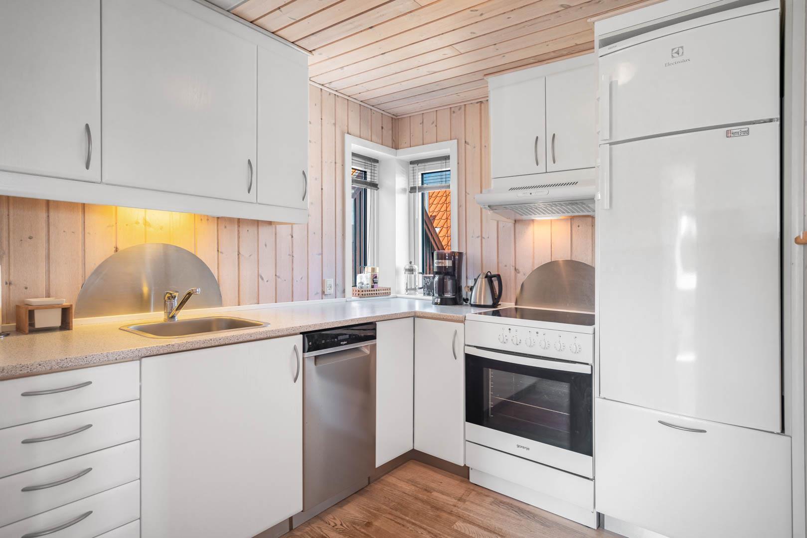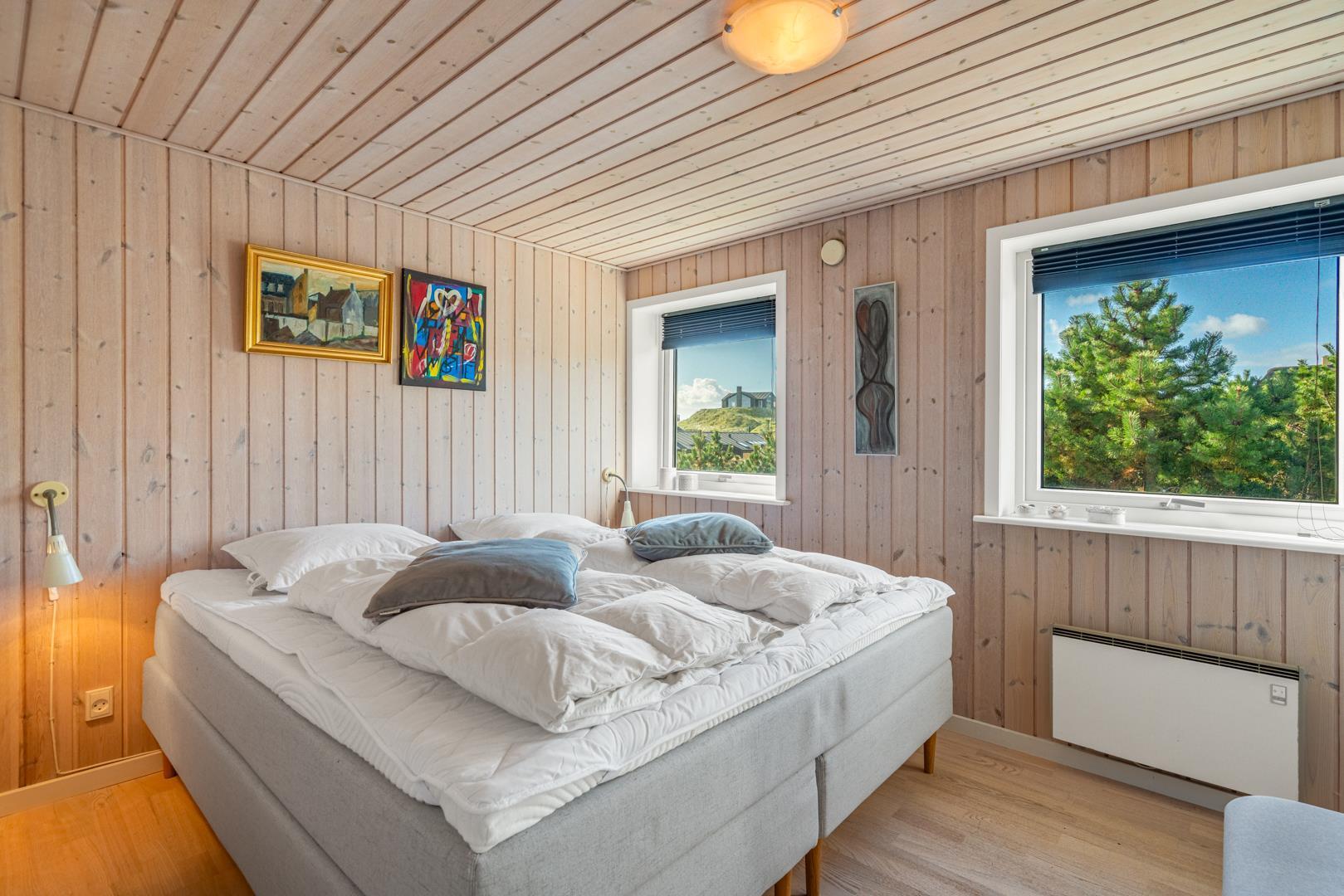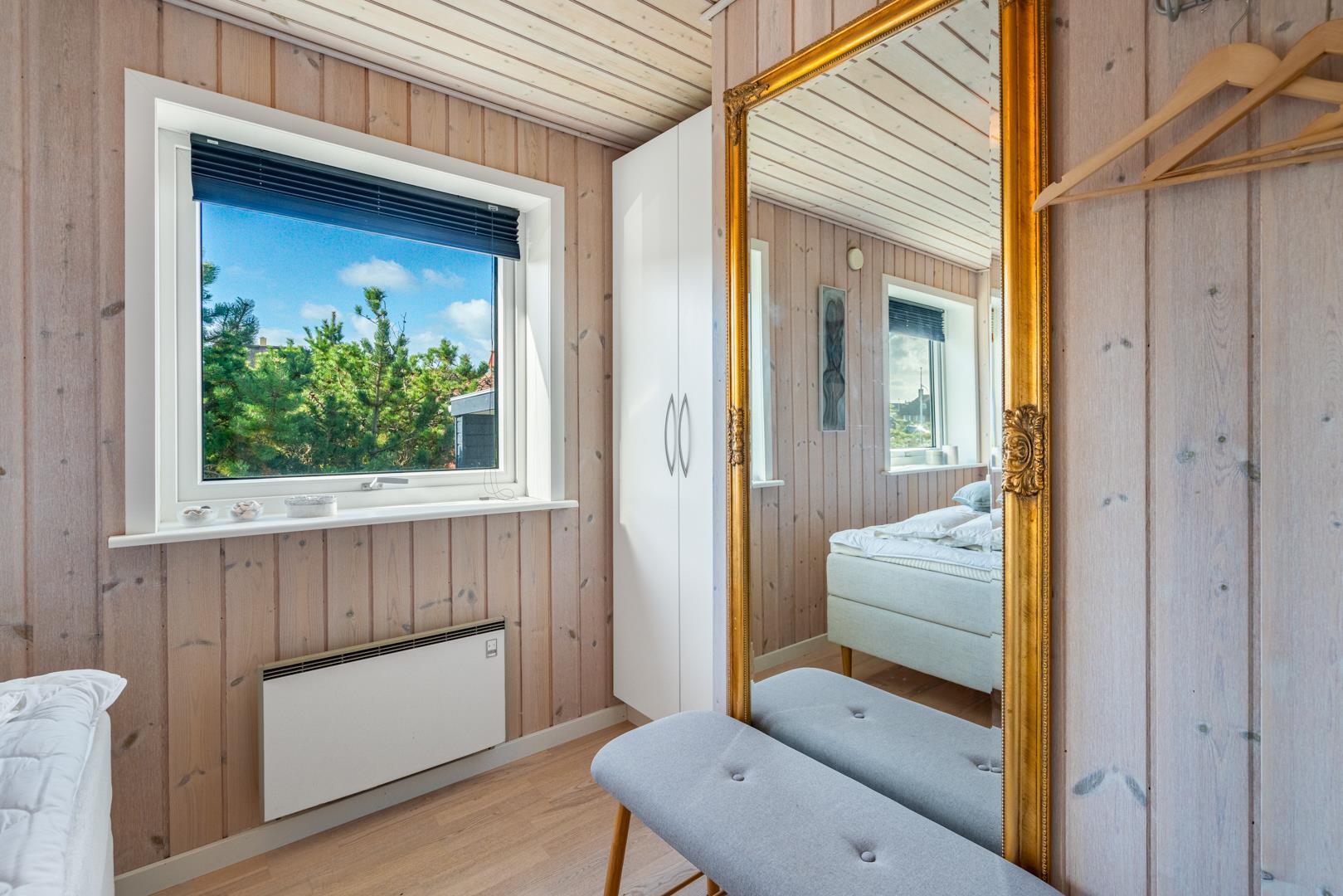 En charmerende perle, centralt beliggende i Henne Strand. Sommerhuset fremstår overalt lyst og venligt. Huset er indrettet med køkken- alrum, stue med brændeovn, bad og soverum i 1. plan.Fra stuen skøn udsigt over klitter og Henne Strand. I underetagen er der et soveværelse med udgang til terrasse. Der er mulighed for opkobling til Chromecast, desuden er der en bluetooth højtaler til rådighed.