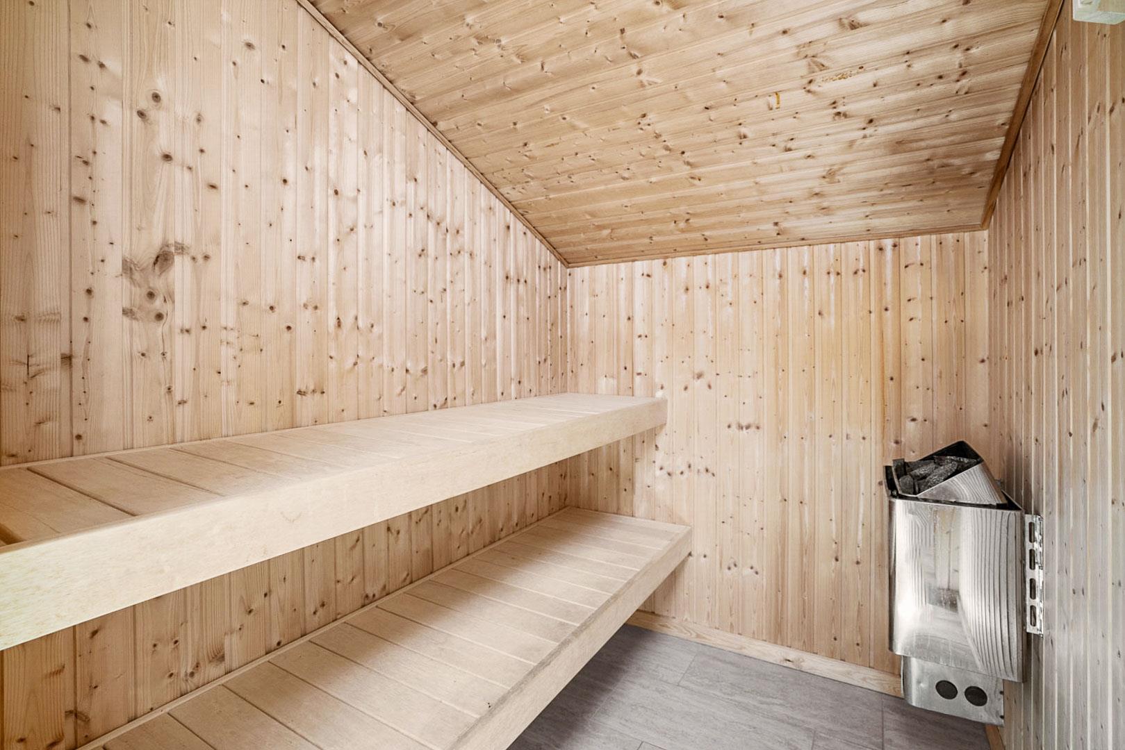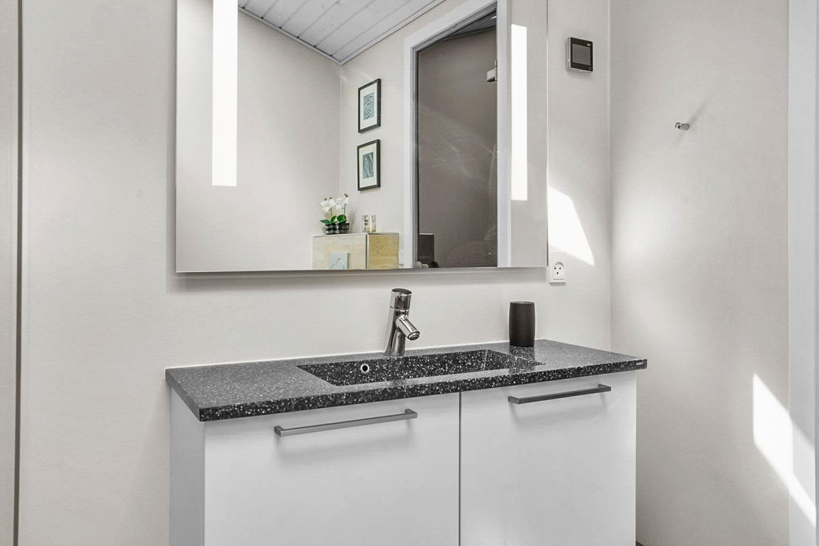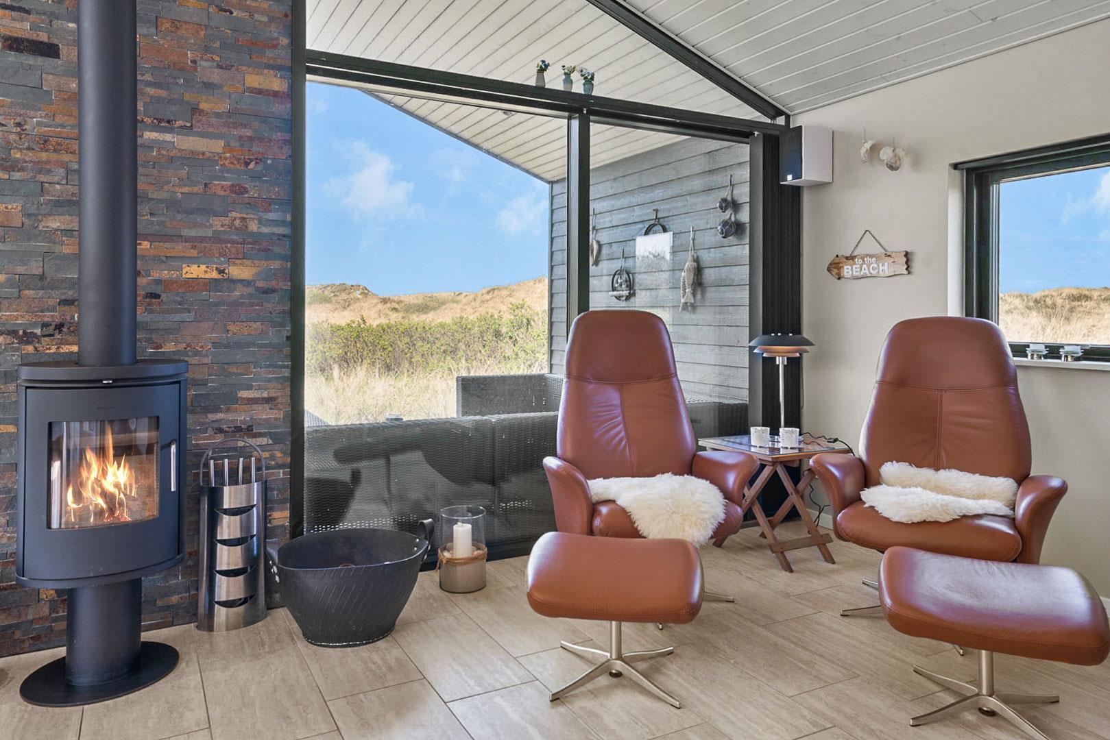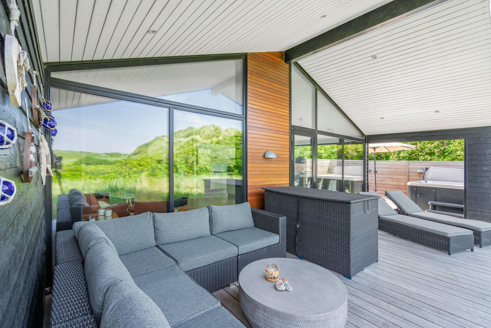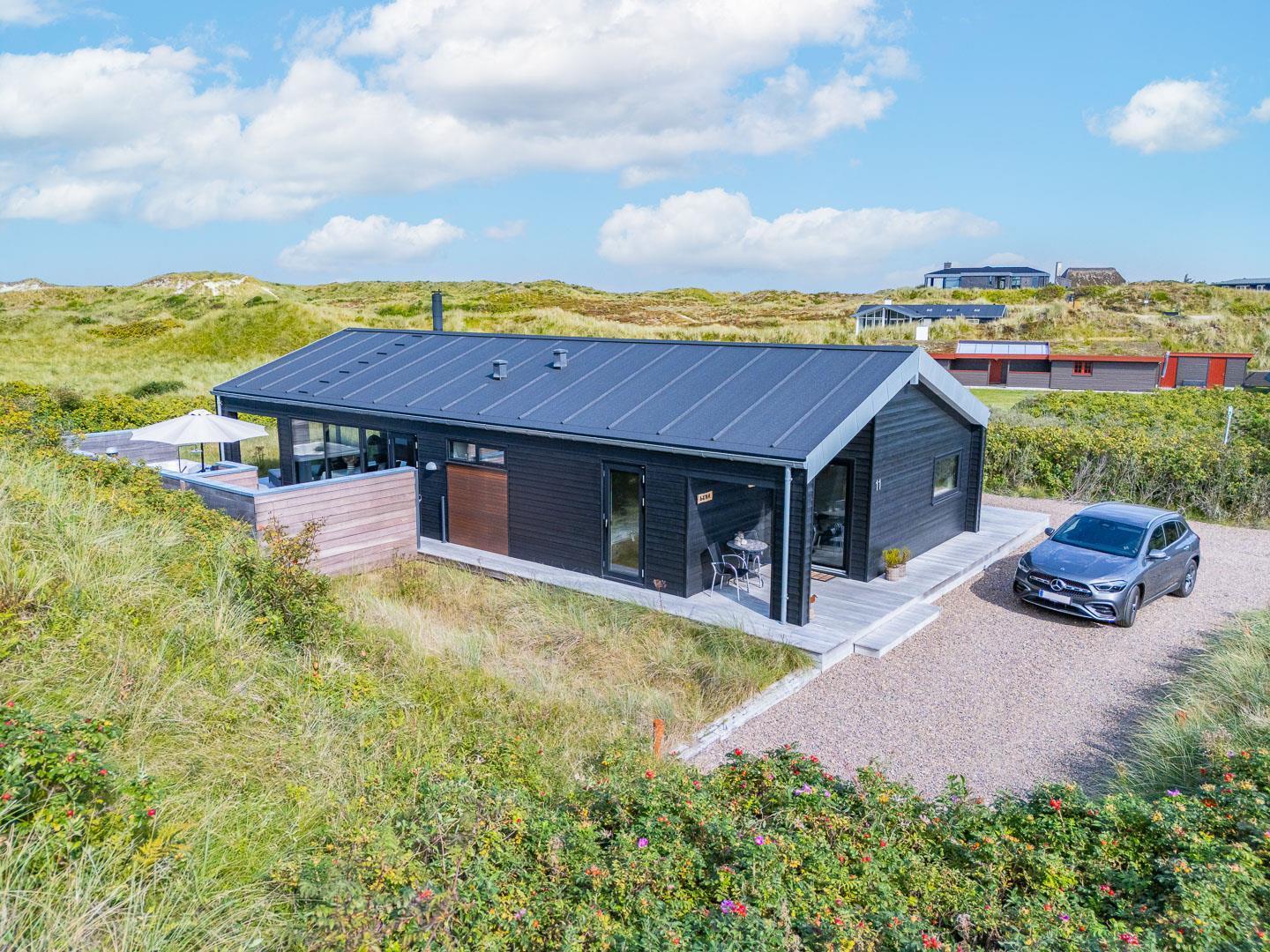 Det sorte træhus prydes af en skøn og delvist overdækket terrasse med en gode lækroge, perfekt til at nyde solrige dage og milde sommeraftener. Her finder du også en skøn udespa, udebruser og udekøkken, der fuldender udendørsoplevelsen. (Bemærk: Vandet til udekøkkenet og udebruseren er lukket fra uge 44 til uge 18).
