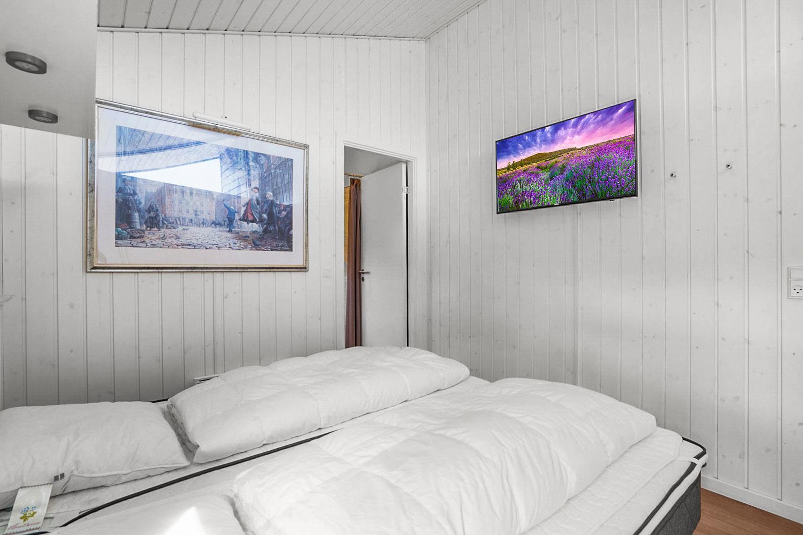 Inde i sommerhuset mødes du af en åben planløsning, hvor en hyggelig brændeovn spreder varme og sommerhusstemning til både stuen og køkkenet, der er i fuld forbindelse med hinanden. Dette gør det muligt for dig at være en del af familiens hygge, uanset om du tilbereder lækre måltider eller slapper af med en god bog i stuen.