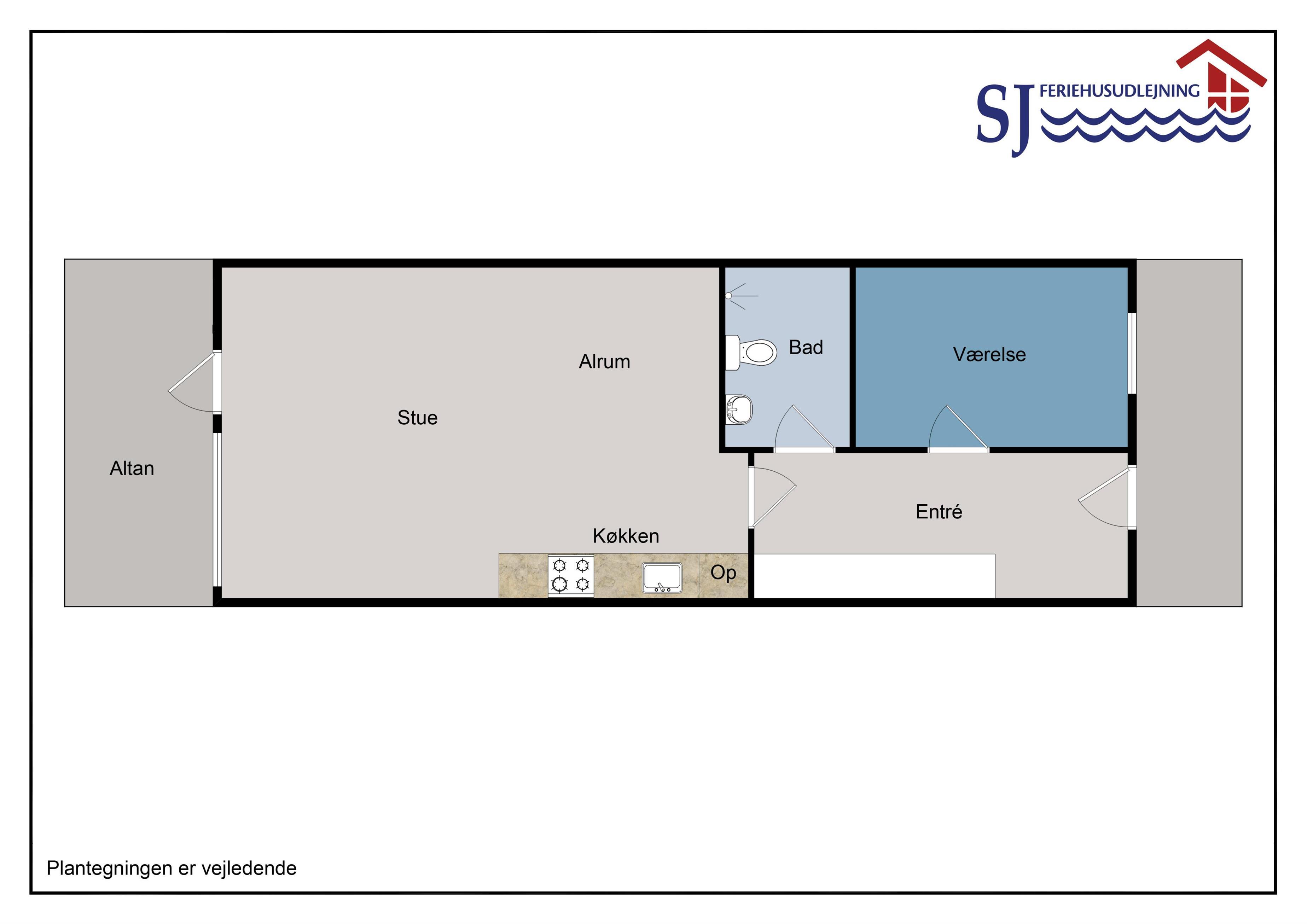 Pæn ferielejlighed til 2 personer beliggende på 1. sal med kombineret køkken og stue. Stuen er indrettet med polstermøbler, kabel-TV og gulvtæppe. Køkken med el-keramisk plade, lille opvaskemaskine, lille miniovn, køleskab med 10 l frostboks, emhætte. 1 soverum: 1DS + 1S og gulvtæppe. Badeværelse med toilet, håndvask og bruser. Fra stuen er der udgang til en lille delvis overdækket balkon med havemøbler. Trappen til 1. sal består af 21 trappetrin.
