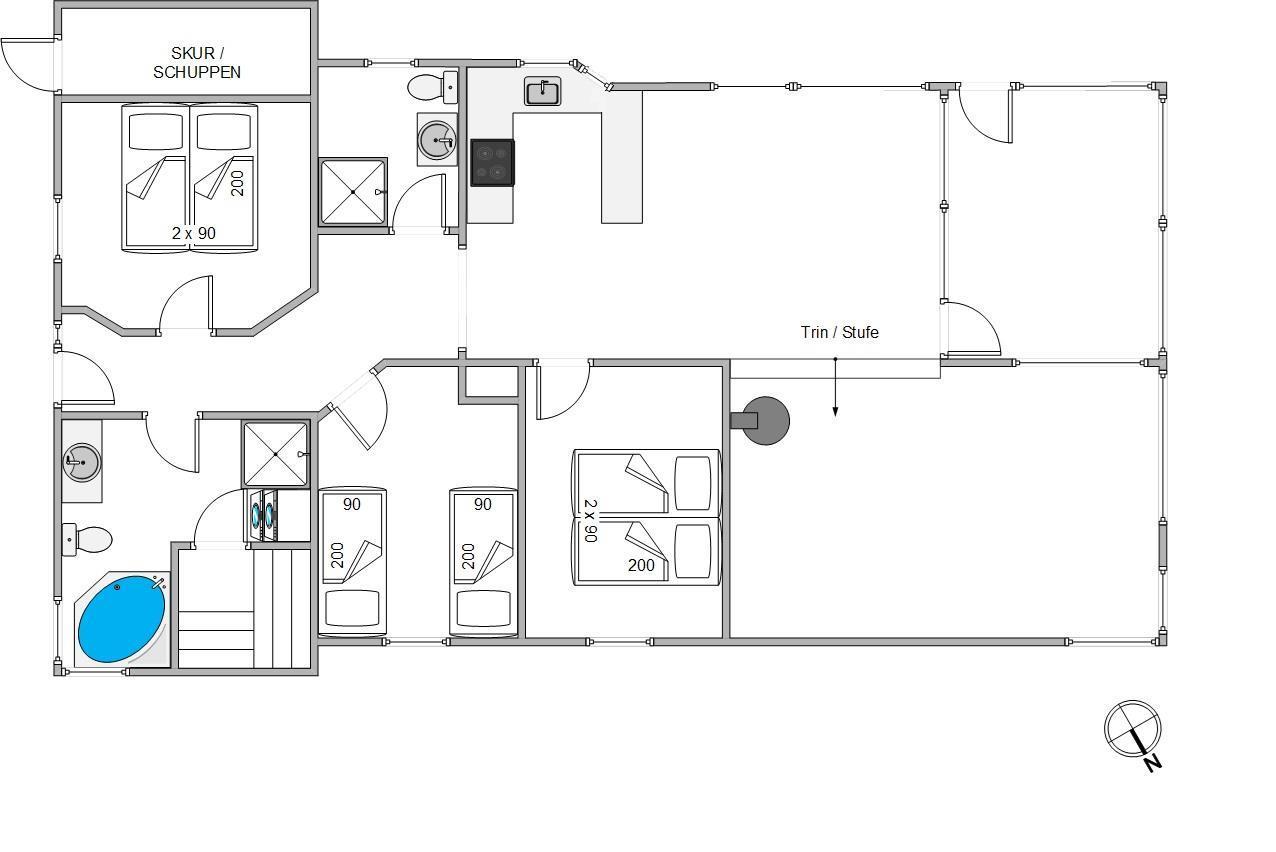 Der er 2 badeværelser med gulvvarme i sommerhuset samt vaskemaskine og tørretumbler, så I kan få frisket håndklæderne op i løbet af ferien. I forbindelse med det store badeværelse er også spabad og sauna, så I kan arrangere jeres egen lille wellnessaften. I de 3 soveværelser er 6 komfortable senge. I 2 soveværelser er de stillet sammen som dobbeltsenge, og i det tredje soveværelse står de enkeltvis, så I kan arrangere jer, som det passer jer bedst. Der er en energibesparende varmepumpe i sommerhuset, så I hele tiden kan have en behagelig varme under opholdet. Slutrengøringen behøver I ikke at bekymre jer om, da den er inkluderet i prisen.
