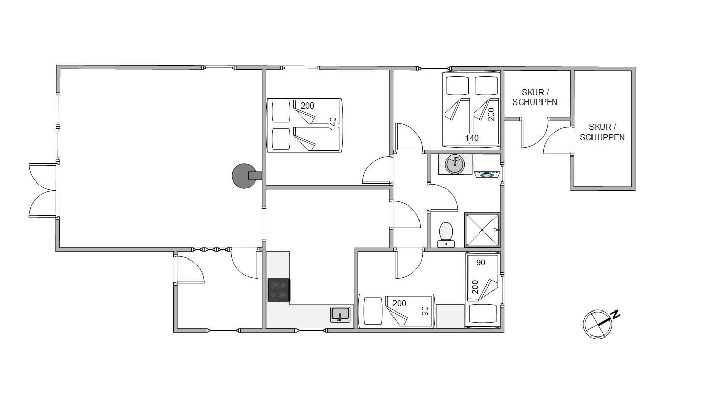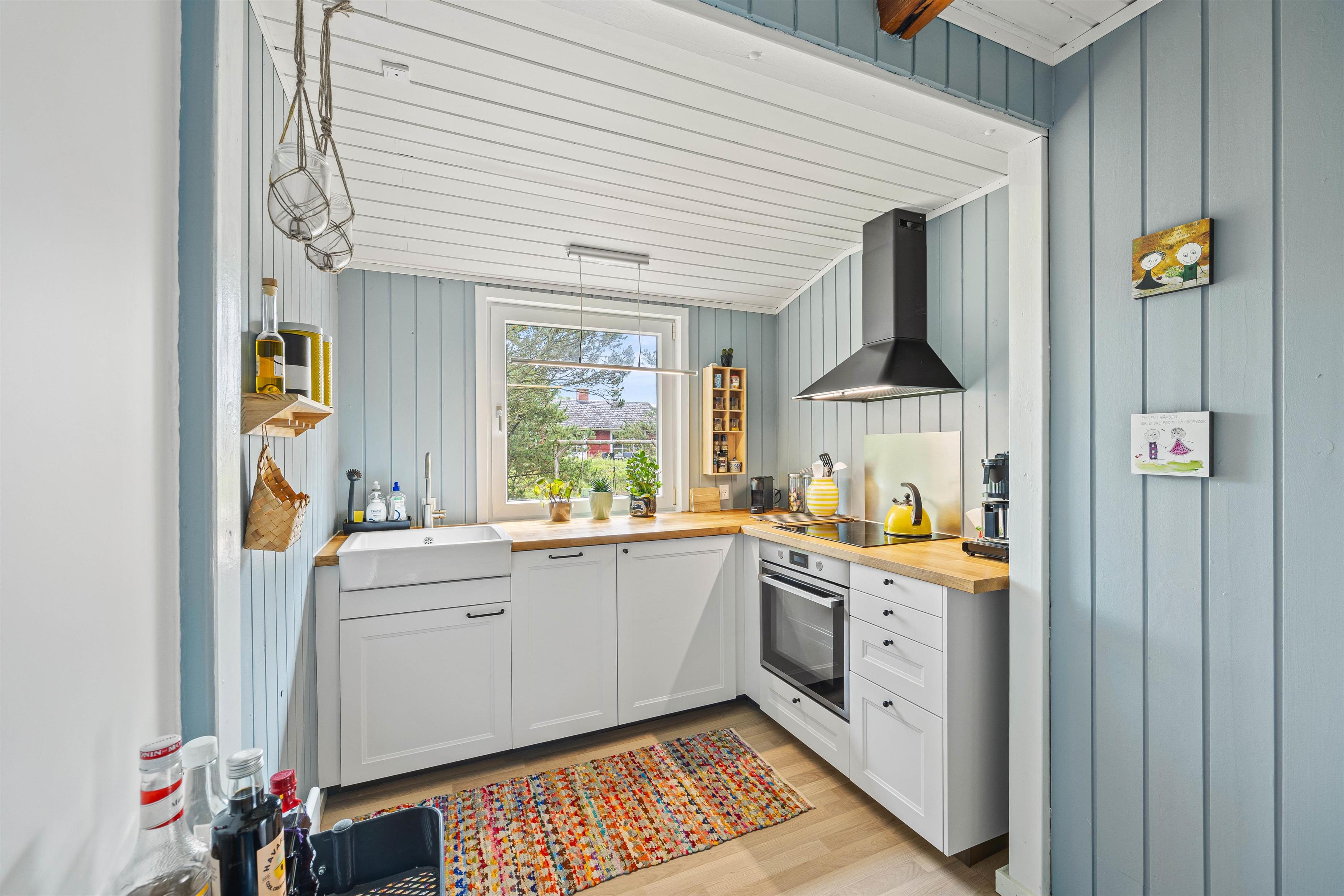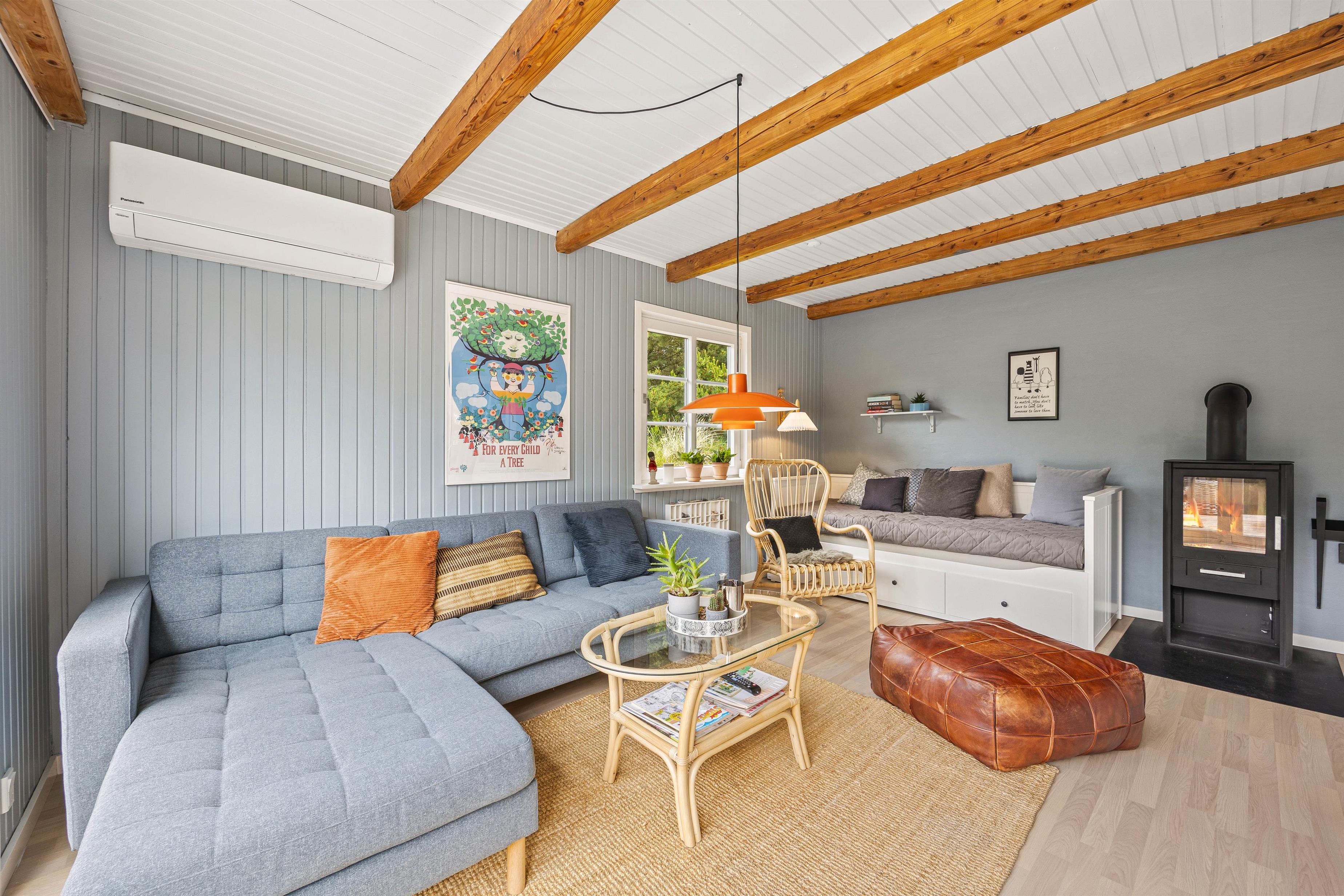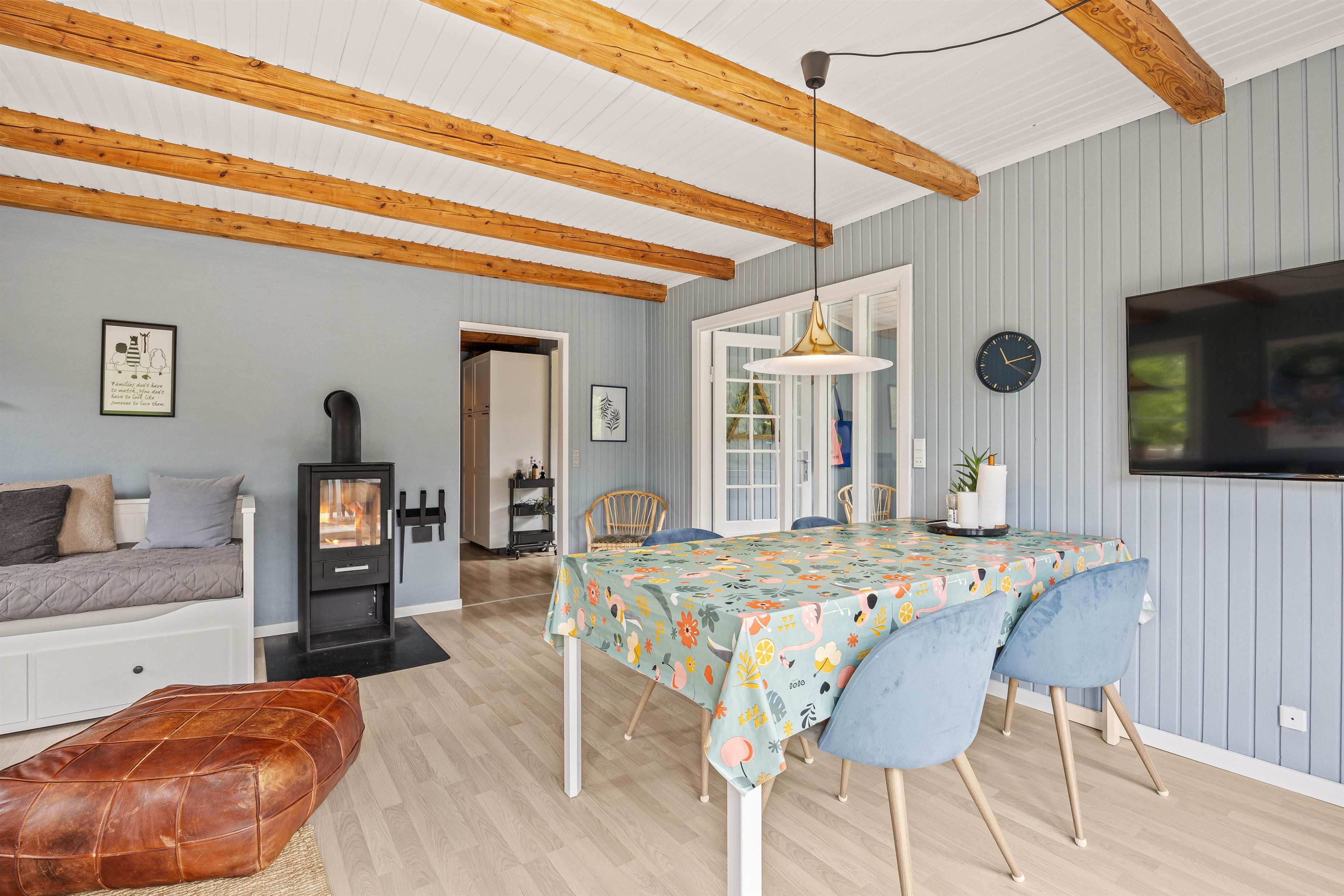 Atmosfæren er både indbydende og afstressende, og I vil hurtigt føle jer som hjemme, når I træder ind ad døren. Inde i sommerhuset er der en hyggelig stue, hvor I alle kan samles om den knitrende brændeovn, som skaber en dejlig stemning på kølige aftener. I stuen er der rigeligt med plads til alle, hvor I kan nyde en god bog, spille spil eller bare hygge jer sammen. Og hvis I har en firbenet ven, skal I ikke bekymre jer; det er tilladt at have én hund med, og hele familien kan tage af sted på ferie uden at efterlade nogen hjemme.