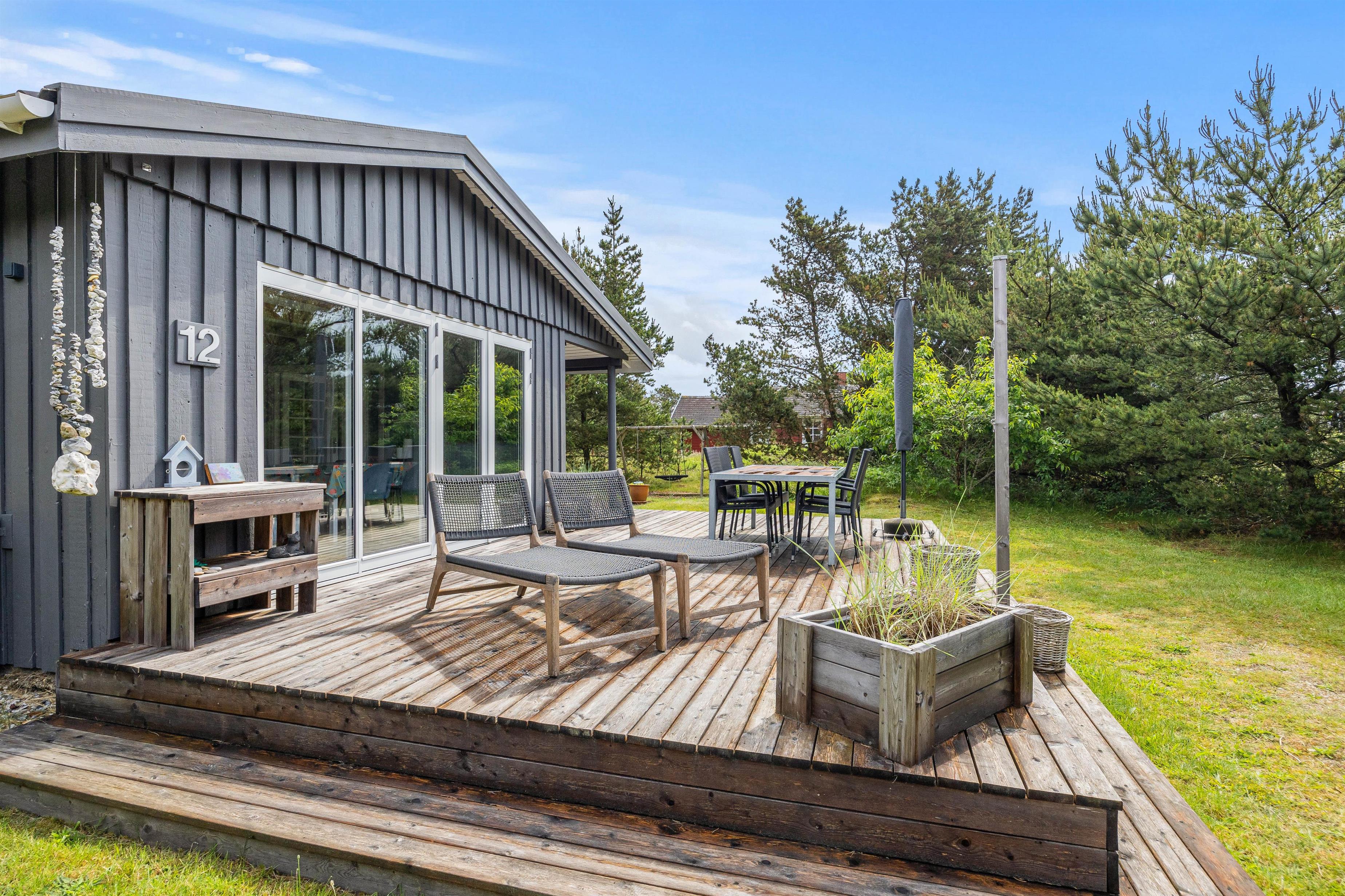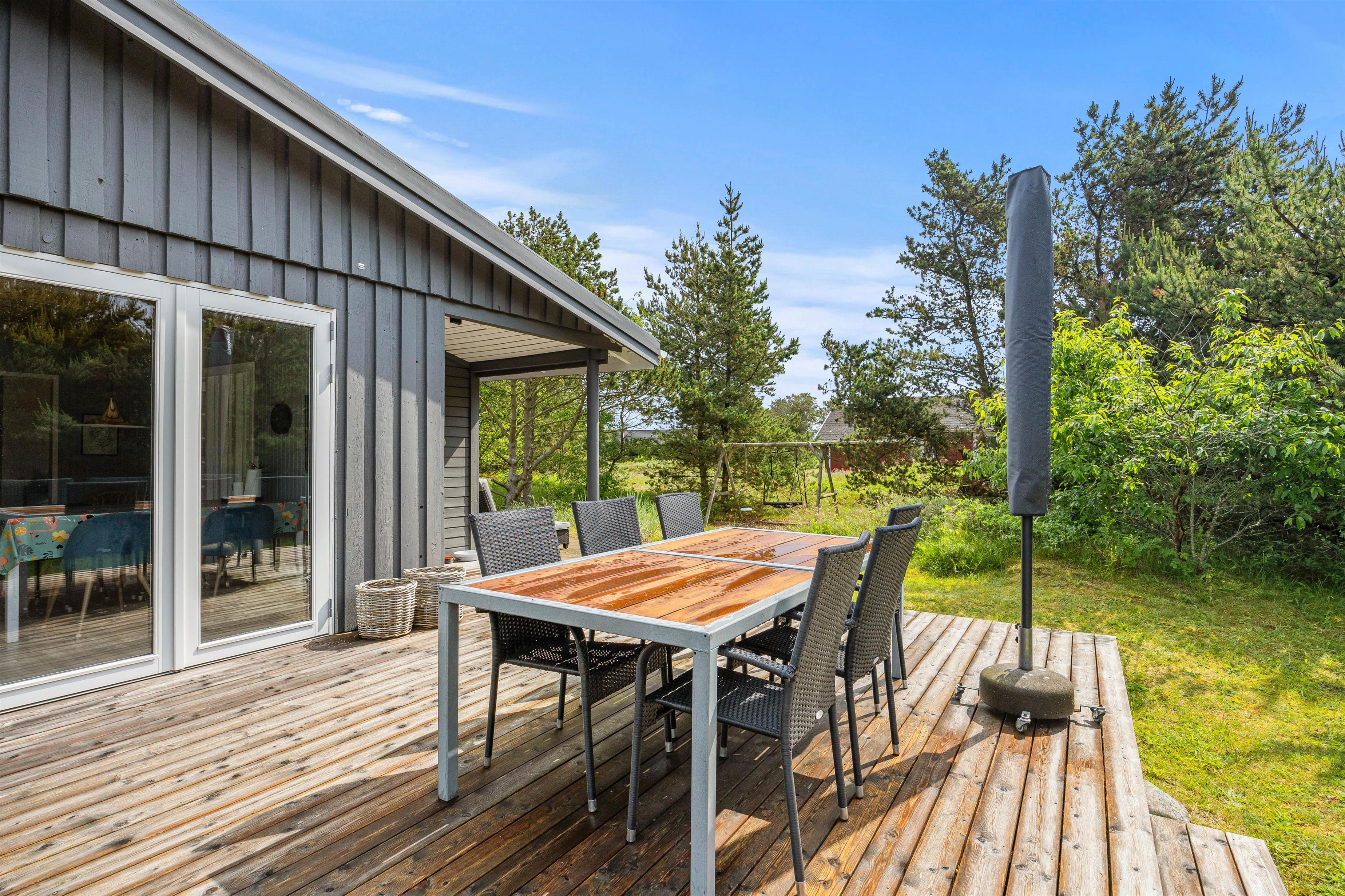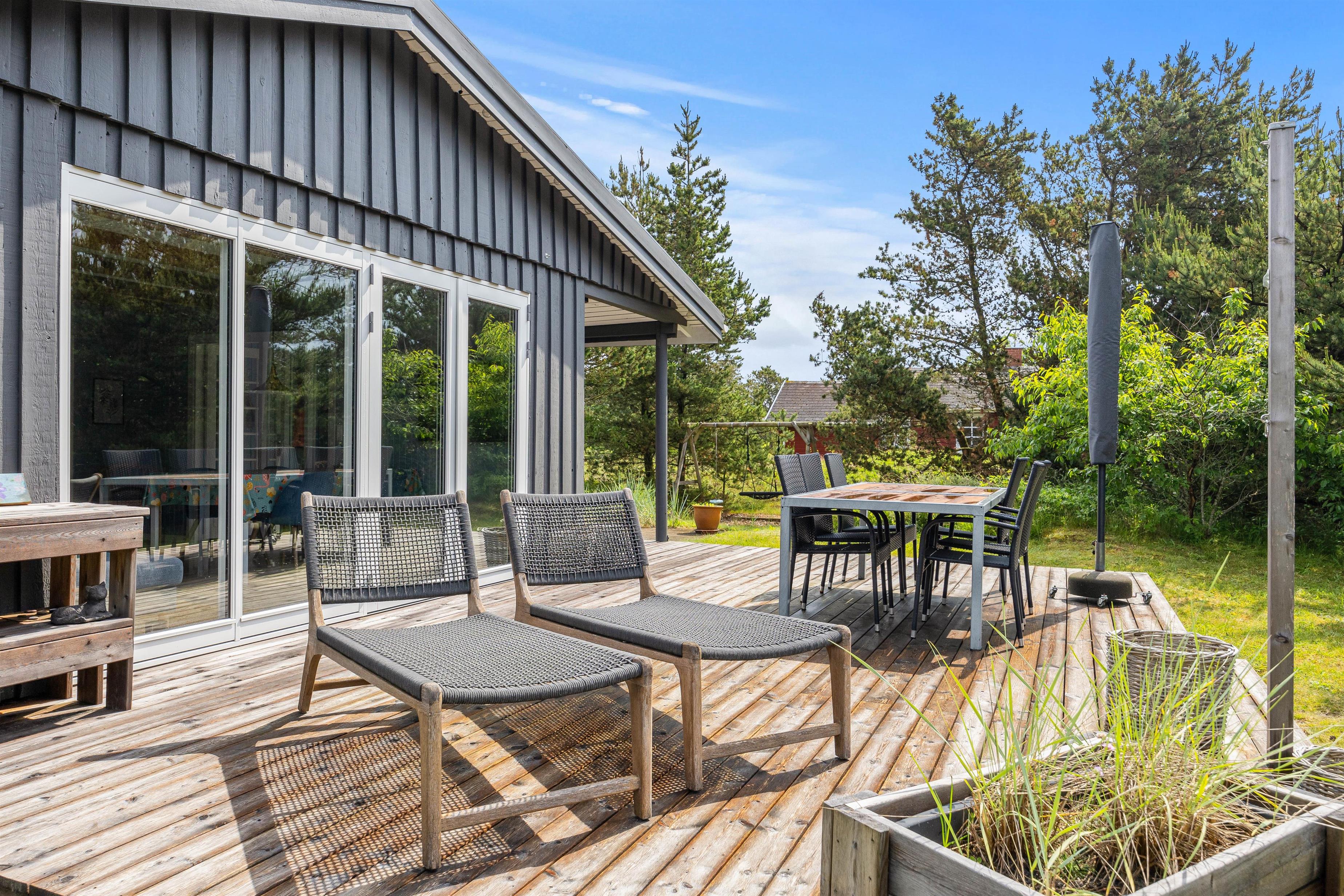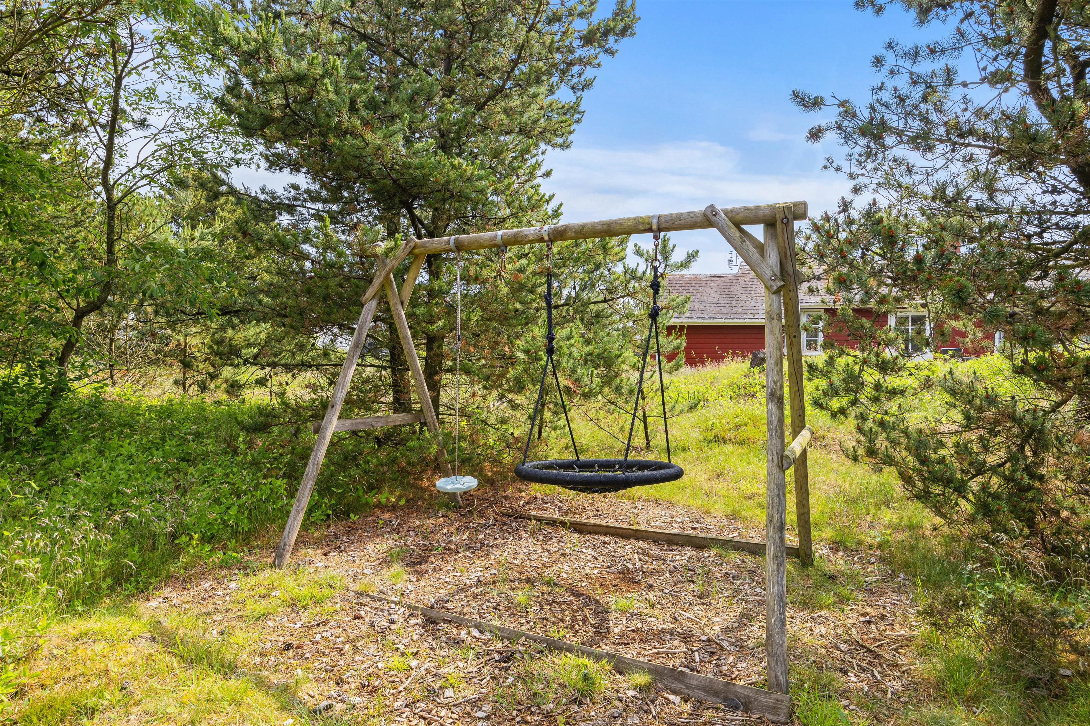 Sommerhuset ligger blot 800 meter fra det skønne Vesterhav og 700 meter fra indkøb, hvilket giver jer nem adgang til både strandture og daglige fornødenheder. På sommerhusets grund kan børnene more sig på gyngen, mens I slapper af på havemøblerne på terrassen. Den omkringliggende naturgrund inviterer til bare at nyde den friske havluft, roen og freden. Beliggenheden giver jer mulighed for at udforske de naturskønne omgivelser med lethed, hvad enten det er en morgenløbetur langs stranden eller en afslappet eftermiddag med en picnic: her kan I kombinere afslapning med eventyr, alt efter hvad I føler for på jeres ferie.