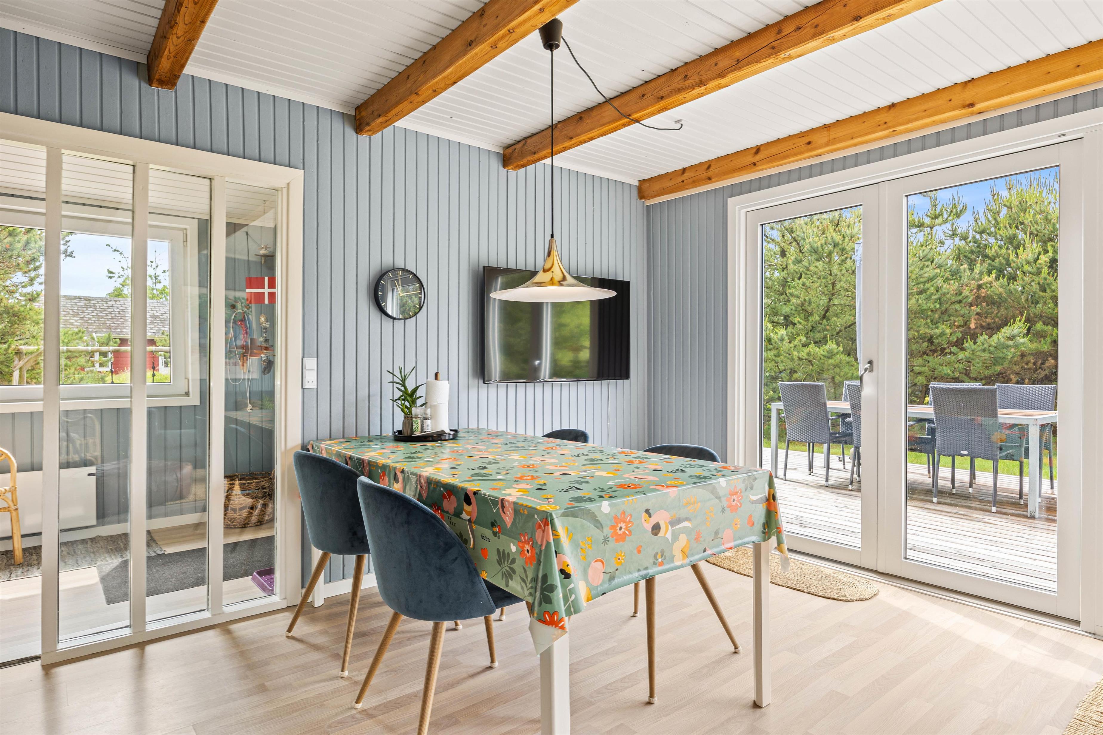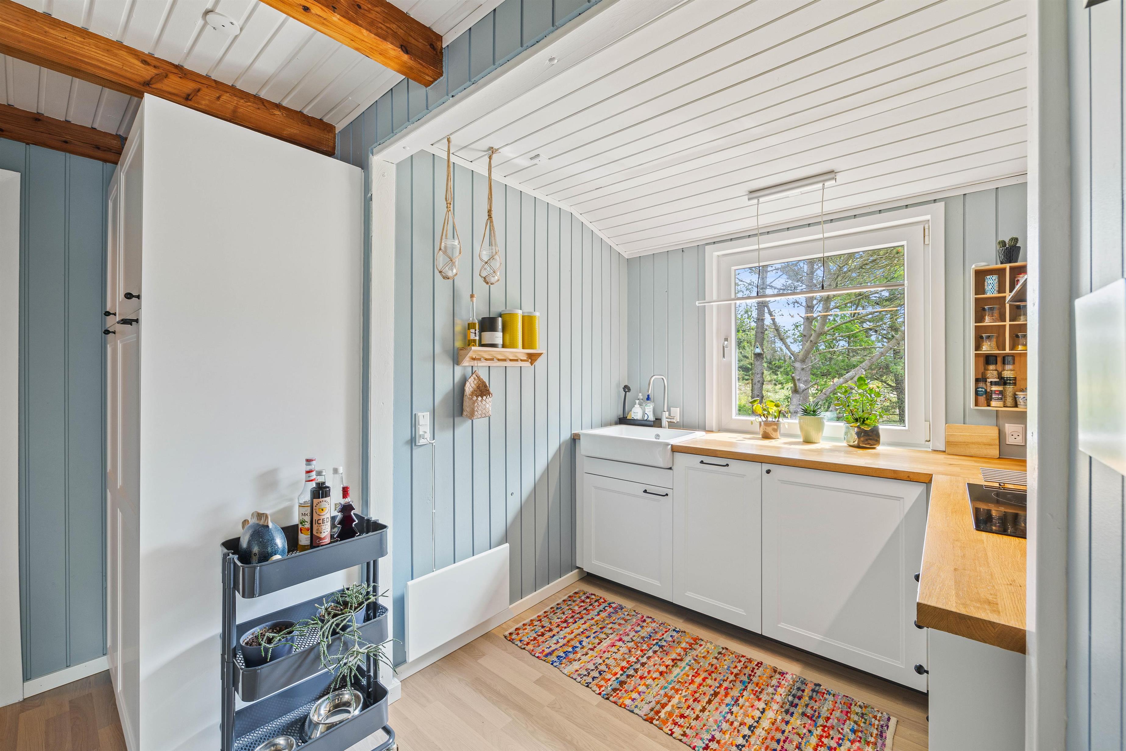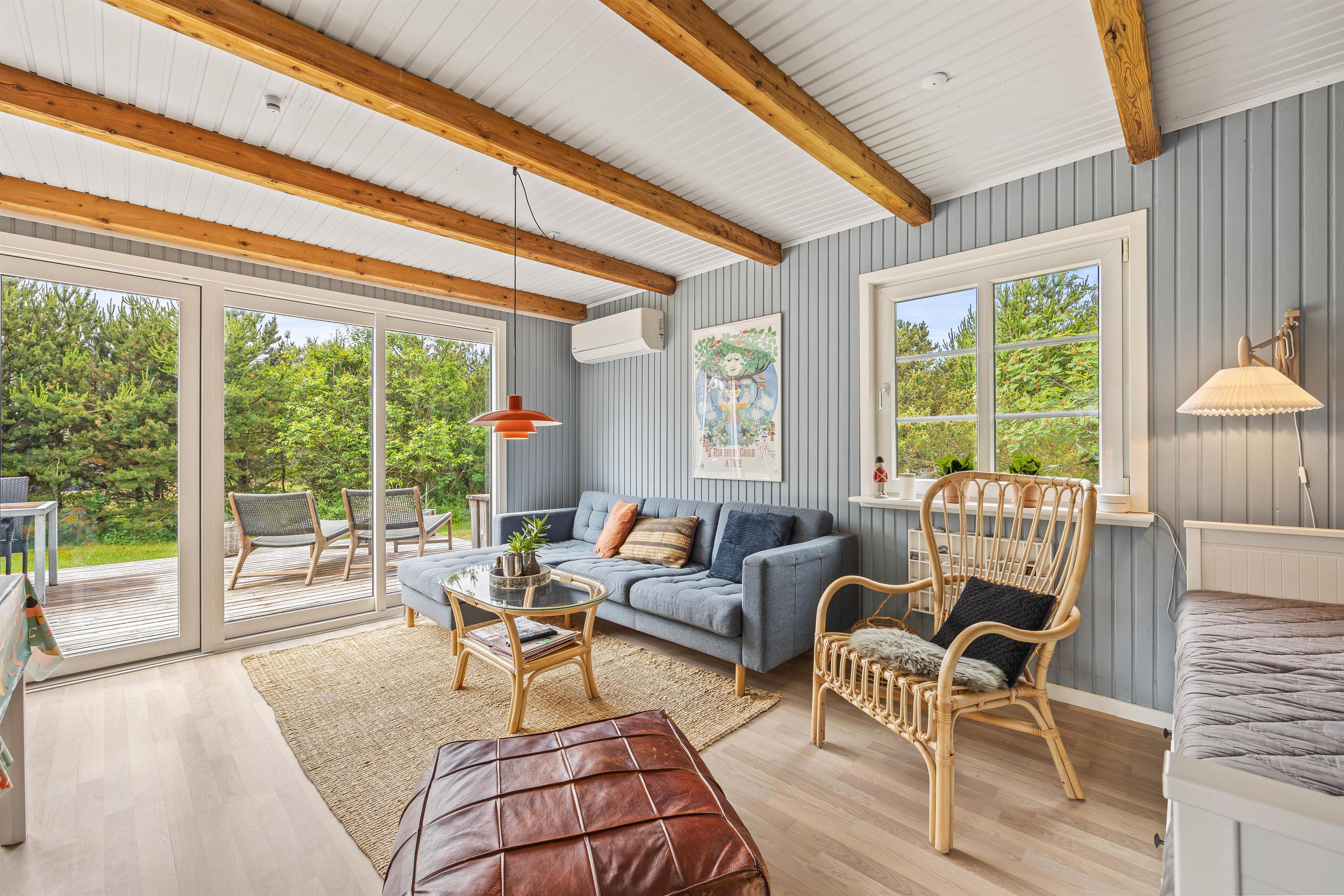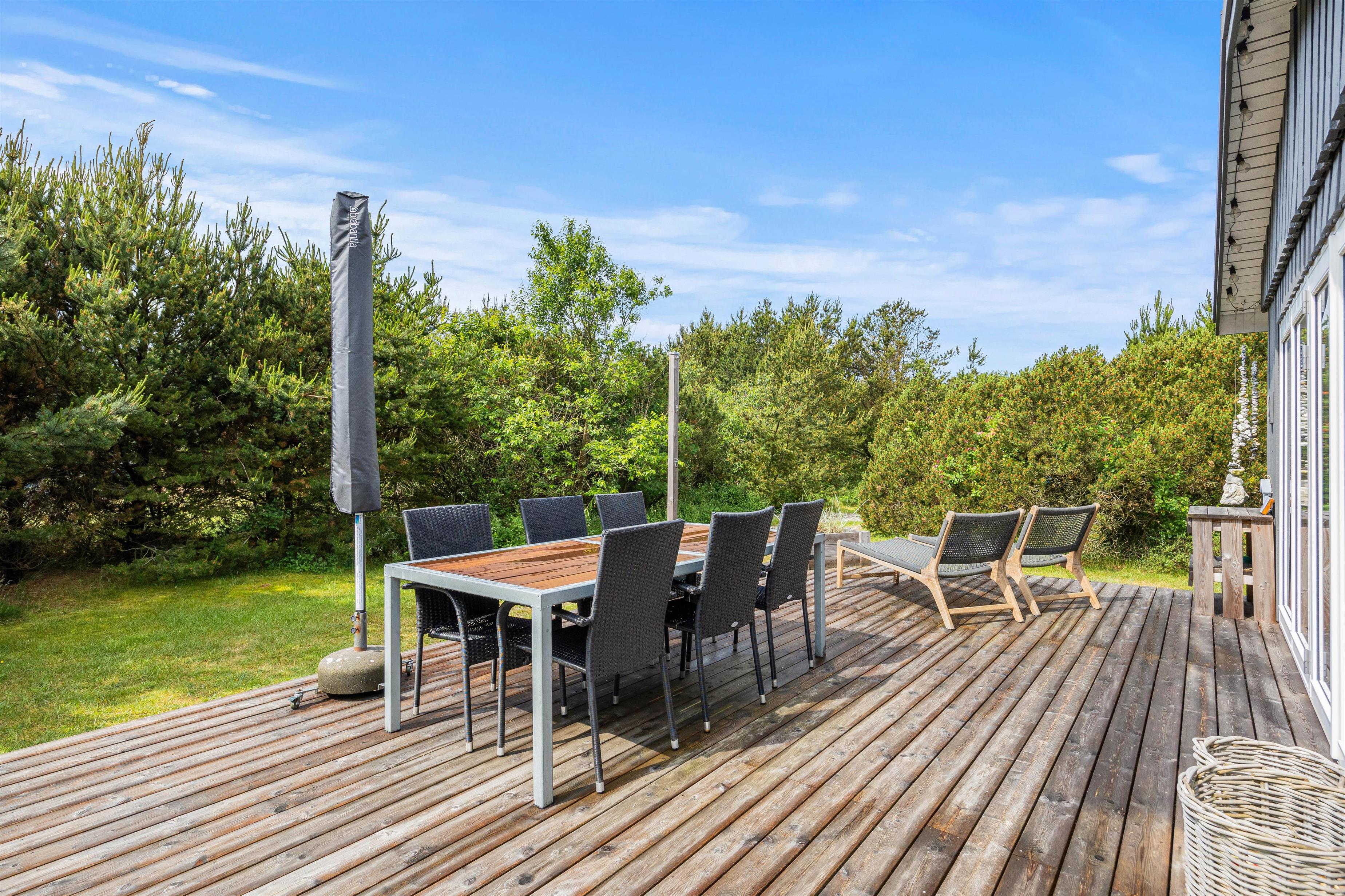 Sommerhuset ligger blot 800 meter fra det skønne Vesterhav og 700 meter fra indkøb, hvilket giver jer nem adgang til både strandture og daglige fornødenheder. På sommerhusets grund kan børnene more sig på gyngen, mens I slapper af på havemøblerne på terrassen. Den omkringliggende naturgrund inviterer til bare at nyde den friske havluft, roen og freden. Beliggenheden giver jer mulighed for at udforske de naturskønne omgivelser med lethed, hvad enten det er en morgenløbetur langs stranden eller en afslappet eftermiddag med en picnic: her kan I kombinere afslapning med eventyr, alt efter hvad I føler for på jeres ferie.