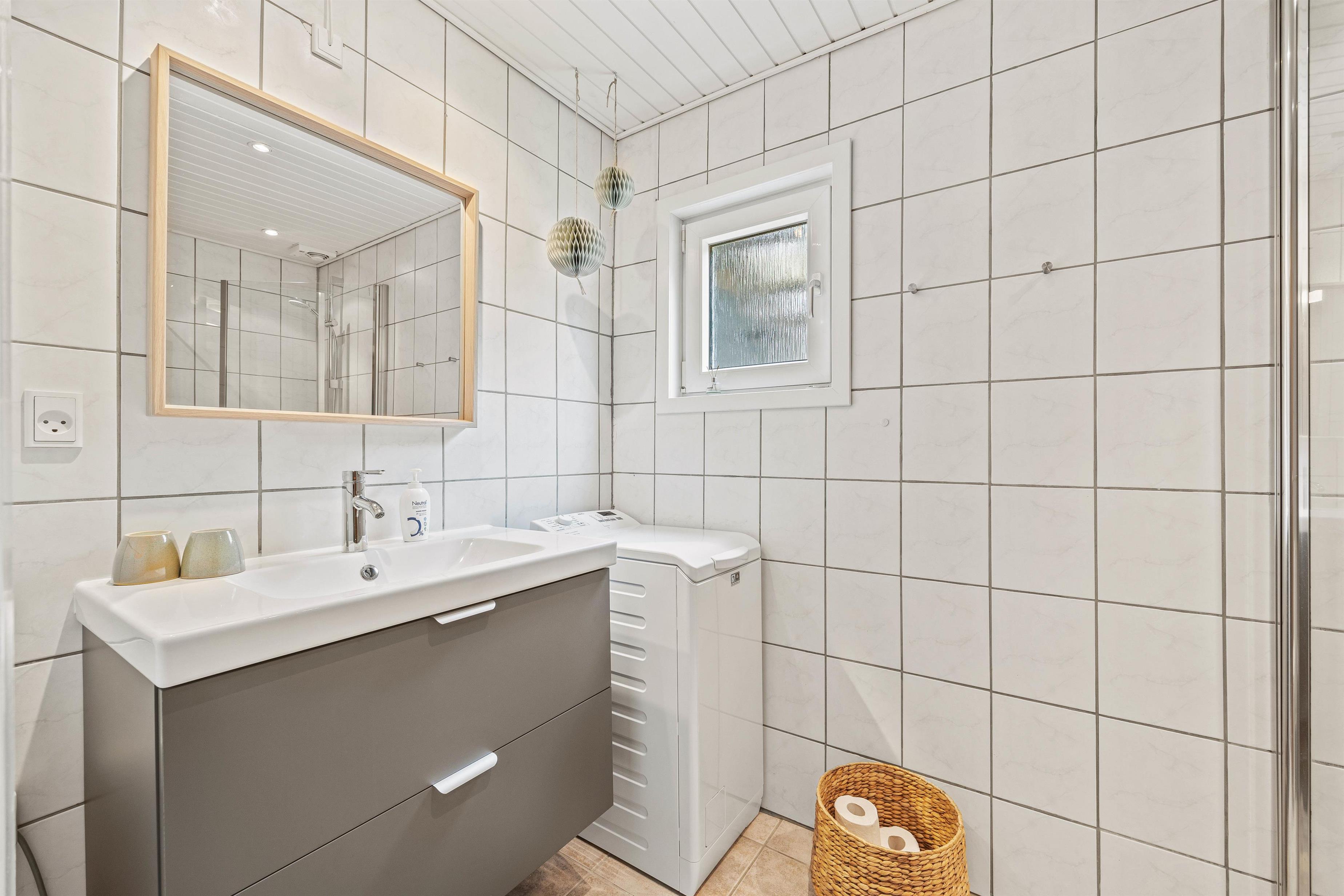Sommerhuset er udstyret med en række praktiske bekvemmeligheder, der vil gøre jeres ophold yderst behageligt. I køkkenet finder I en opvaskemaskine, hvilket gør oprydningen samt opvask let og hurtigt. Der står også en vaskemaskine til rådighed, si I kan få vasket jeres tøj under ferien. En luft til luft varmepumpe sikrer, at I har den ønskede temperatur året rundt, mens gulvvarmen på badeværelset giver ekstra komfort på de køligere dage.
