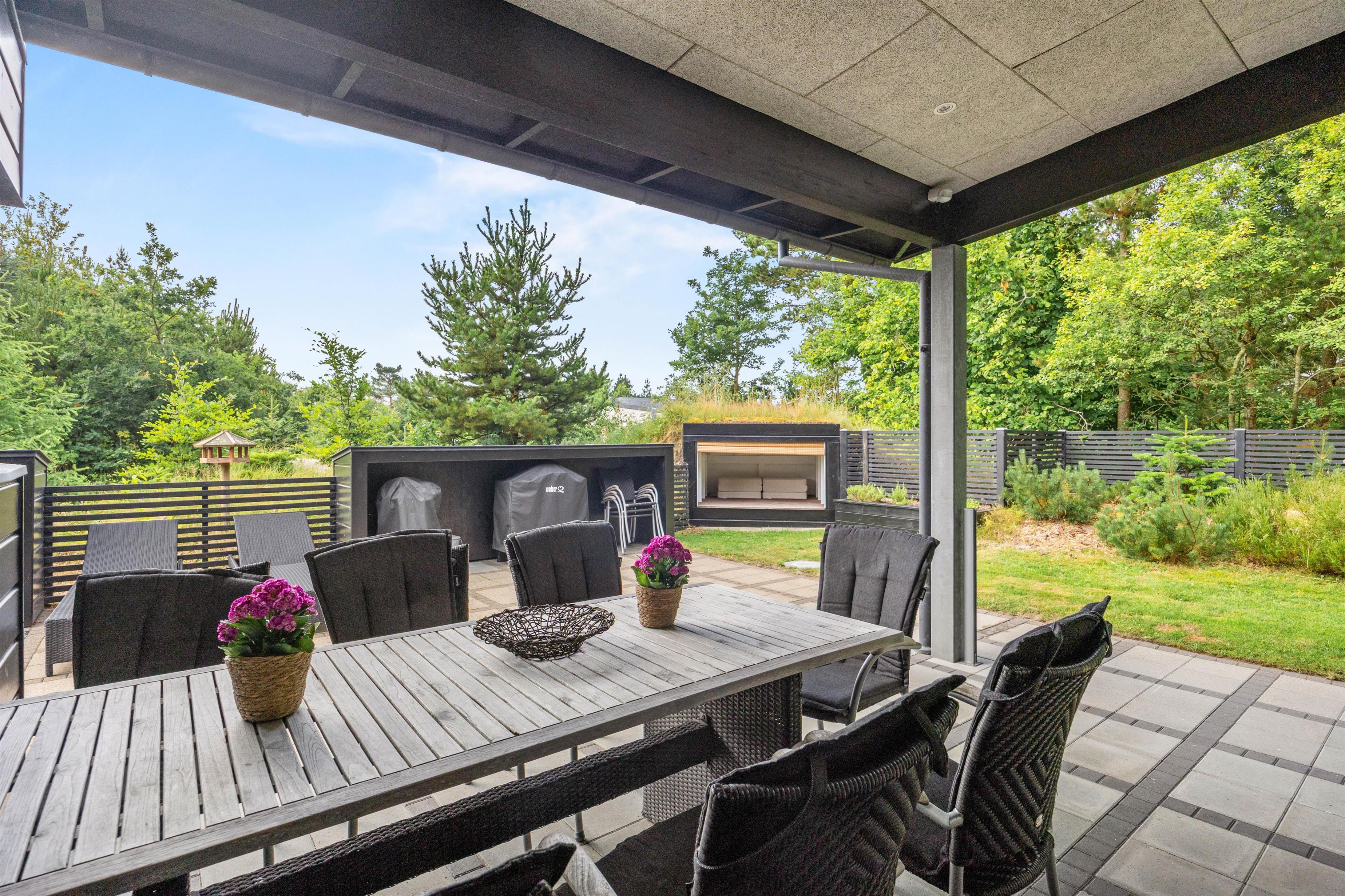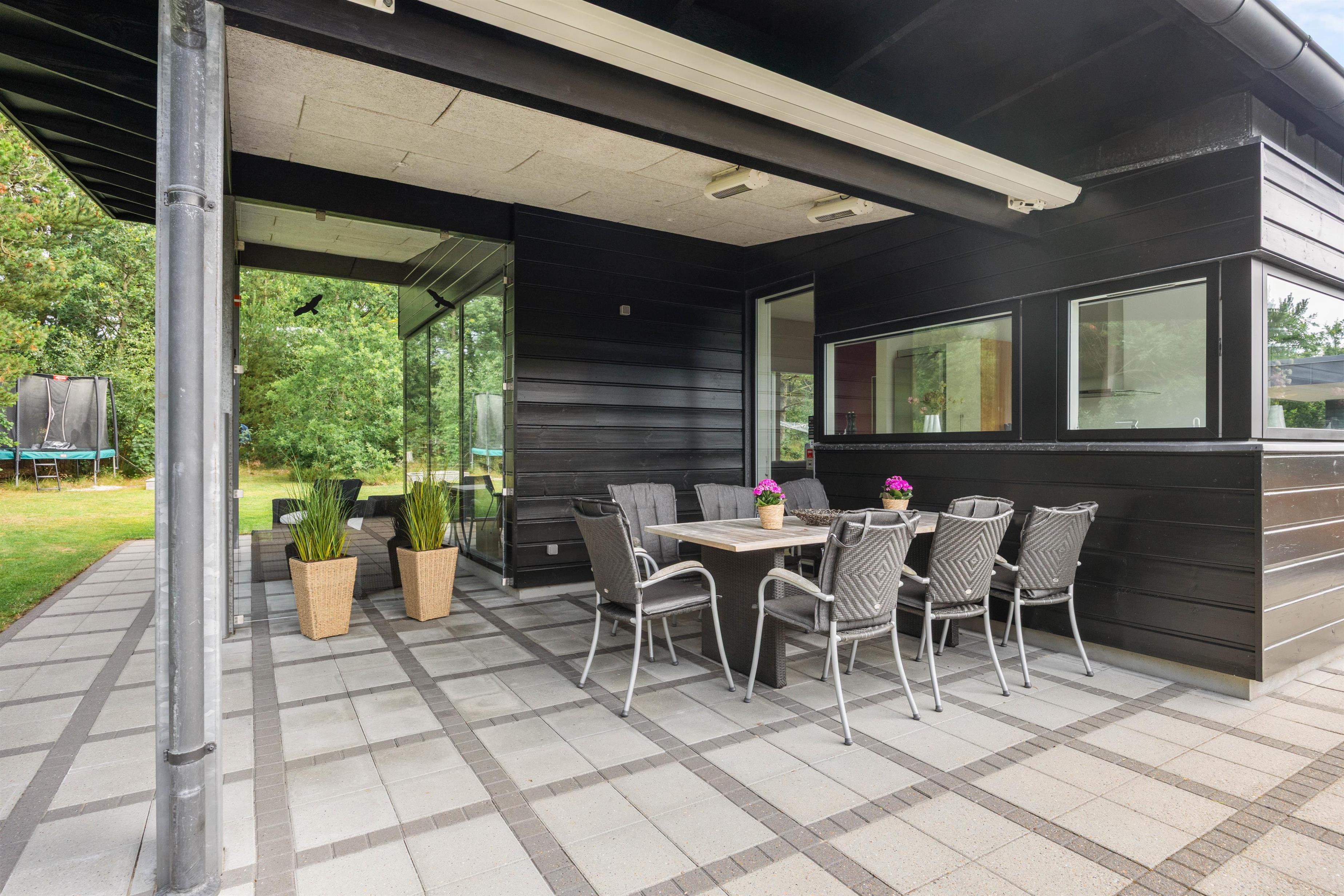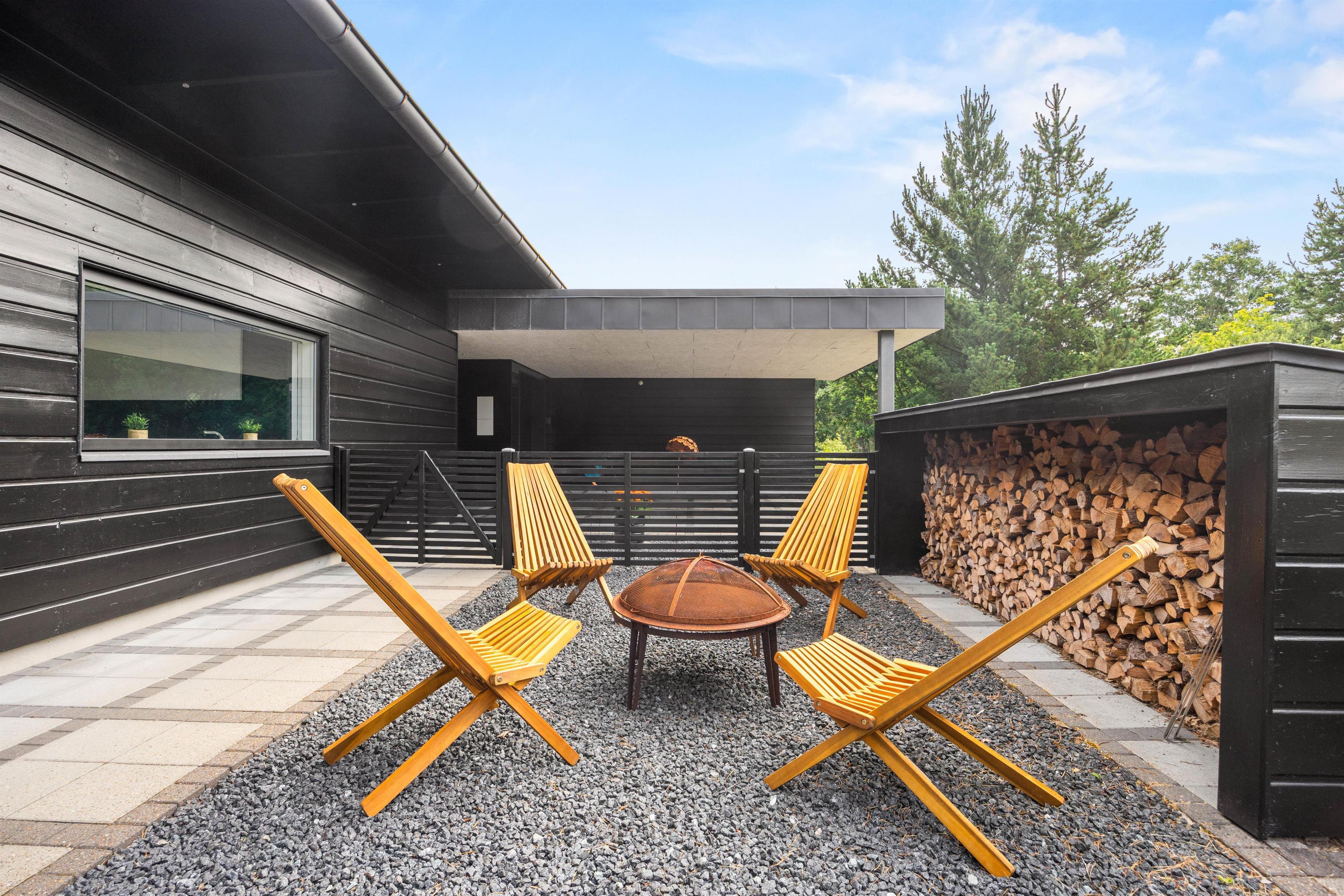 Det overdækkede terrasseområde indbyder til stemningsfulde grillaftener med komfortable havemøbler, mens sydvestsiden af grunden byder på et hyggeligt bålstativ – ideelt til snobrød, skumfiduser og gode samtaler under stjernerne.