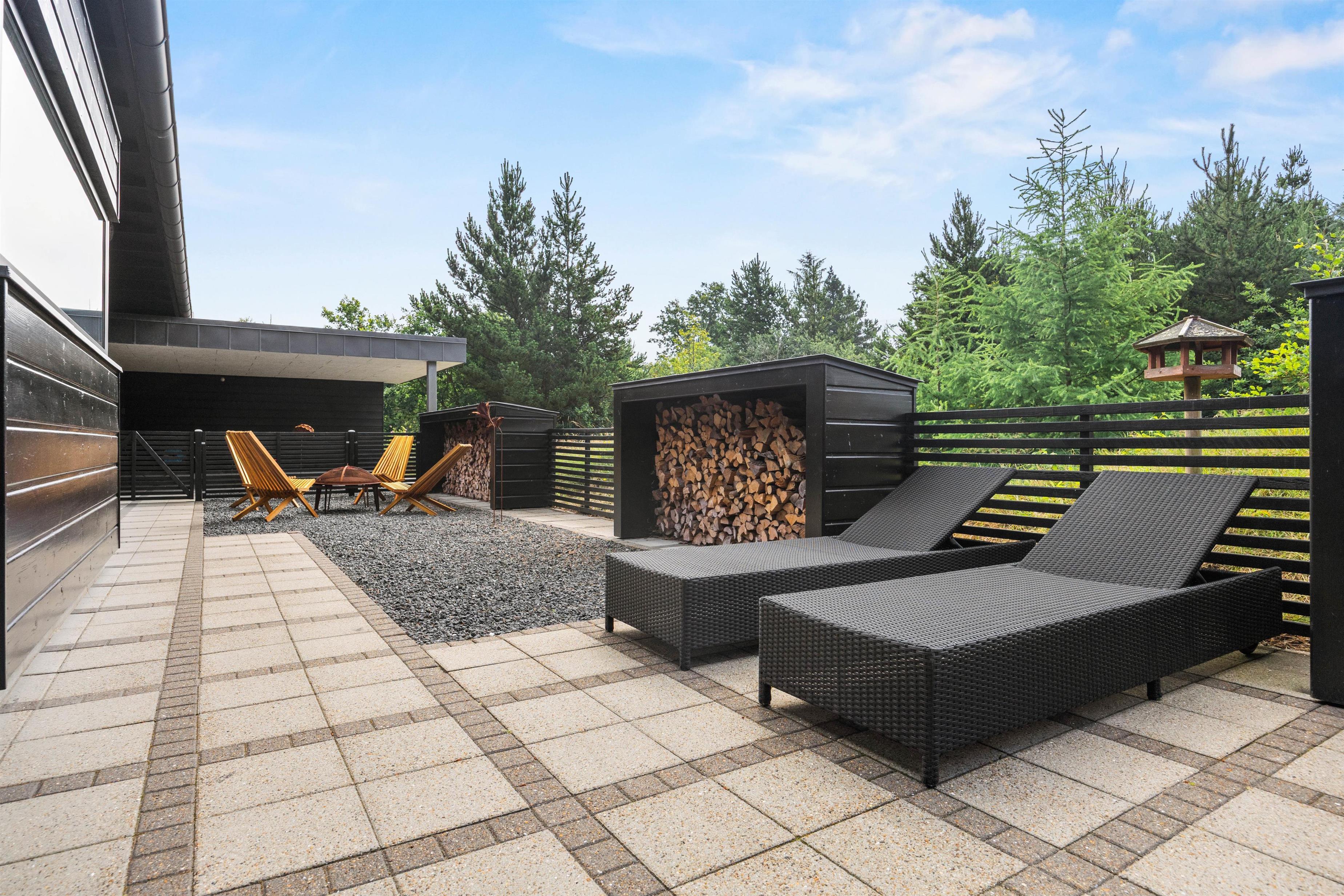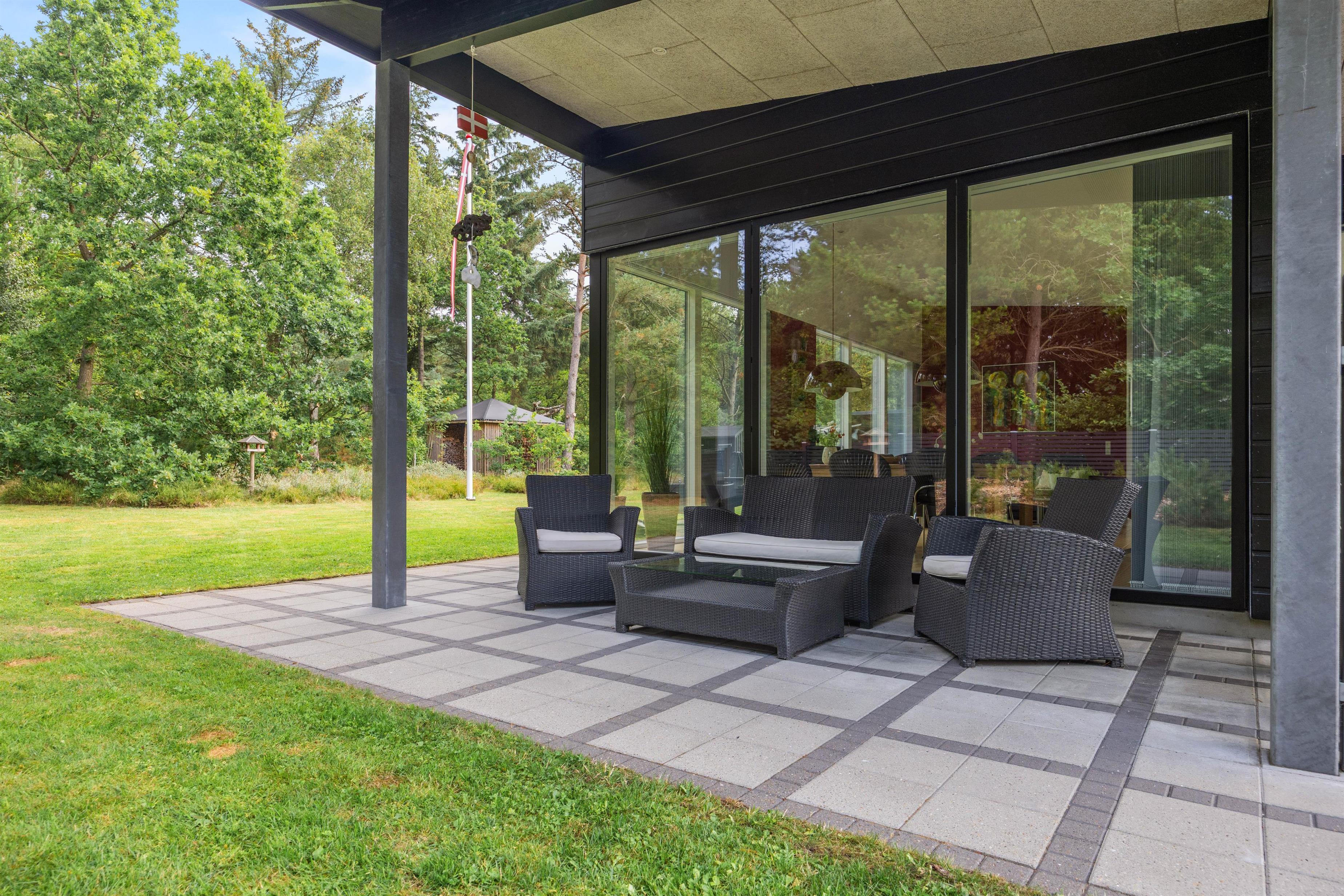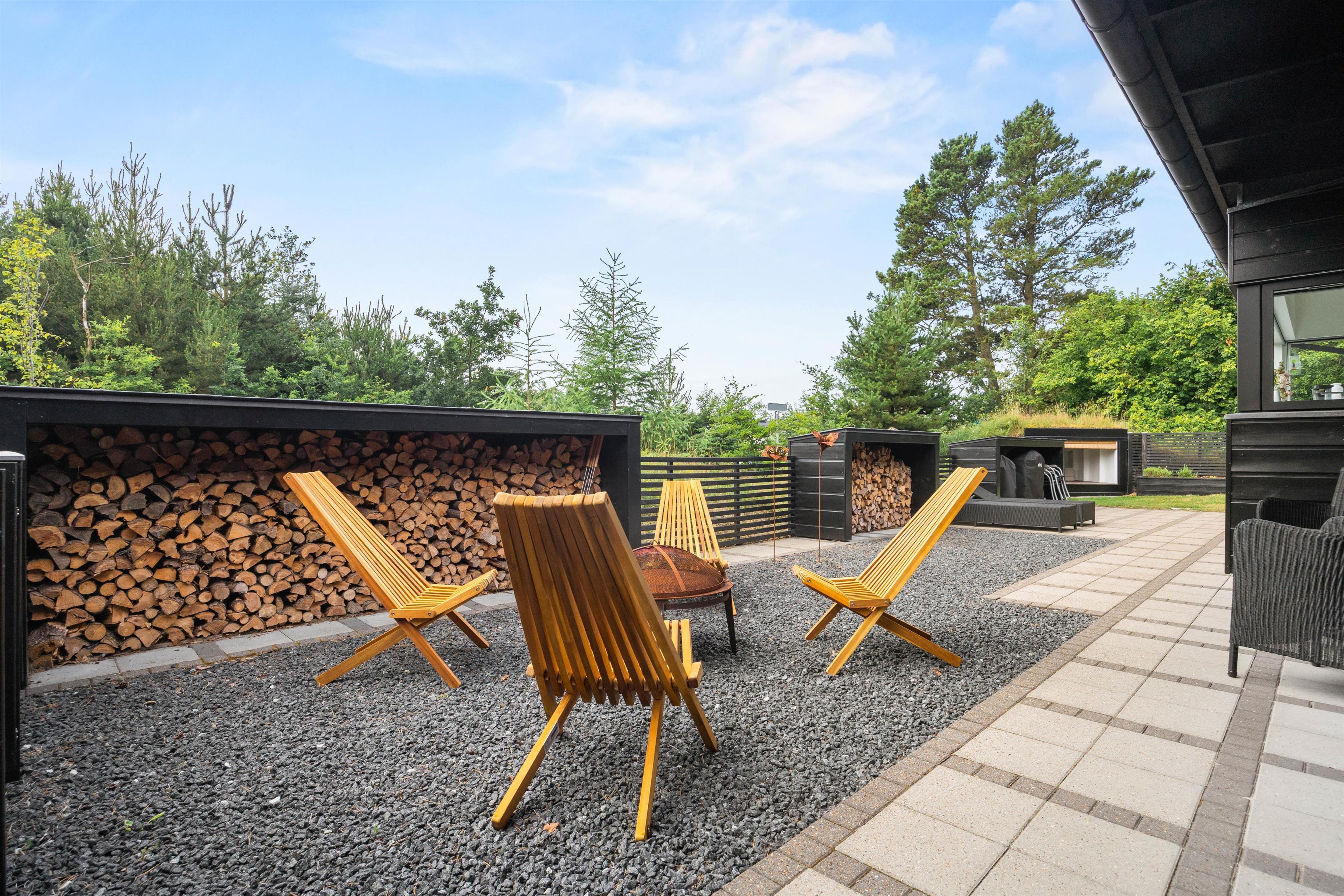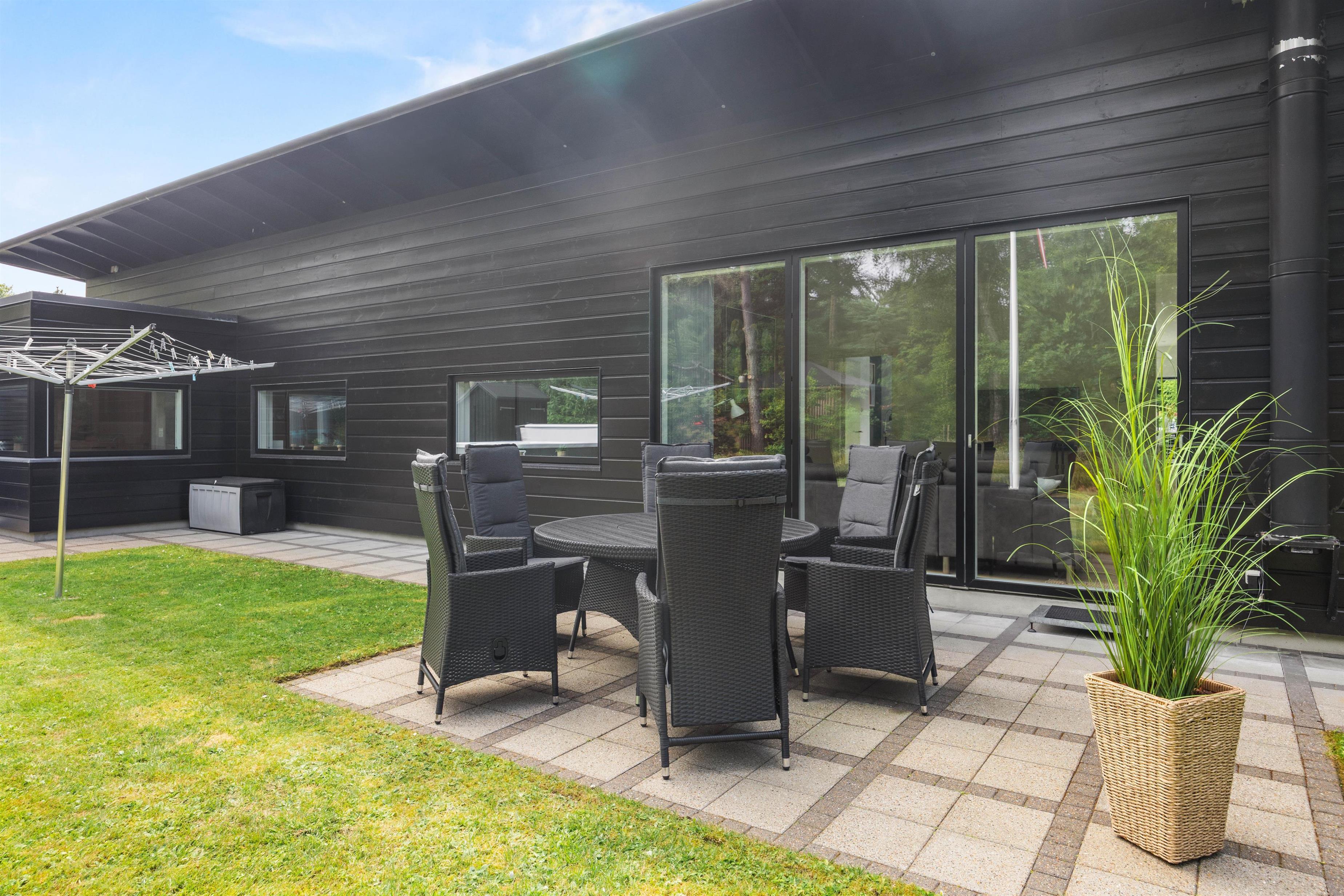 Det overdækkede terrasseområde indbyder til stemningsfulde grillaftener med komfortable havemøbler, mens sydvestsiden af grunden byder på et hyggeligt bålstativ – ideelt til snobrød, skumfiduser og gode samtaler under stjernerne.