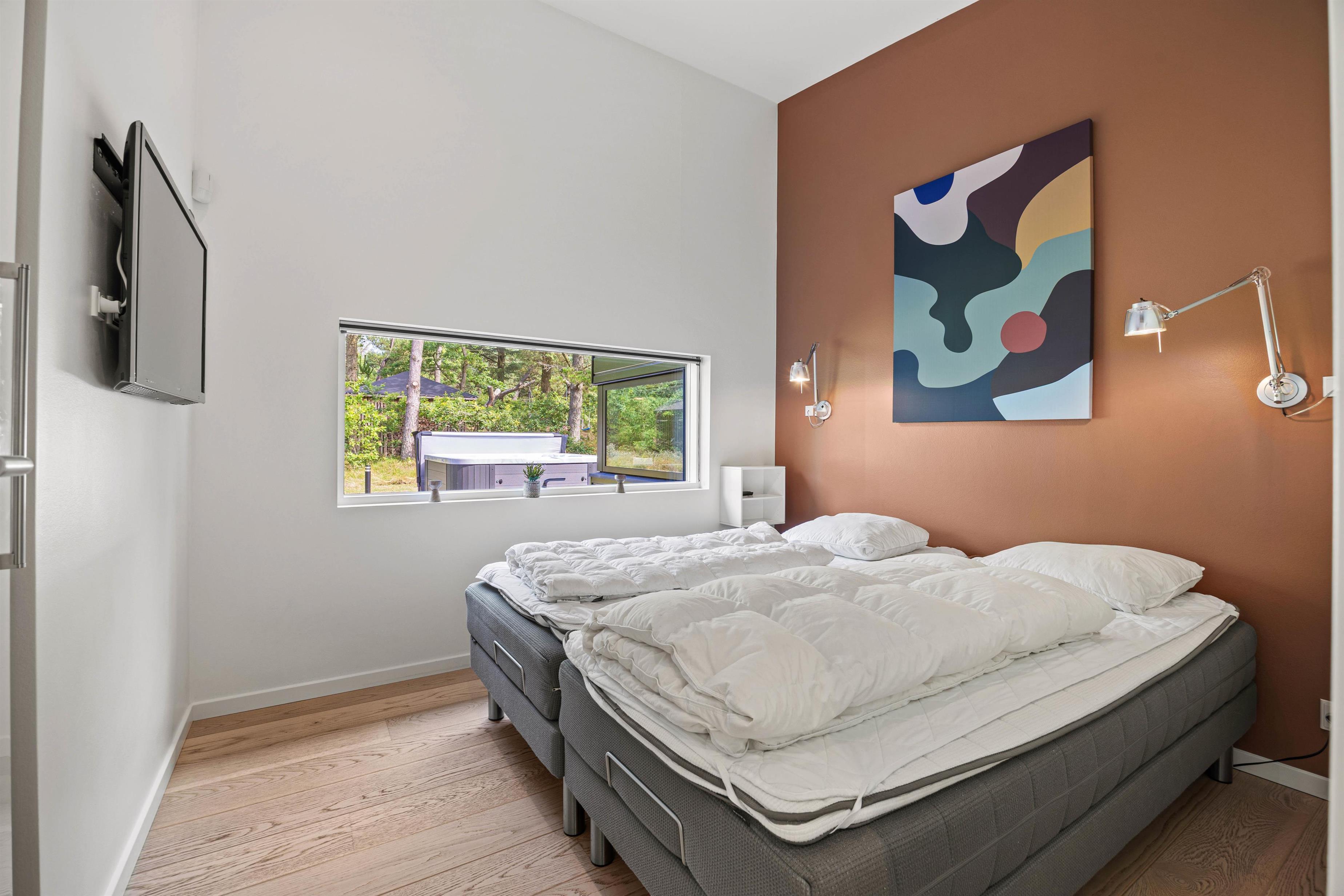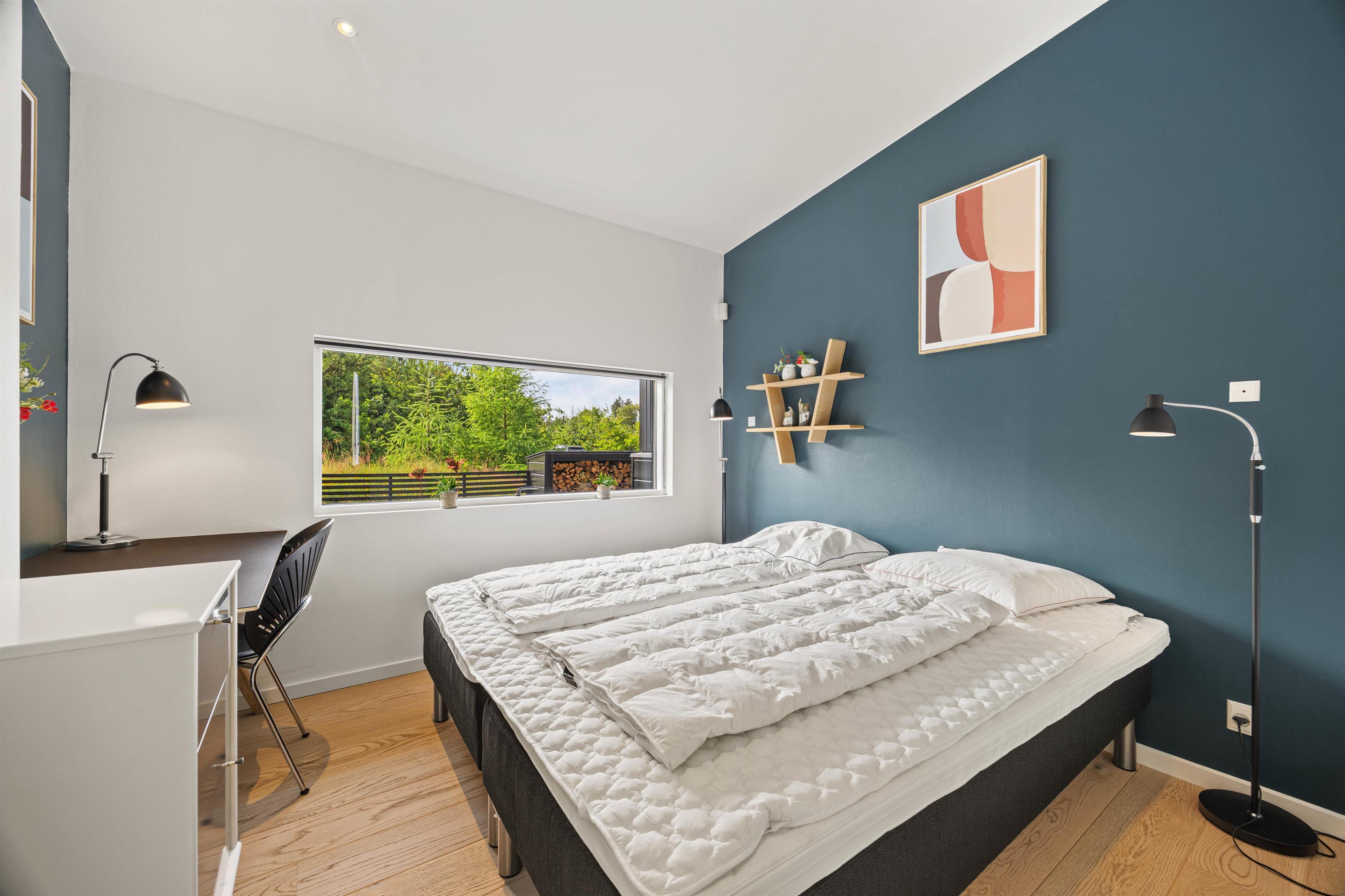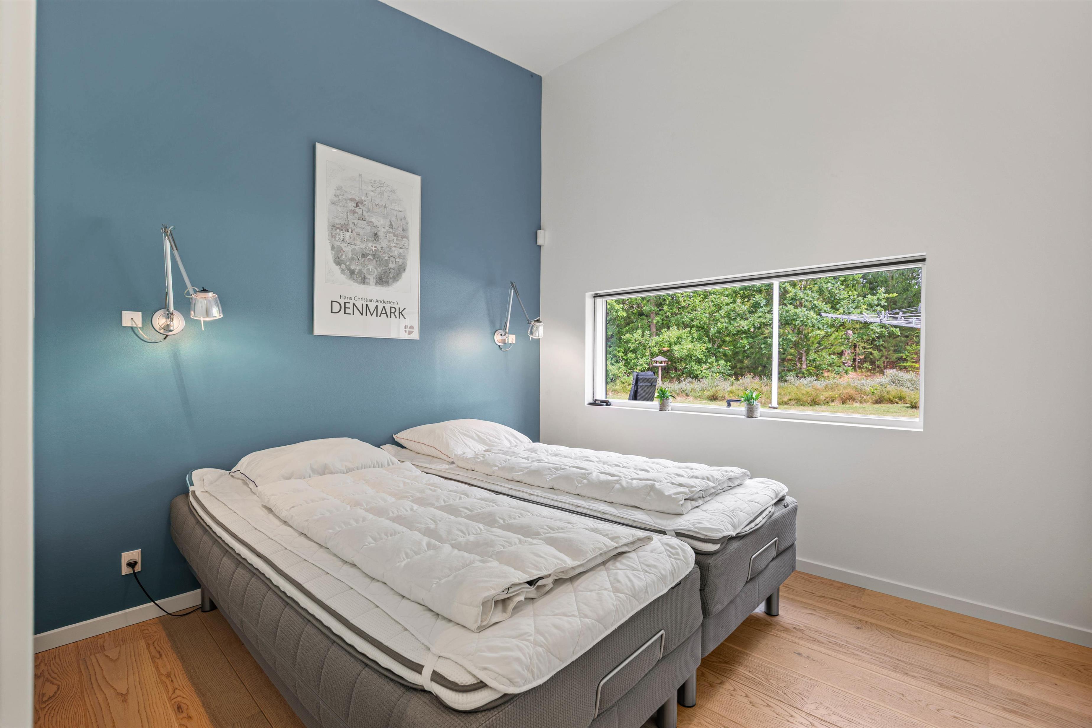 Dette 143 kvadratmeter store og velindrettede sommerhus rummer 4 komfortable soveværelser med dobbeltsenge – ideelt til en god nattesøvn efter en dag fyldt med naturoplevelser og frisk luft ved Vesterhavet.