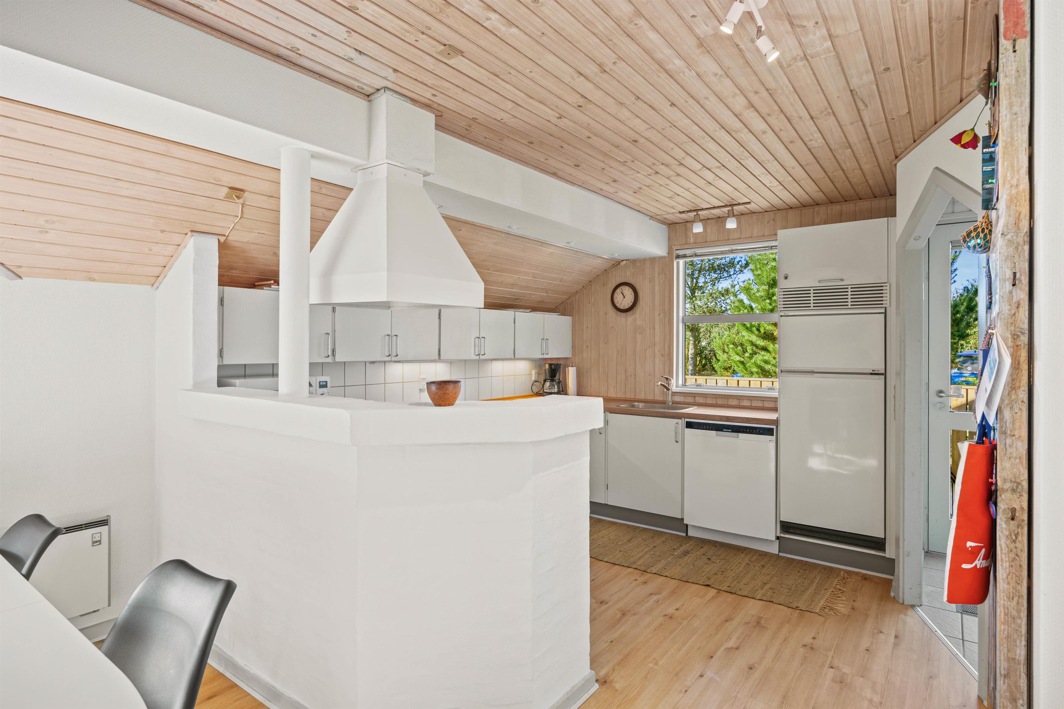 Uanset årstiden, tilbyder dette sommerhus en hyggelig oplevelse for op til 6 personer. Der er en brændeovn, der skaber en varm og indbydende atmosfære på de køligere aftener, samt en skøn spisestue, hvor I nemt kan spille brætspil eller planlægge næste dags aktiviteter. Den indbyggede og energibesparende luft-til-luft varmepumpe sikrer, at temperaturen i sommerhuset er behagelig året rundt.