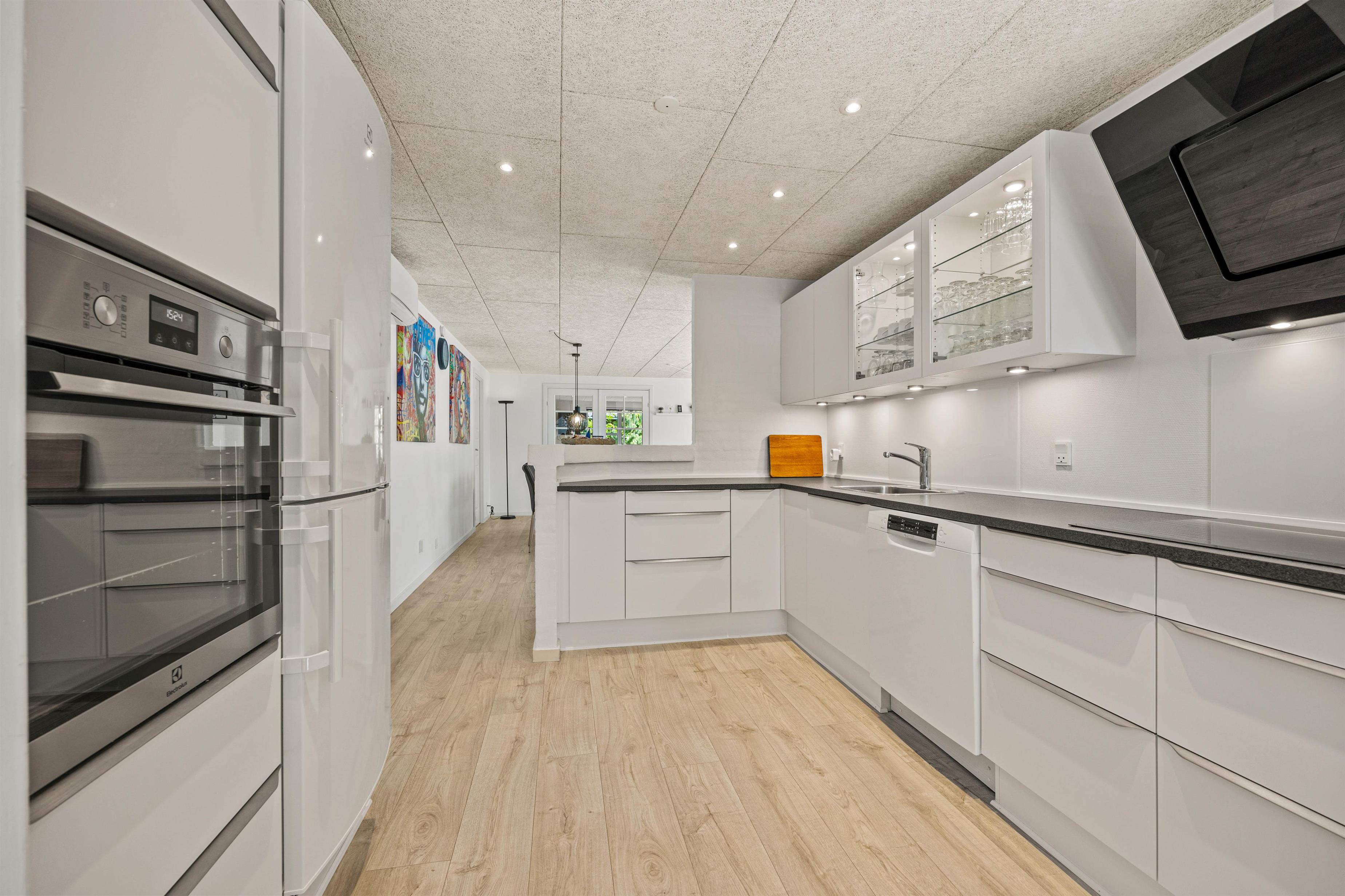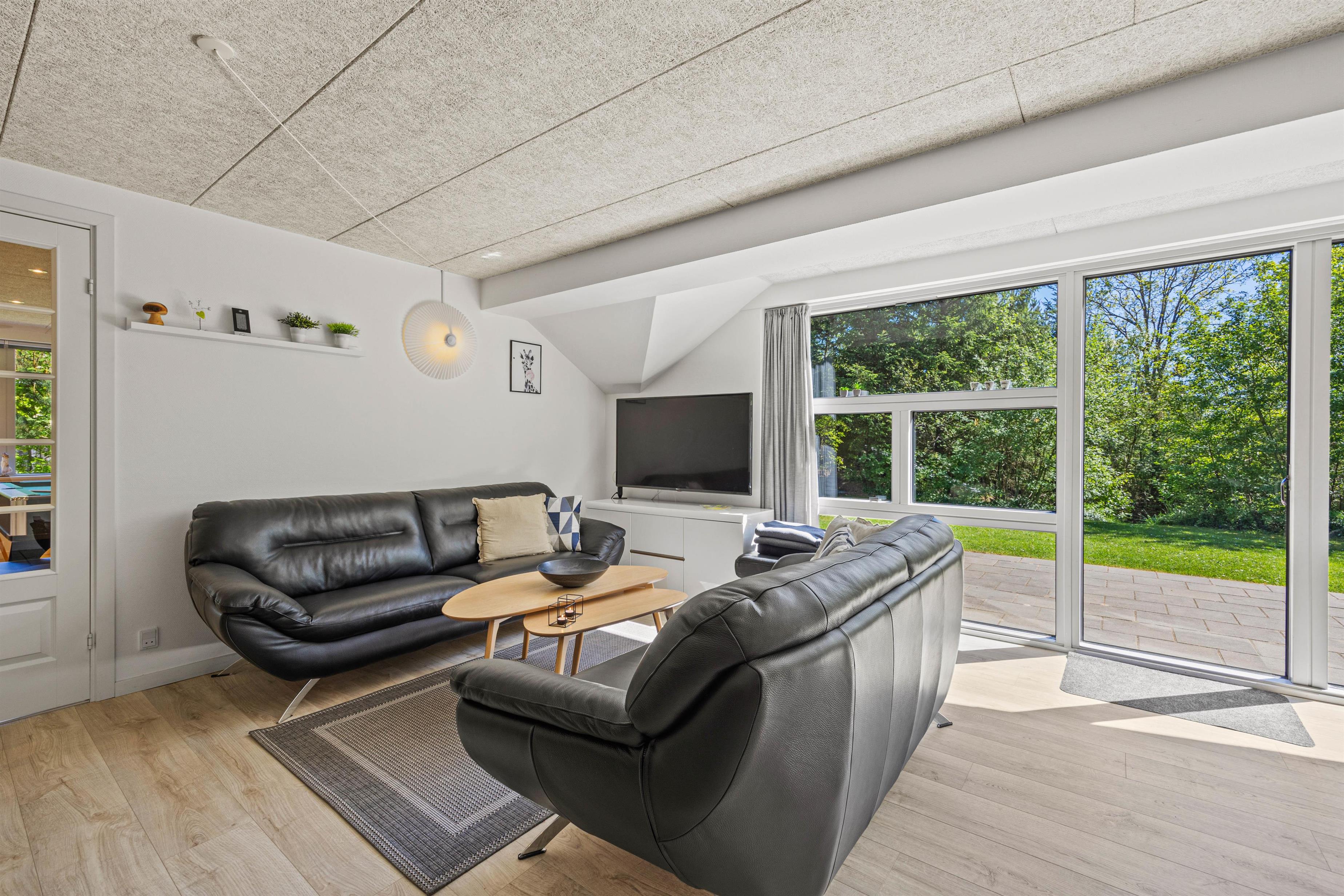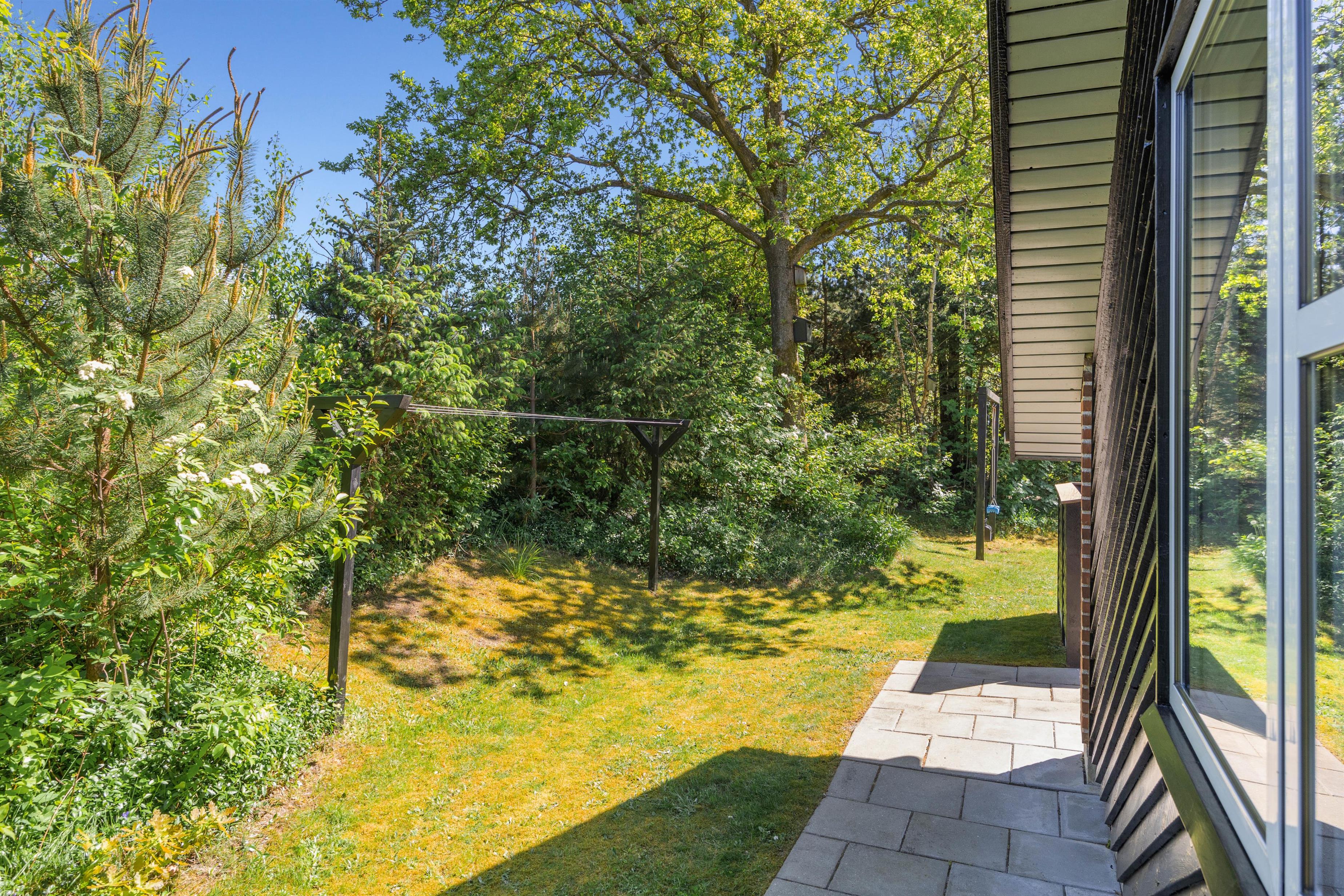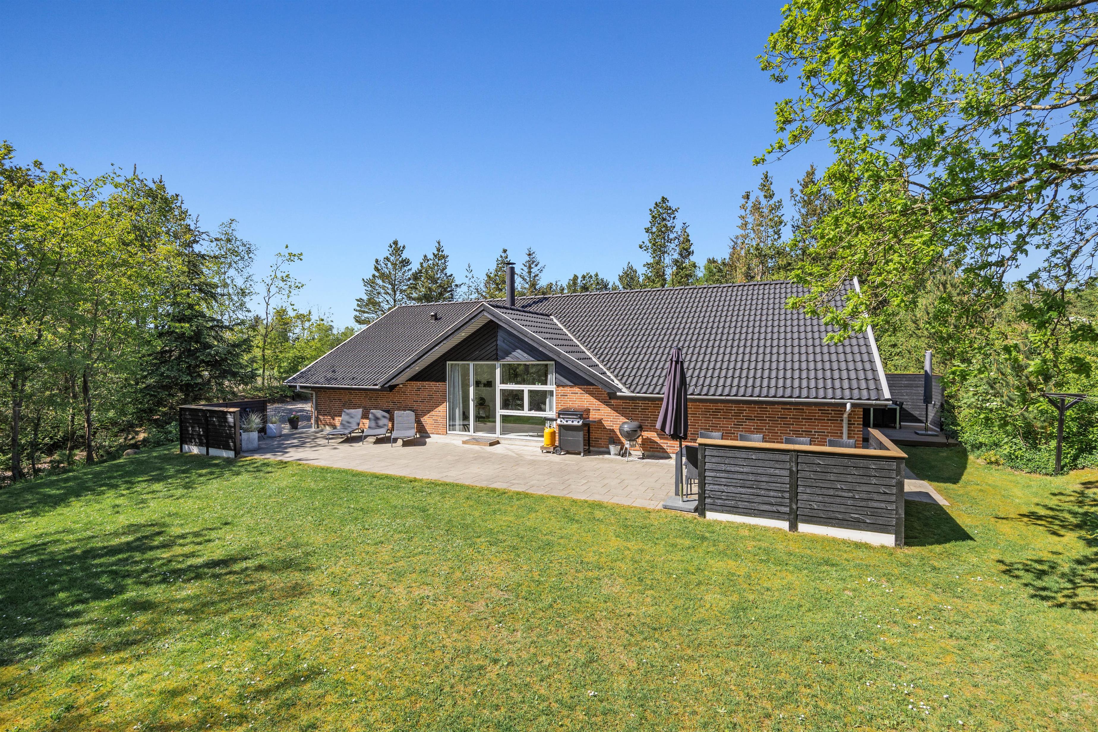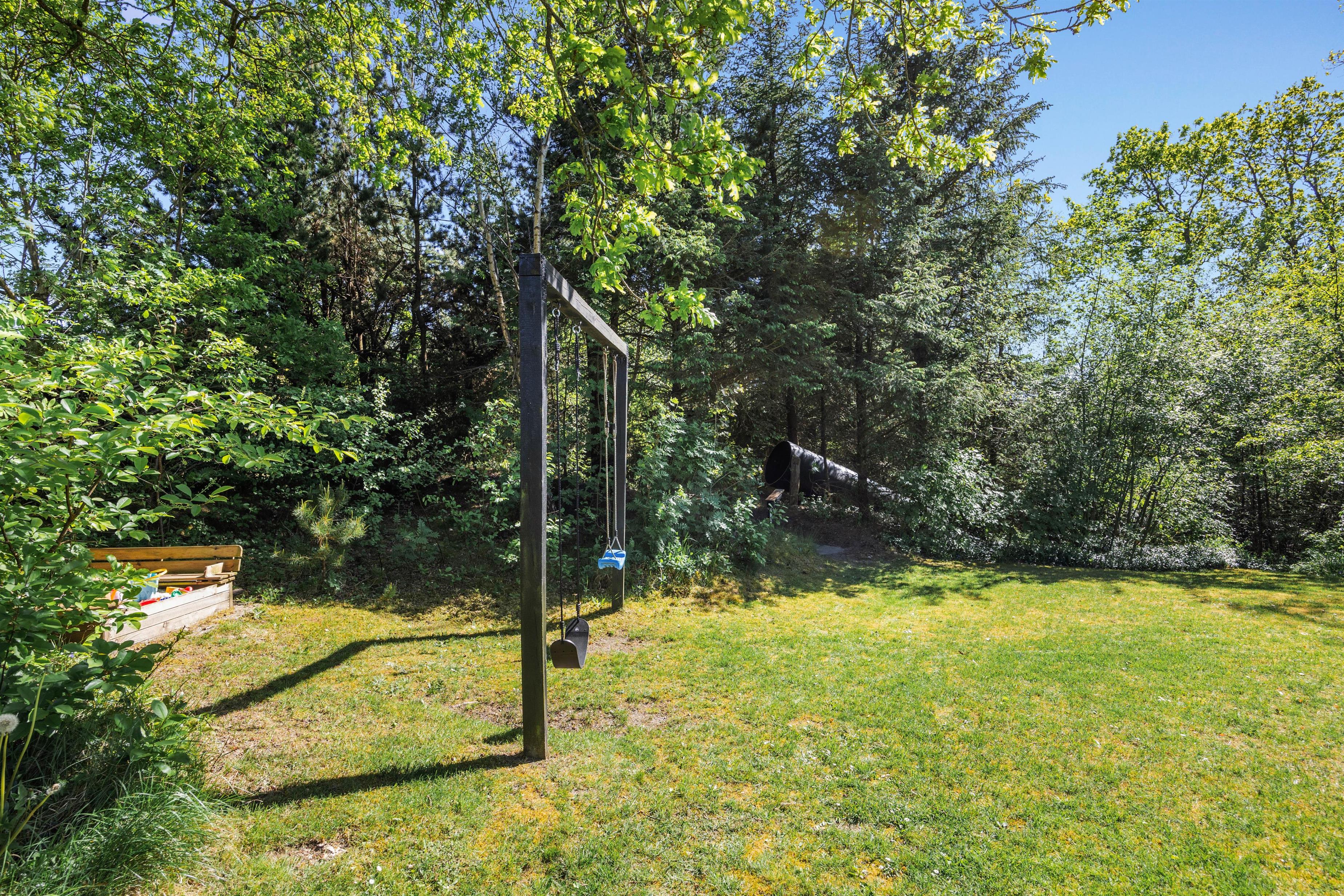Husets store terrasse skal bare opleves. Her er der læ, rigtig god plads og masser af gode havemøbler. Så snart vejret tillader det, er det bare med at komme ud og svinge benene op i en liggestol, imens børnene og familiens hund leger på den dejlige grund, hvor der forefindes masser af legeredskaber til de små. Når dagen går på hæld, er det tid til at tænde op i grillen, trylle lidt salat i det store veludstyrede køkken og samles ved det store terrassebord til lidt lækker grillmad og måske en flaske rødvin.