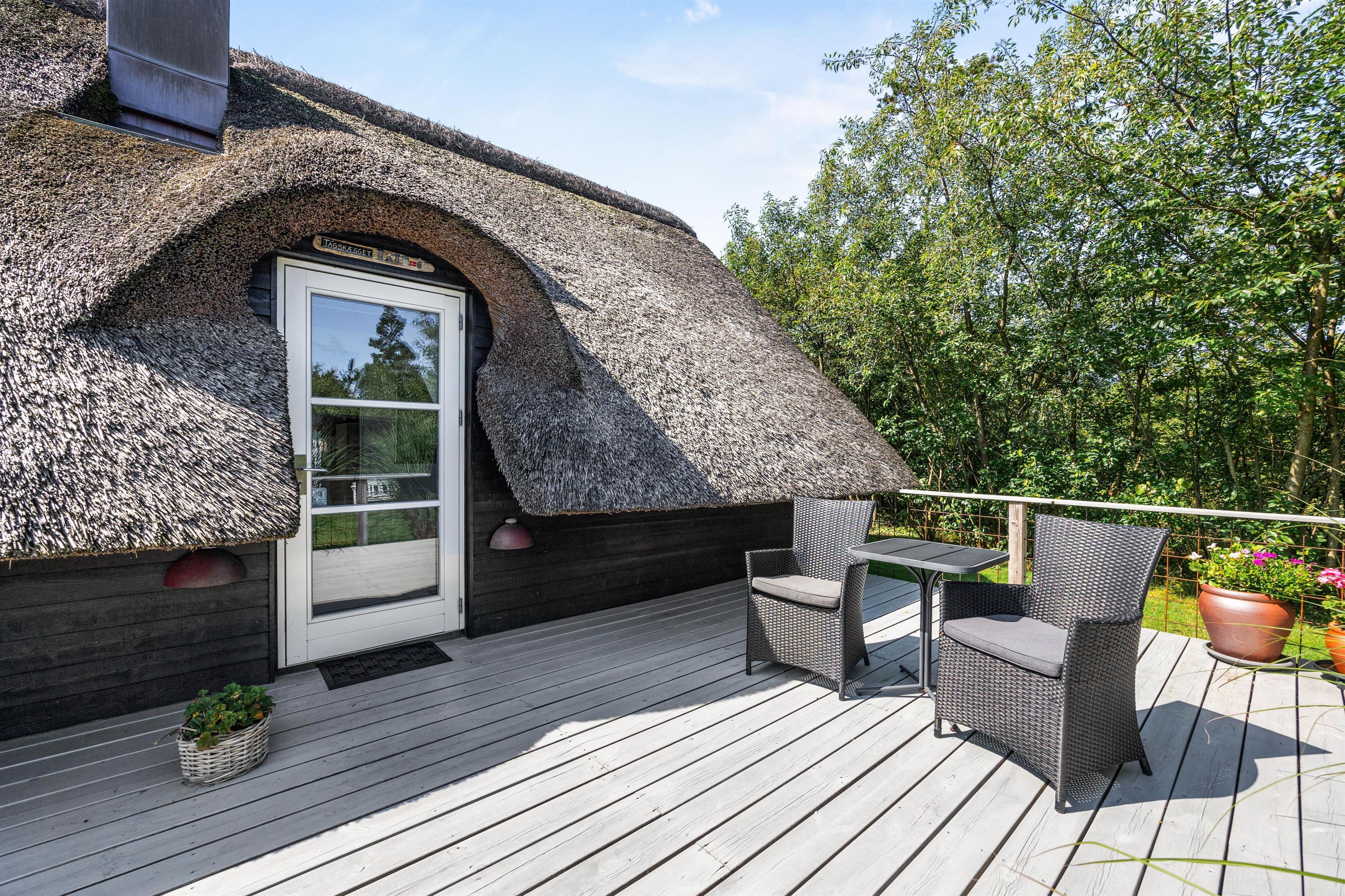 Et af højdepunkterne ved dette hyggelige sommerhus i Henneby er den lukkede terrasse, hvor I kan nyde den omkringliggende natur i fulde drag uden at gå på kompromis med privatlivet. Komfortable havemøbler indbyder til hyggelige stunder udendørs, hvad enten det er til solrige eftermiddage og hyggelige grillarrangementer med venner. Den store græsplæne giver rig mulighed for både leg og afslapning, og det skønne vildmarksbad byder på en unik oplevelse under åben himmel – såvel døgnet som året rundt.