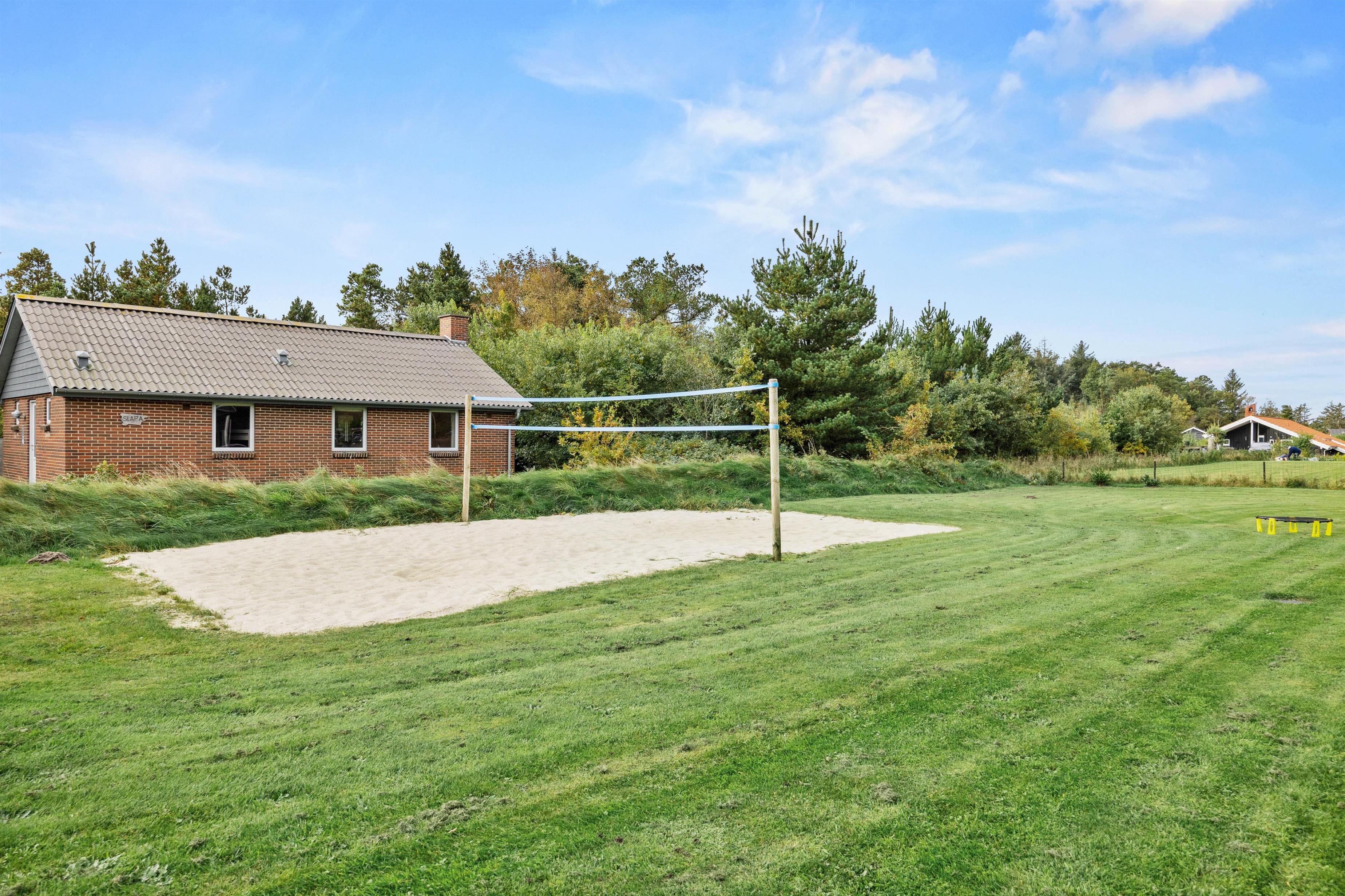 Feriehuset på Strandfogedvej 46 ligger i Henneby, og ligger 3 kilometer fra Henne Strand, som ikke kun byder på mange gode butikker og forskellige spisesteder, men også ligger direkte ned til det skønne Vesterhav: her er der blå bølger og smukke sandstrande, så langt øjet rækker.