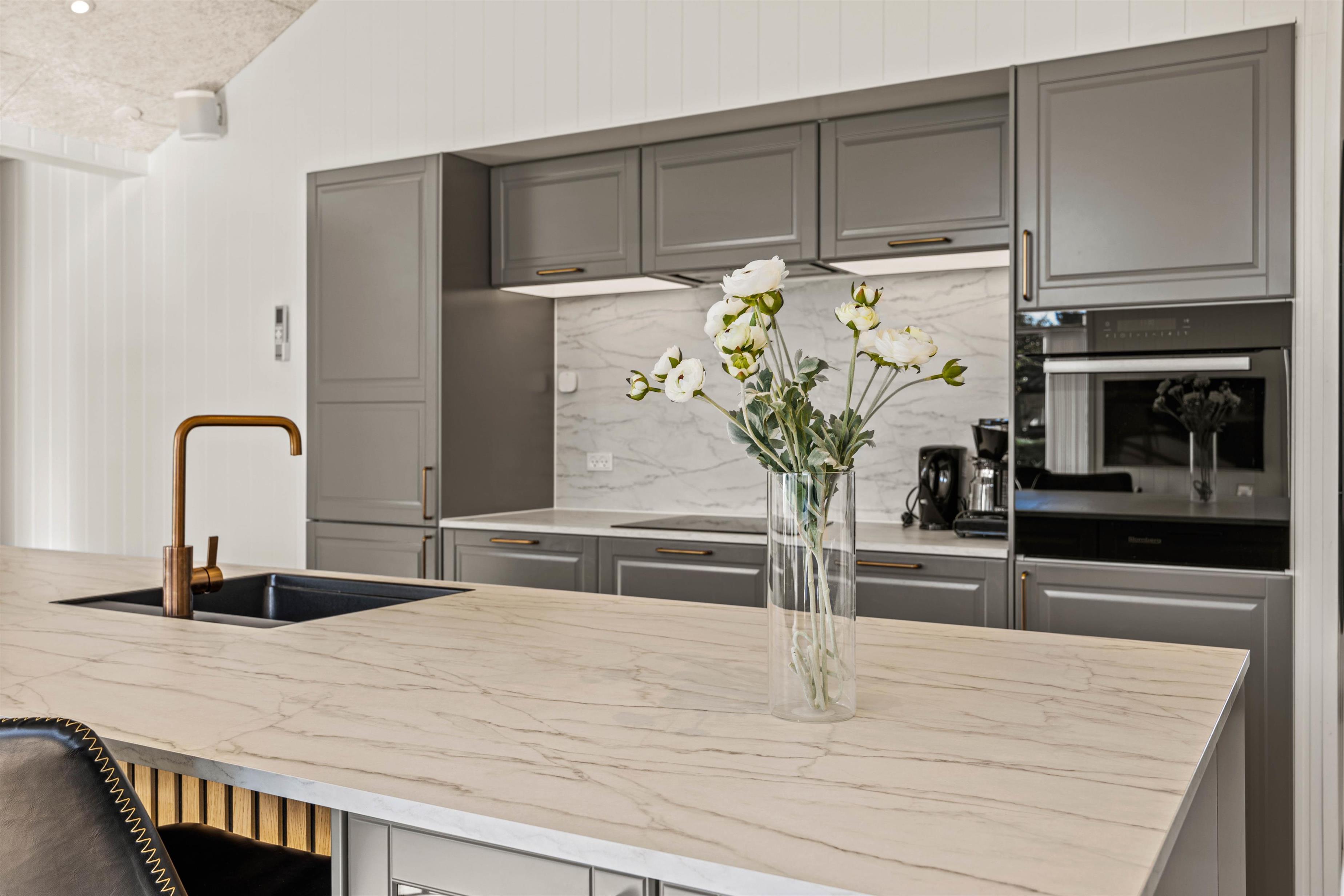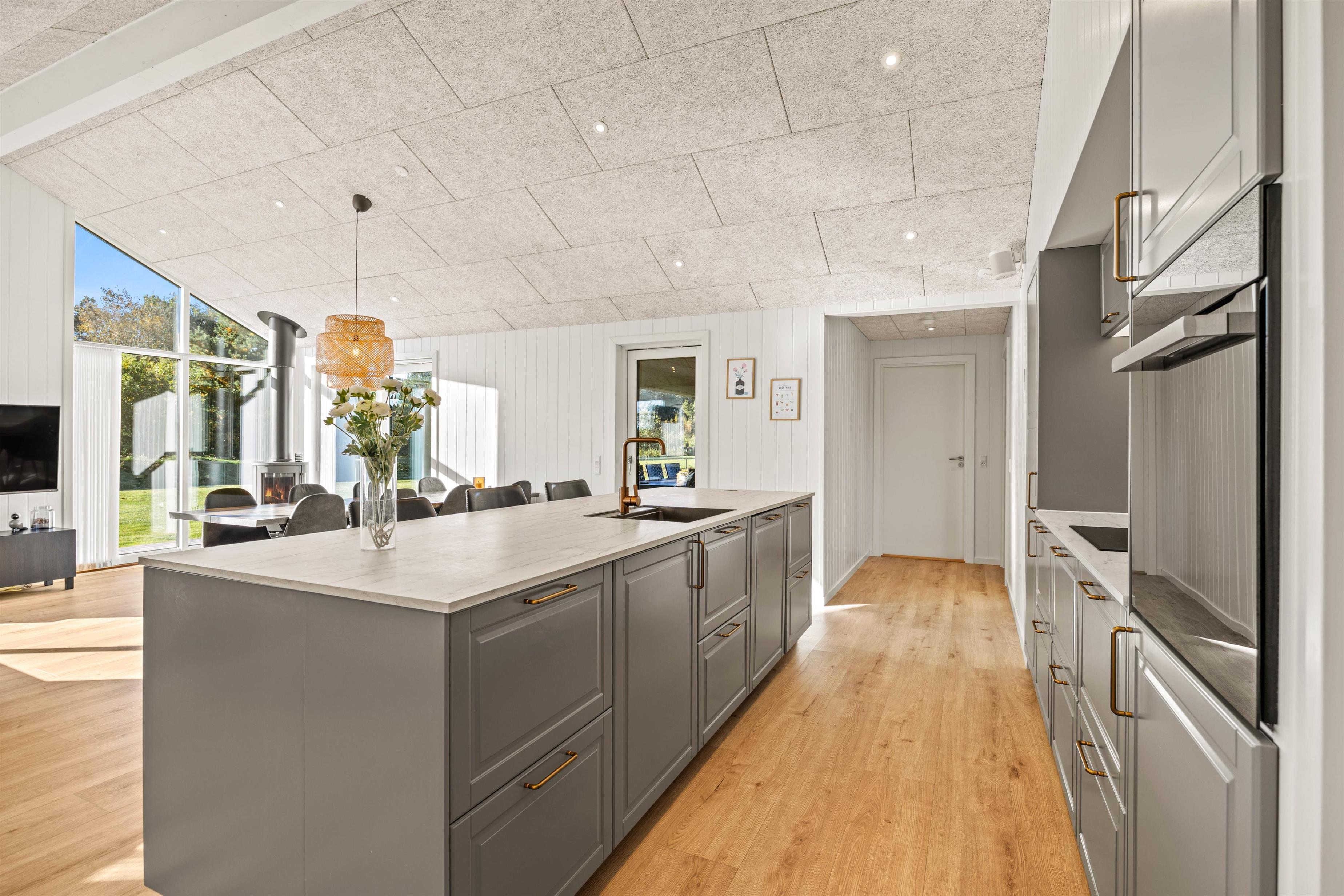I forlængelse af stuen ligger et moderne indrettet køkken, som byder ind til fælles madlavning. Særligt praktisk er også frysemuligheden på 80L.