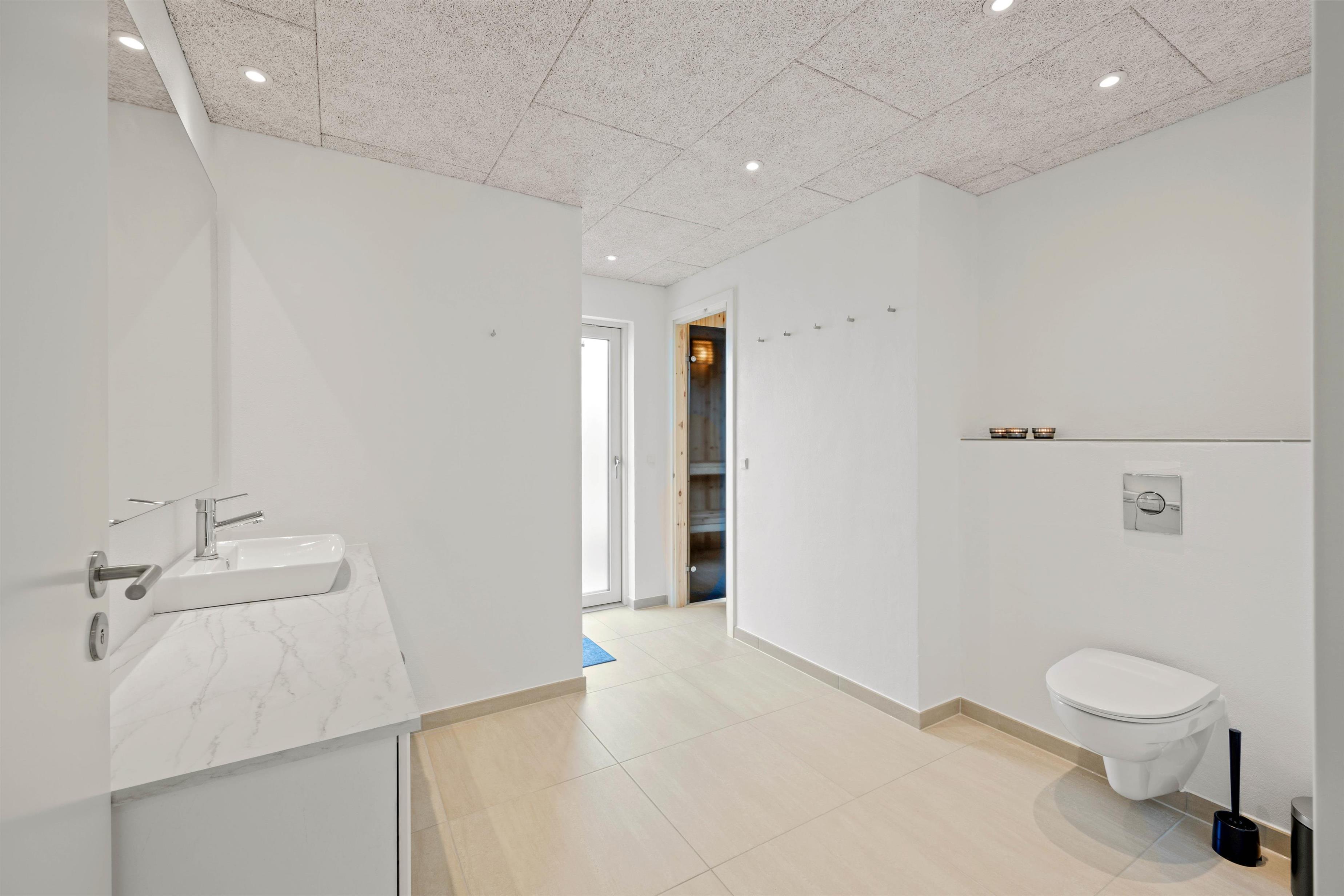 De 2 praktisk indrettede badeværelser er begge udstyret med gulvvarme, og gør at der ingen kø er til morgenbadet. Desuden er der vaskemaskine og tørretumbler i det ene badeværelse, så I ikke behøver at samle vasketøj op hen over ferien.