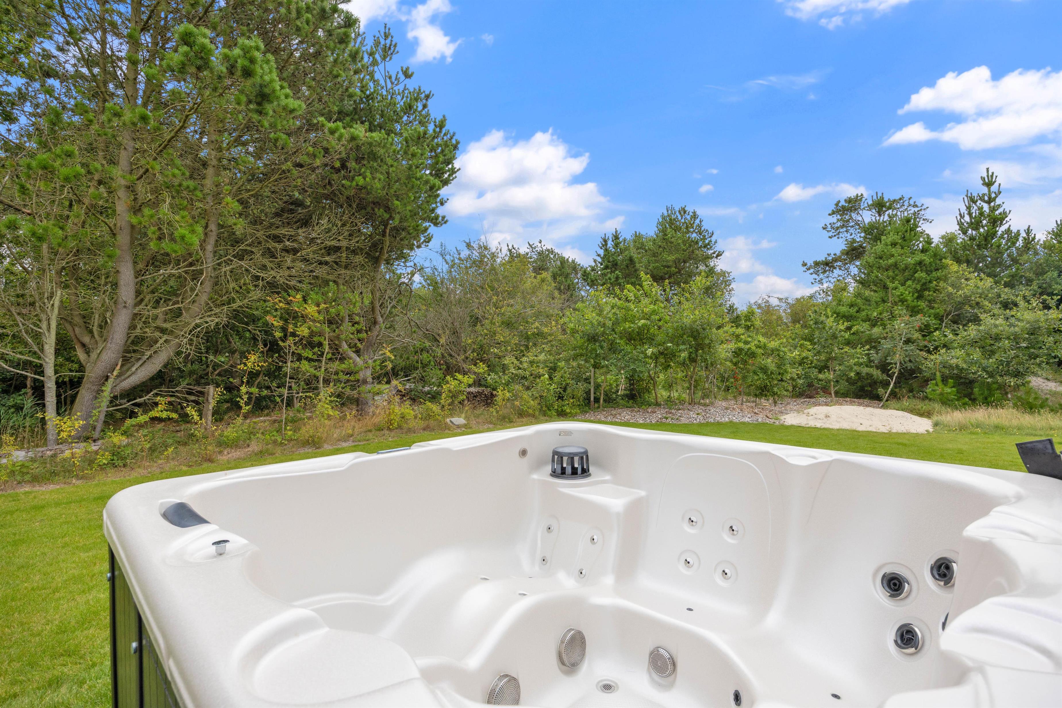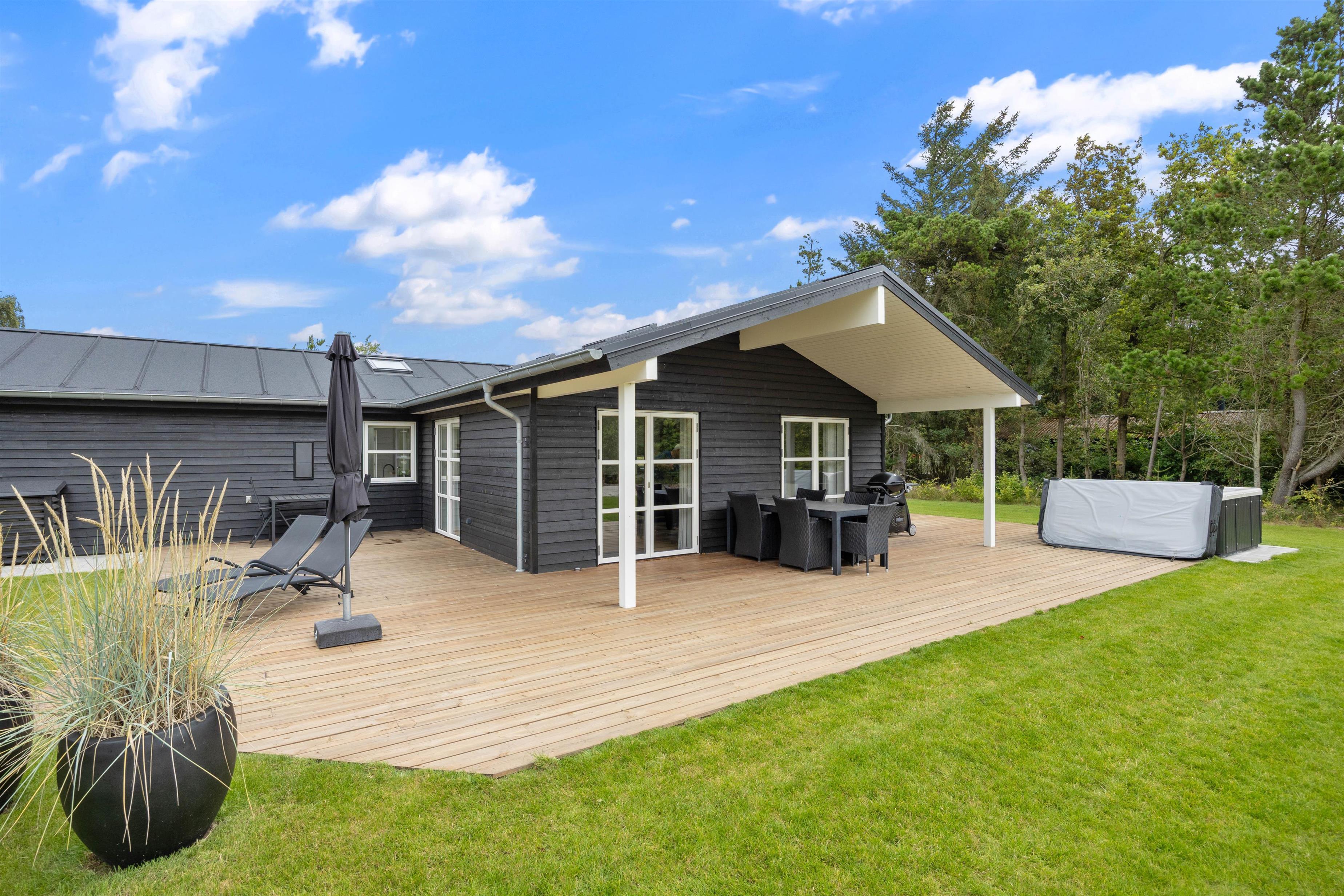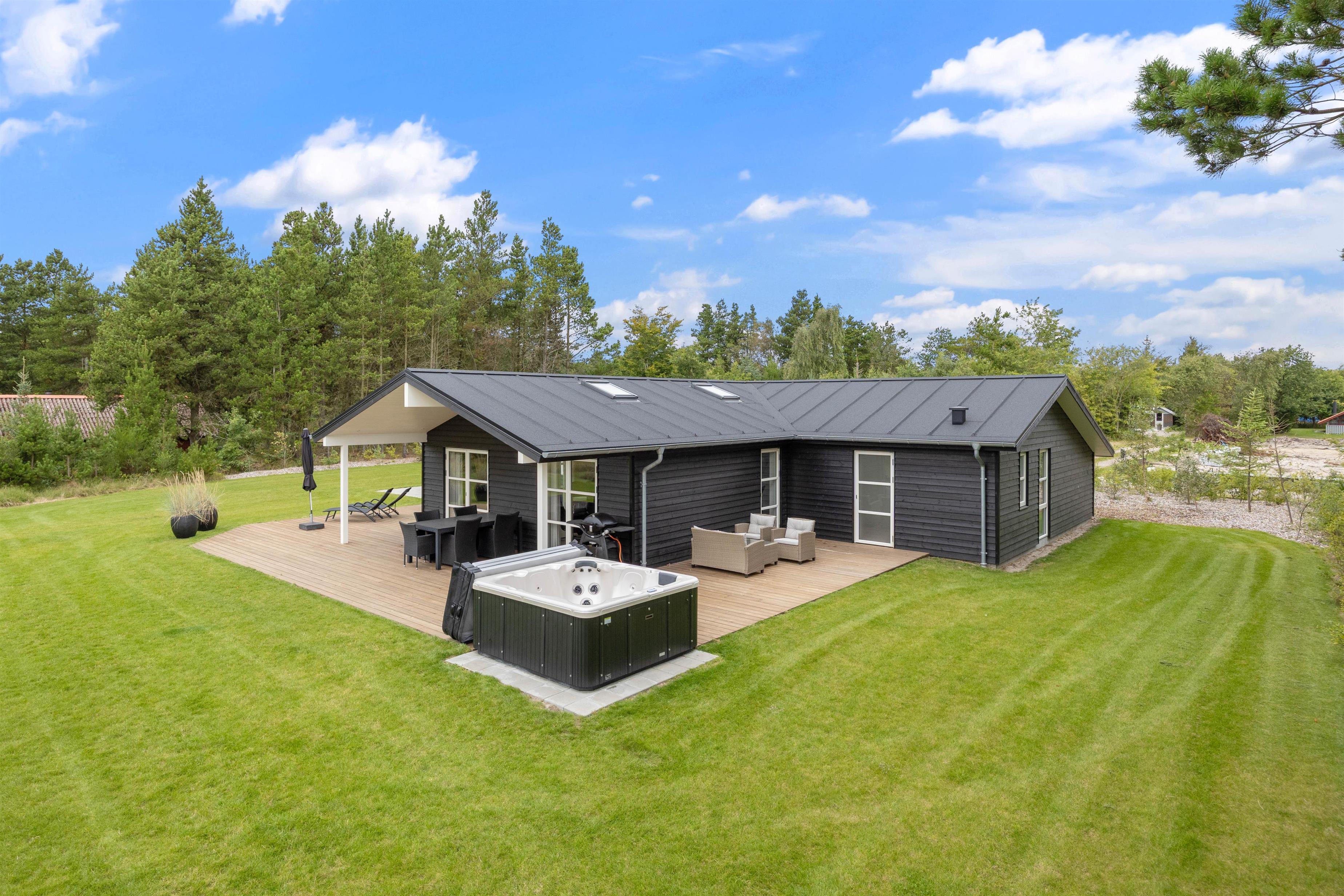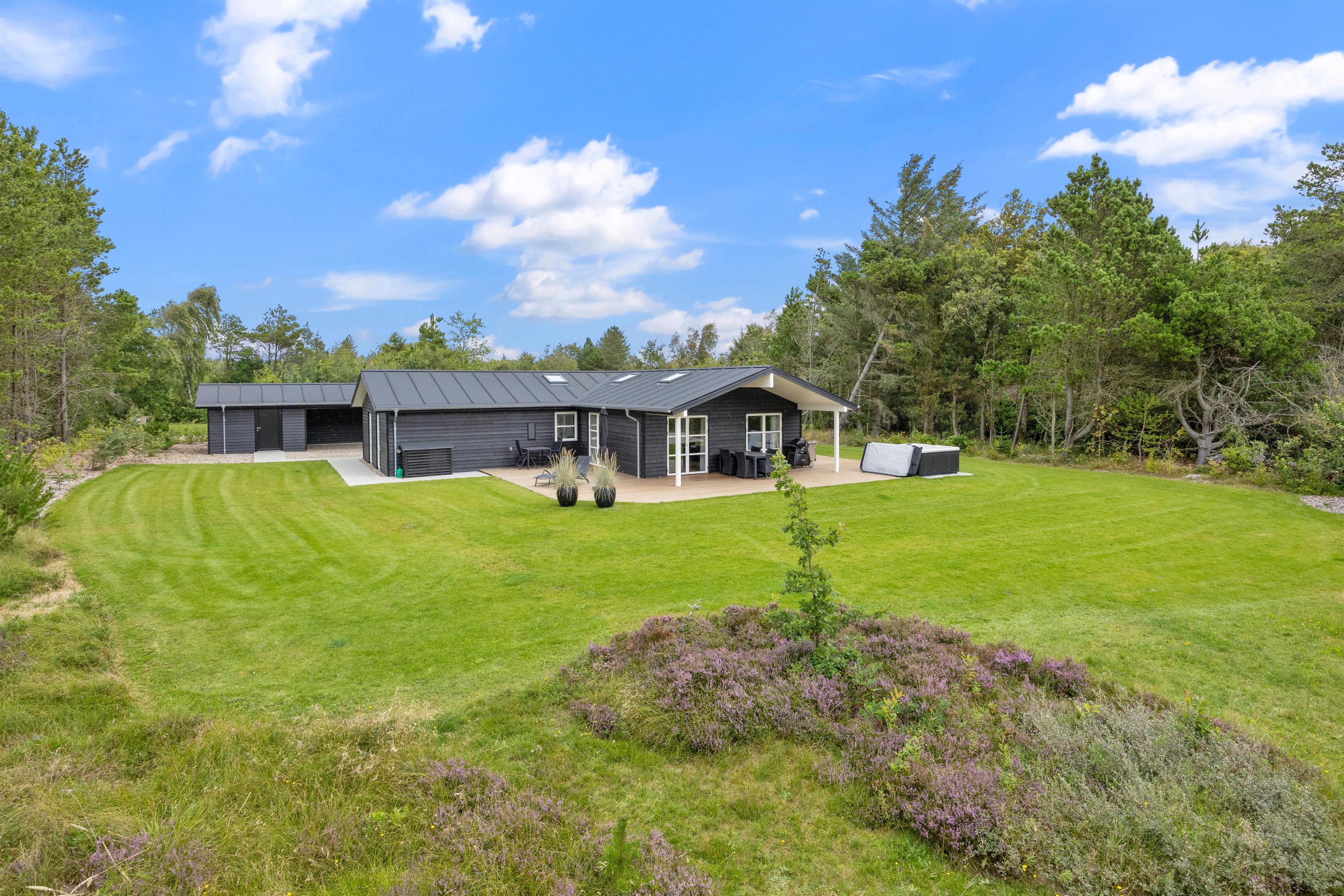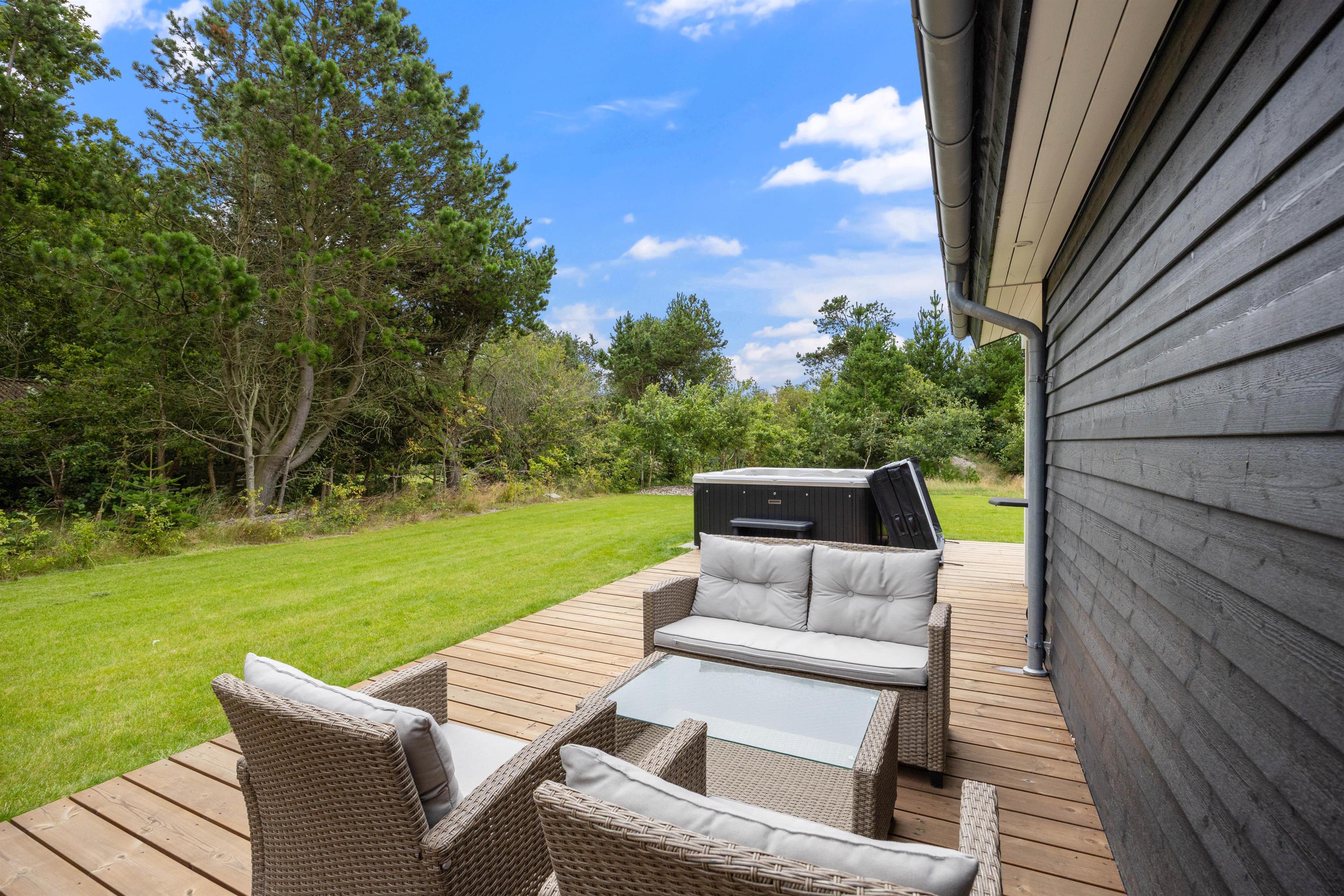 Feriehuset på Kærvej 8 er beliggende på en stor plænegrund, hvor der er rigelig plads for både de 2 og 4 benede at boltre sig på. De komfortable havemøbler og grill, der står fremme på terrasserne omkring feriehuset, gør udeområderne perfekt til at nyde de solrige dage og lune aftener. Den overdækkede terrasse giver mulighed for at opleve udendørslivet i al slags vejr, mens den luksuriøse udespa – til op til 6 personer - tilbyder et pusterum af afslapning.