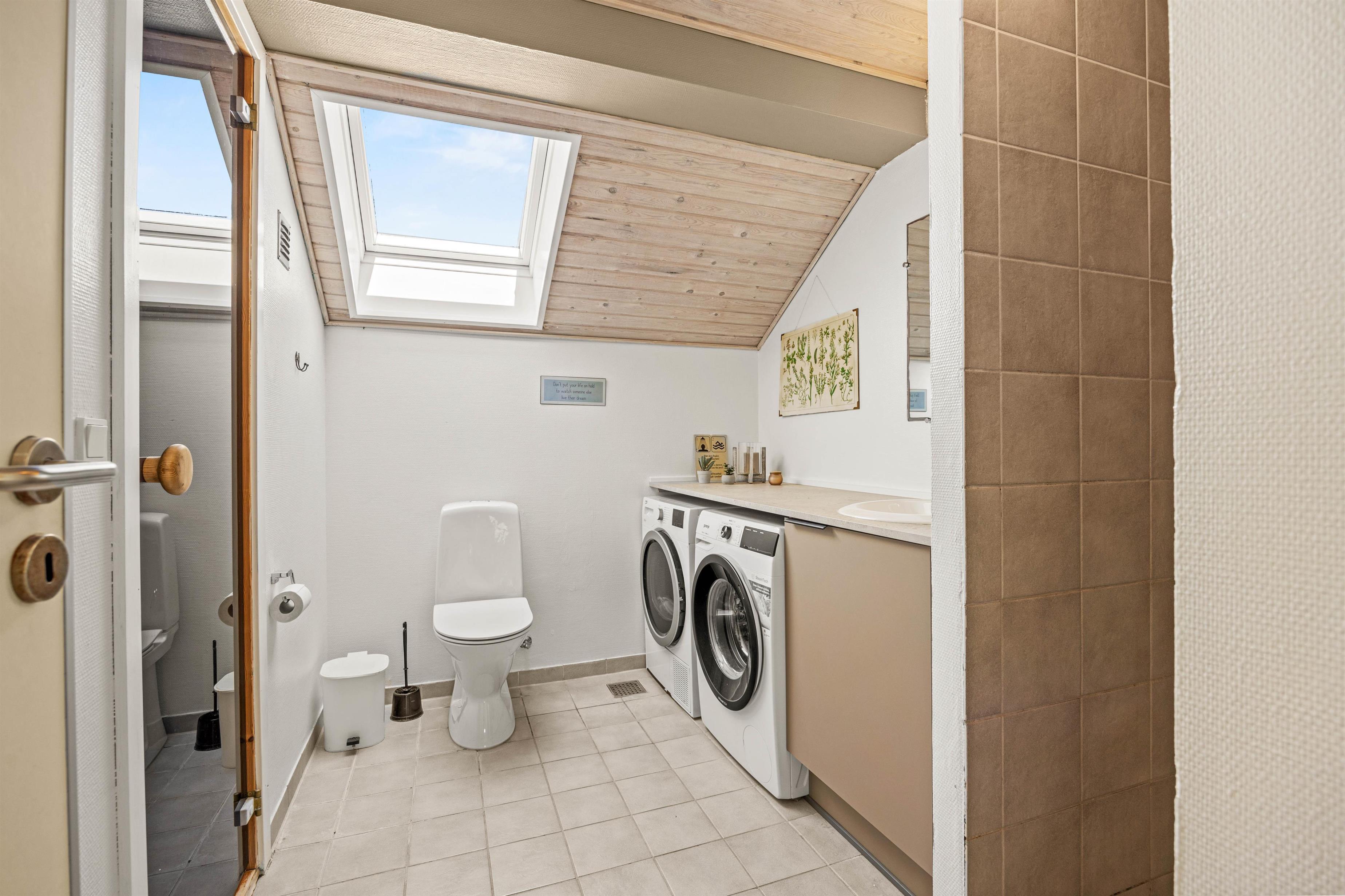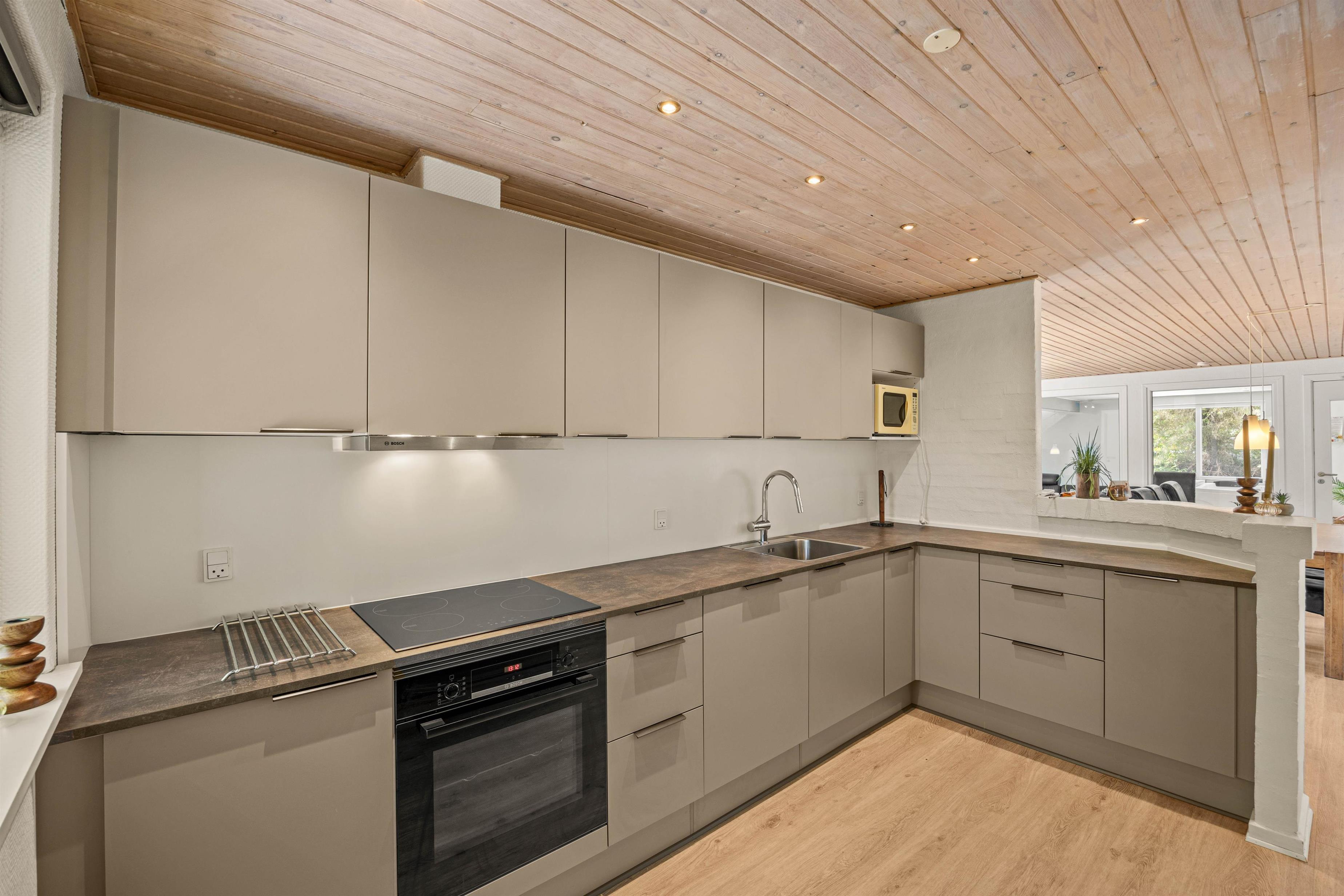 Køkkenet er fuldt udstyret med blandt andet opvaskemaskine, som gør madlavningen og opvask til en leg. Desuden er der vaskemaskine og tørretumbler i sommerhuset, og kan I nemt friske jeres håndklæder op.