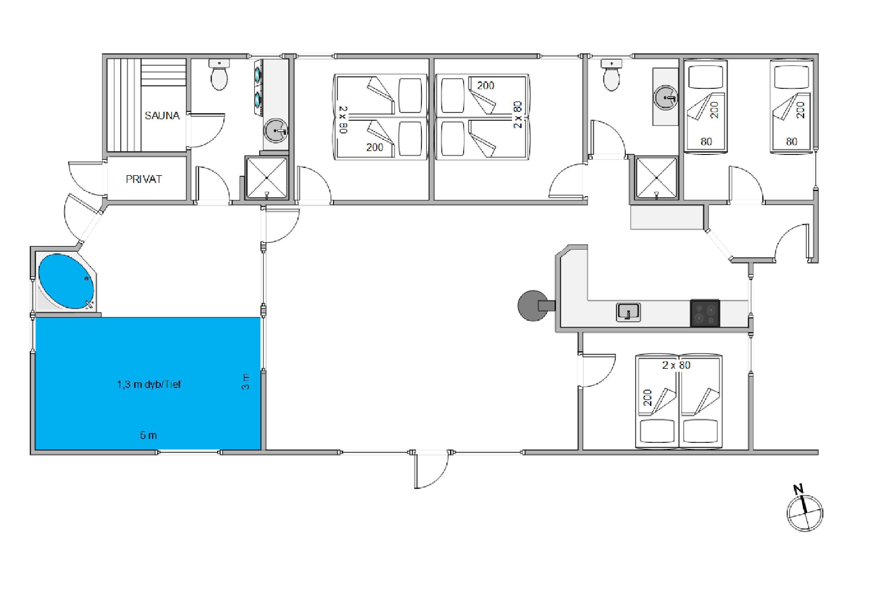 Nyd den luksuriøse wellnessafdeling med spa, sauna og pool, hvor vandhunde i alle aldre frit kan lege og slappe af. Efter en lang dag med aktiviteter er det i saunaen og spaen, I kan genoplade batterierne. Sommerhusets wellnessoase er det perfekte sted at slippe af med hverdagens stress og jag.