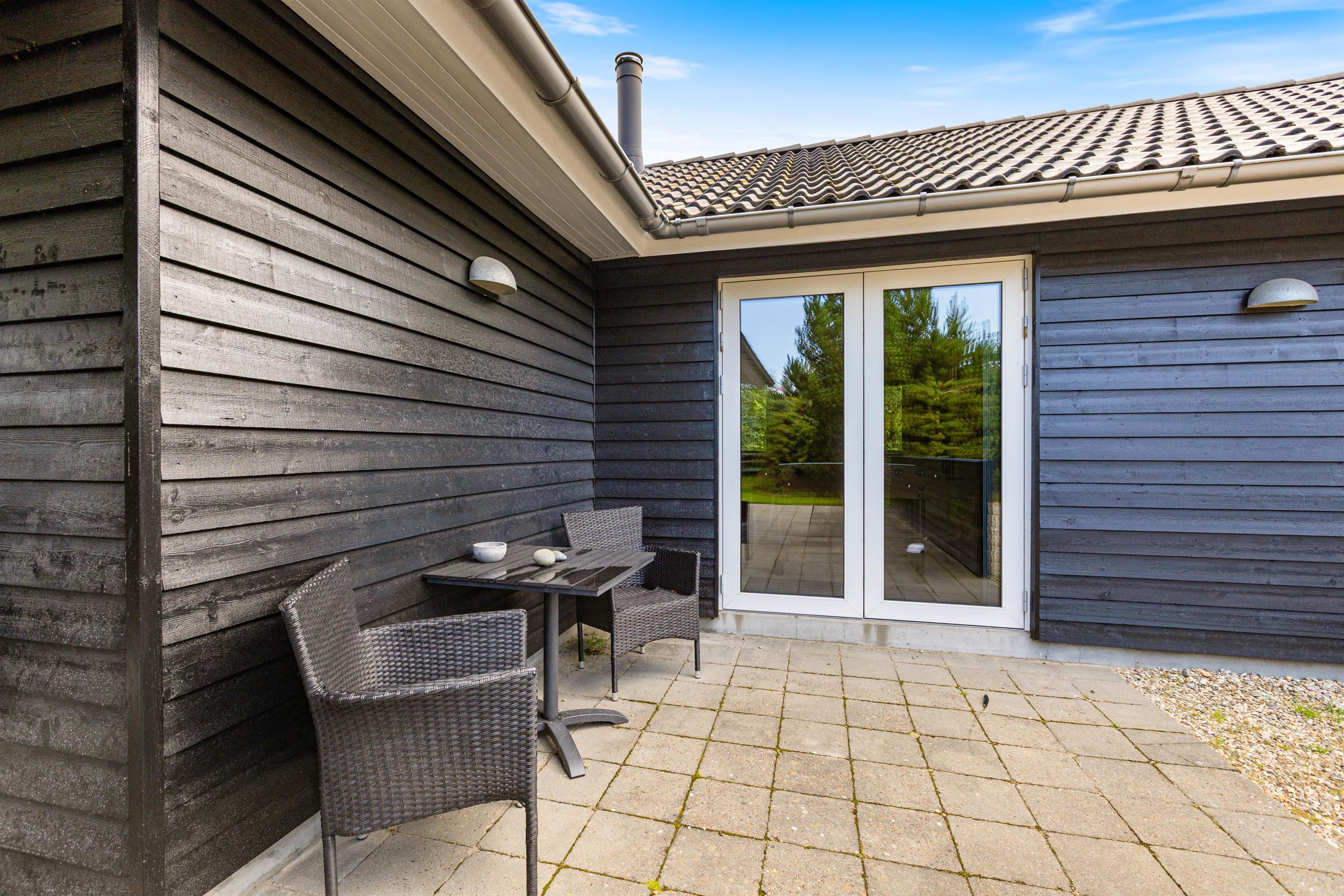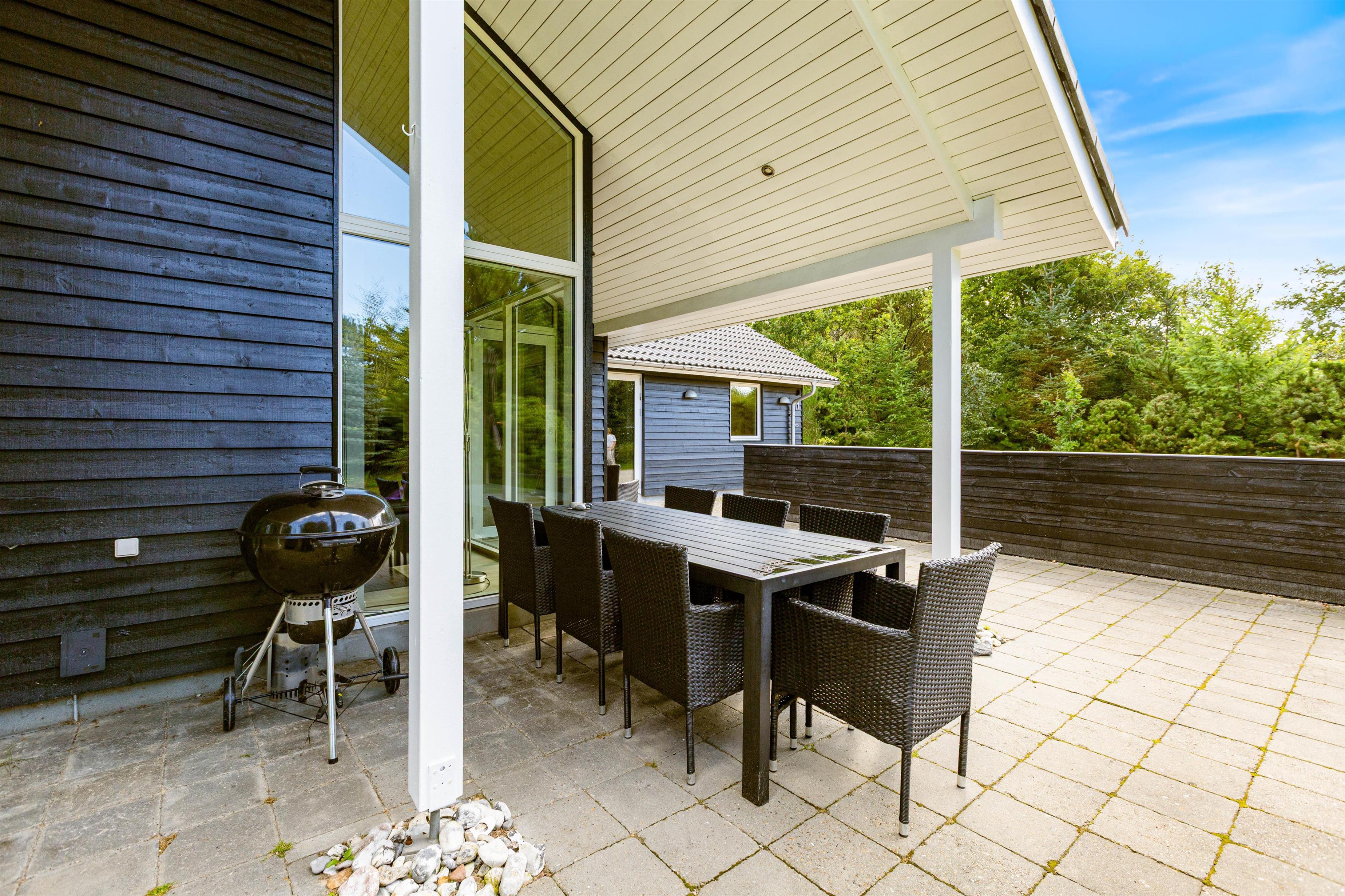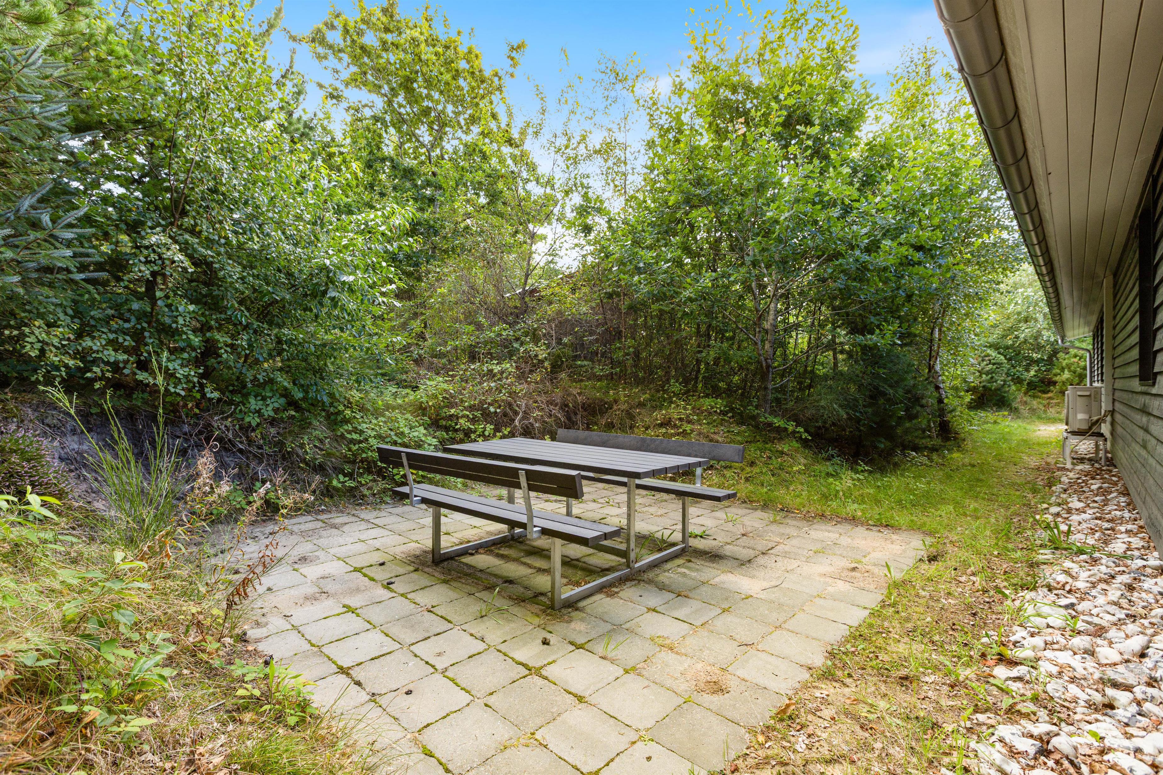 Huset ligger på en fredelig grund i fantastiske og frodige omgivelser med en lille legeplads med rutsjebane. Fra den delvis overdækkede terrasse har man godt udsyn, og mange timers hygge venter forude. Ikke mindst ligger huset blot 3 km fra Henne Strand, som er er en lille udsøgt perle langs den vestjyske kyst.