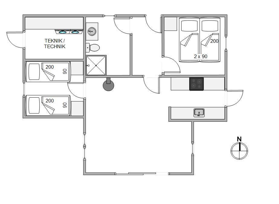 Dette hyggelige træhus i Henne by har plads til 4 personer. Det er indrettet med 2 soveværelser, det ene med dobbeltseng, det andet med 2 enkeltsenge. Det er således det perfekte hus til en lille familie eller 2 par. Med lyst træværk og pæne møbler er der her sørget for rigtig feriehusstemning, der er åbent køkken med opvaskemaskine og en god brændeovn i stue-alrummet.